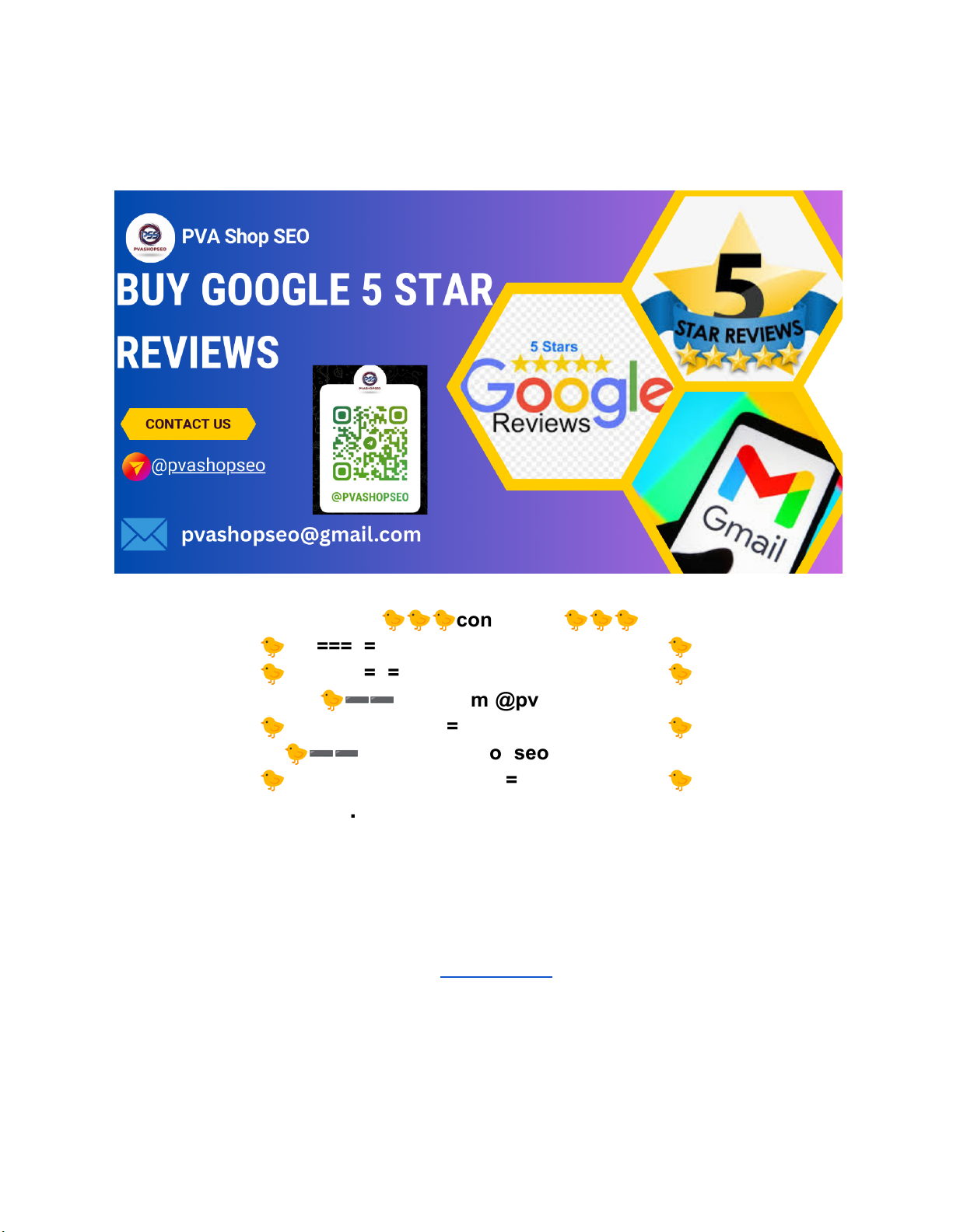 5 Best Sites to Buy, Google Reviews in 2027 (5 Star 🐤🐤🐤contact us 🐤🐤🐤 🐤►=============================✯🐤 🐤►=============================✯🐤 🐤➖➖ Telegram:@pvashopseo 🐤►=============================✯🐤 🐤➖➖ Email: pvashopseo@gmail.com 🐤►=============================✯🐤 https://pvashopseo.com/product/buy-google-5-star-reviews/ ➥➥➥➥➥➥➥➥➥➥➥➥➥➥➥➥➥➥➥➥➥ Are you struggling to get your business noticed online? Your Google reviews can make or break your reputation. Imagine having a steady stream of glowing 5-star reviews that build trust instantly. When potential customers see those stars, they’re more likely to choose you over competitors. But how do you get there fast and effectively? You’ll discover everything you need to know about buying Google 5-star reviews safely and smartly. Keep reading to find out how this simple step can boost your business and attract more customers right away. https://pvashopseo.com/product/buy-google-5-star-reviews/ Benefits Of 5 Star Reviews Five-star reviews hold great power in shaping a business’s reputation. They tell new customers that your products or services are reliable. Positive reviews help your business stand out. They create a strong image that attracts more buyers. The benefits of having many five-star reviews go beyond just good looks. Enhancing Business Credibility Five-star reviews build a solid reputation. They show that your business meets customer expectations. People trust businesses with high ratings more. It makes your business look professional and trustworthy. This credibility can help you compete with larger brands. Increasing Customer Trust Customers read reviews before making decisions. High ratings give them confidence in your services. They feel safer choosing your business over others. Trust grows when buyers see many positive experiences shared. This trust often leads to repeat business and referrals. Impact On Sales Growth Good reviews attract more customers quickly. Positive feedback encourages visitors to buy your products. It reduces hesitation and speeds up decision-making. Businesses with strong reviews usually see higher sales. This growth is vital for long-term success and stability. Why Choose Google Reviews Choosing Google Reviews can greatly benefit your business. These reviews help build trust quickly. They show real opinions from real customers. This trust can lead to more sales and better reputation. Google Reviews are visible to many people every day. They influence how buyers see your business. Positive reviews encourage customers to choose you over competitors. Google’s Influence On Buyer Decisions Many buyers check Google Reviews before buying. They want to see what others say about your service. Good reviews make buyers feel safe and confident. Negative reviews can push customers away fast. Google Reviews often appear first in search results. This visibility affects buyer choices directly. Seo Advantages Of Google Reviews https://pvashopseo.com/product/buy-google-5-star-reviews/ https://pvashopseo.com/product/buy-google-5-star-reviews/ https://pvashopseo.com/product/buy-google-5-star-reviews/ Google values fresh and honest reviews. They help improve your local search ranking. More positive reviews mean higher chances to appear on Google Maps. Reviews also add unique content to your listing. This content boosts your website’s SEO. Search engines trust businesses with many reviews more. Methods To Acquire 5 Star Reviews Getting 5 star reviews is important for any business. They build trust and attract more customers. There are different ways to get these reviews. Some methods focus on honest customer feedback. Others involve purchasing reviews. Each method has its own risks and benefits. Understanding how to gather reviews helps maintain a good reputation online. Using the right approach can improve your business’s image. Let’s explore two main methods to get 5 star reviews. Organic Review Collection Organic reviews come from real customers who share their true experience. You can encourage reviews by asking customers politely. Sending follow-up emails or messages after a purchase works well. Make it easy for them to leave feedback with direct links. Providing excellent service increases the chance of positive reviews. Respond to all reviews, both good and bad, to show you care. Avoid pressuring customers for perfect ratings. Genuine reviews create lasting trust and attract loyal clients. Buying Reviews: What To Know Buying reviews means paying for 5 star feedback. Some businesses use this to boost their online image quickly. This method can be risky and may violate platform rules. Fake reviews can harm your reputation if discovered. Think carefully before buying reviews. Check the source to avoid scams or poor-quality feedback. Buying reviews might seem easy but it is not a long-term solution. Authentic reviews always work better for steady growth. Risks Of Buying Reviews Buying Google 5 star reviews may seem like a quick way to boost your business. It can appear to increase trust and attract more customers fast. But there are serious risks involved with this practice. These risks can harm your reputation and business in the long run. Understanding these risks helps you make better choices. It also prepares you for possible consequences that come from buying fake reviews. https://pvashopseo.com/product/buy-google-5-star-reviews/ Potential Impact On Reputation Fake reviews can damage your business image. Customers may feel tricked or lose trust in your brand. Negative word-of-mouth spreads quickly online. Real customers value honest feedback. False reviews make your business look dishonest. Losing customer trust is hard to recover from. Competitors might report fake reviews. This can lead to public disputes and bad press. Your reputation might suffer more than you expect. Google’s Policies And Pe