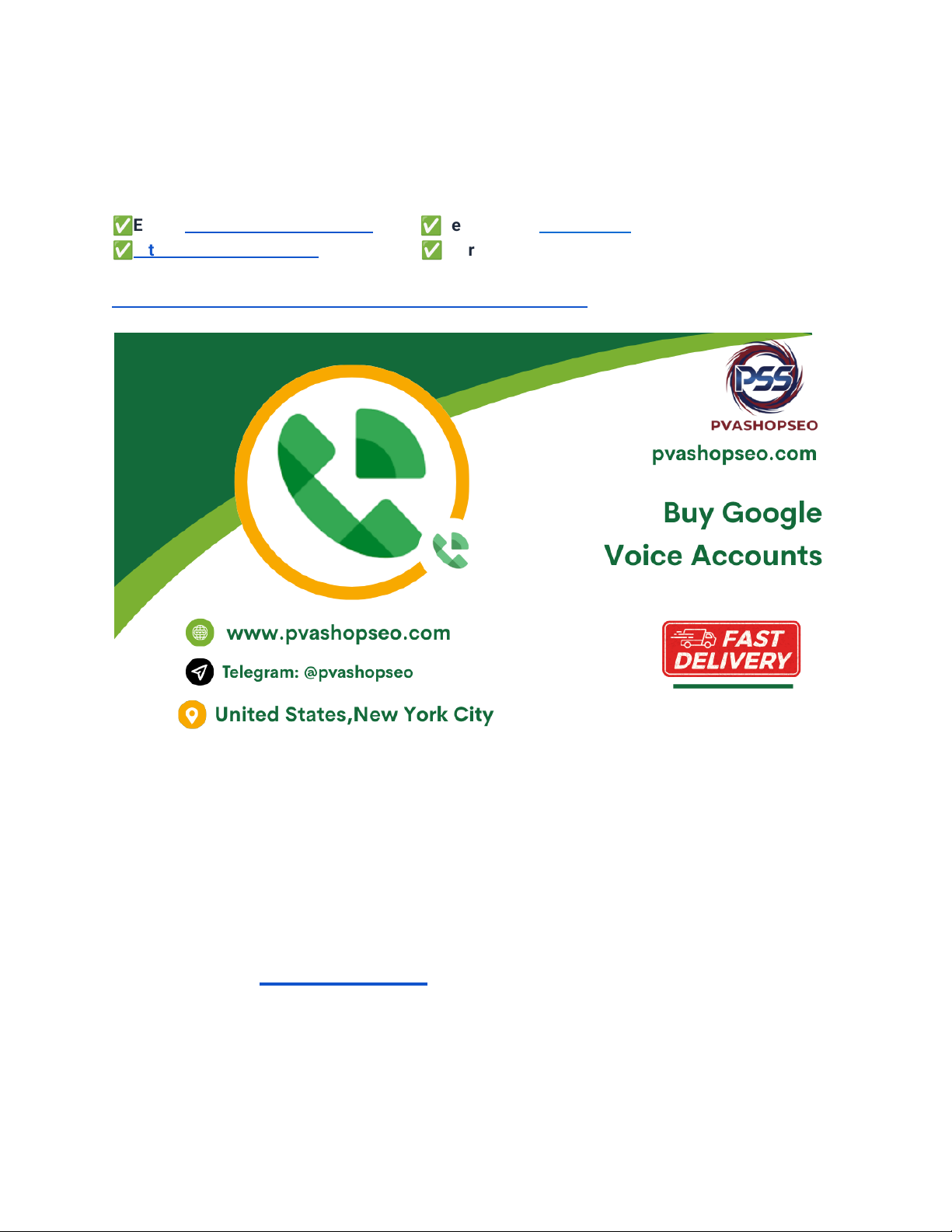 **Buy Google Voice Accounts – Cheap Google Voice for Sale....**** ✅Email: pvashopseo@gmail.com ✅Telegram: @pvashopseo ✅https://pvashopseo.com ✅we reply within 24 hours! https://pvashopseo.com/product/buy-google-voice-accounts/ Are you looking to simplify your communication and manage multiple phone lines easily? Buying Google Voice accounts could be the game-changer you need. Imagine having a single number that handles calls, texts, and voicemail—all in one place. Whether you want to separate work from personal life or enhance your business outreach, this solution puts control right at your fingertips. Keep reading to discover how buying Google Voice accounts can save you time, money, and stress. Benefits Of Google Voice Accounts Google Voice accounts offer many benefits for personal and business use. They help improve communication and save money. These accounts work well with other Google tools. Users enjoy easy setup and clear calls. mailto:pvashopseo@gmail.com https://t.me/pvashopseo https://pvashopseo.com https://pvashopseo.com/product/buy-google-voice-accounts/ https://pvashopseo.com/product/buy-google-voice-accounts/ Enhanced Communication Features Google Voice provides voicemail transcription and call forwarding. Users can send text messages from their number. It supports group calls and international calling. Call screening helps avoid unwanted calls. The app works on phones and computers. Cost-effective Calling Solutions Google Voice offers low-cost calls to many countries. Domestic calls within the U.S. and Canada are free. There are no hidden fees or contracts. Users can manage call costs easily. It suits people who want affordable phone services. Integration With Other Google Services Google Voice links smoothly with Gmail and Google Calendar. It syncs contacts and call history across devices. This integration helps keep information organized. Users can join meetings directly from the app. It fits well in the Google ecosystem. Security Measures For Google Voice Google Voice offers many features that make communication simple and effective. Security is a key part of the service. Protecting your account and data is important. Google Voice uses strong security methods. These help keep your information safe and private. Two-factor Authentication Two-Factor Authentication (2FA) adds an extra layer of security. It asks for two forms of identity before access. Usually, this means a password and a code sent to your phone. 2FA helps stop hackers from entering your account. Even if they know your password, they cannot log in without the second factor. Data Privacy Protocols Google Voice follows strict rules to protect your data. Your calls and messages are encrypted. This means no one can read them without permission. Google also limits who can see your personal information. These privacy protocols help keep your data safe from misuse. Safe Usage Practices Users play a key role in keeping accounts secure. Avoid sharing your Google Voice number with strangers. Use strong, unique passwords for your Google account. Regularly check account activity for any unusual signs. These simple steps reduce the risk of hacking and fraud. https://pvashopseo.com/product/buy-google-voice-accounts/ Affordable Pricing Options Affordable pricing options make buying Google Voice accounts a smart choice. You get good value without spending too much. Many sellers offer flexible prices to suit different budgets. This section explains the pricing landscape clearly. Comparing Market Prices Prices for Google Voice accounts vary widely in the market. Some sellers charge more for extra features or faster delivery. Others offer basic accounts at lower costs. Comparing prices helps find the best deal for your needs. Always check what each price includes before buying. Subscription Plans Subscription plans offer different levels of service and cost. Some plans charge monthly fees for ongoing access. Others require a one-time payment for permanent use. Choose a plan that matches your usage and budget. This way, you control costs and avoid surprises. Discounts And Deals Discounts and deals make buying Google Voice accounts cheaper. Sellers often run promotions during holidays or special events. Bulk purchases usually come with better prices. Watch for these offers to save money while getting quality accounts. Instant Account Activation Instant account activation makes buying Google Voice accounts simple and fast. You get access right after purchase. No long waits or delays. This quick start helps you use your account for calls and messages immediately. Fast activation saves time and reduces hassle. It suits people who need a number quickly. The process is smooth and user-friendly. You can follow clear steps to set up your account in minutes. ✅Email: pvashopseo@gmail.com ✅Telegram: @pvashopseo Step-by-step Setup Guide Start by logging into your Google Voice account. Choose your new phone number from available options. Link the number to your existing phone or device. Confirm your settings and preferences. Test your number by making a call or sending a text. Verification Process https://pvashopseo.com/product/buy-google-voice-accounts/ mailto:pvashopseo@gmail.com https://t.me/pvashopseo https://pvashopseo.com/product/buy-google-voice-accounts/ Google requires verification to protect your account. You must provide a valid phone number. Google sends a code via text or call. Enter the code to verify your identity. Verification helps keep your account secure and active. Troubleshooting Common Issues Activation may fail due to incorrect details. Check your phone number and code carefully. Clear your browser cache and try again. Use a different browser or device if needed. Contact support if problems continue after these steps. Choosing Reliable Sellers Choosing reliable sellers is crucial when buying Google Voice accounts. Trustworthy sellers ensure you get genuine accounts without issues. They protect your mo