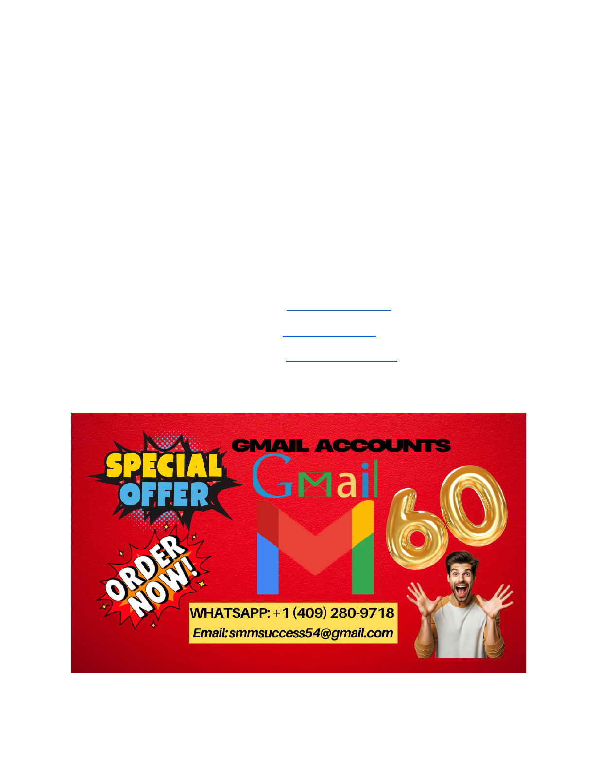Top 24 Platforms How to Manage Multiple Gmail Wallets without Breaking Rules Many people look for verified Gmail accounts. But what does it mean? And why do some want to buy them? This article will explain all you need to know about buying verified Gmail accounts. Contact us now for more information 24/7 at Any Time ➤ Email: smmsuccess54@Paypal.com ➤ Telegram: @smmsuccess54 ➤ Skype: smmsuccess54 ➤ WhatsApp: +1 (409) 280-9718 What Are Verified Gmail Accounts? http://t.me/smmsuccess54 https://join.skype.com/invite/qpg0hR88PsXD https://wa.me/qr/OP2AKHOWY672G1 A verified Gmail account is a Google email account that has passed some checks. Usually, verification means the user linked a phone number or completed other steps. This makes the account more trustworthy. Google asks users to verify accounts for safety. It helps stop fake users and spam. A verified account shows the owner is real. It also helps to recover the account if you forget the password. Why Do People Buy Verified Gmail Accounts? There are many reasons people want to buy verified Gmail accounts. Some of the main reasons include: ● Multiple Accounts: Some people need many Gmail accounts for work or business. ● Save Time: Creating many verified accounts takes time. Buying saves that time. ● Easy Access: Verified accounts are ready to use immediately. ● Business Use: Some companies use many Gmail accounts for marketing or customer service. ● Social Media: Many social sites ask for a verified Gmail to sign up or recover accounts. ● Contact us now for more information 24/7 at Any Time ➤ Email: smmsuccess54@Paypal.com ➤ Telegram: @smmsuccess54 ➤ Skype: smmsuccess54 ➤ WhatsApp: +1 (409) 280-9718 How to Buy Verified Gmail Accounts Safely Buying Gmail accounts can be risky. You must be careful. Here are some tips to buy safely: 1. Check the Seller: Buy only from trusted sellers with good reviews. 2. Ask for Proof: Request screenshots or proof the accounts are verified. 3. Test Before Buying: Ask if you can test accounts first. 4. Use Secure Payment: Pay with safe methods like PayPal or credit cards. 5. Know the Rules: Understand Google’s policies about buying accounts. What Are the Risks of Buying Gmail Accounts? Buying Gmail accounts is not always safe. There are risks you should know: ● Account Suspension: Google may suspend accounts bought from others. ● Scams: Some sellers sell fake or hacked accounts. http://t.me/smmsuccess54 https://join.skype.com/invite/qpg0hR88PsXD https://wa.me/qr/OP2AKHOWY672G1 ● Loss of Access: Sellers might take back accounts later. ● Security Issues: Accounts may have weak security or be unsafe. ● Legal Problems: Buying accounts may break Google’s rules. Think well before buying. Sometimes making your own account is safer. How to Create a Verified Gmail Account Yourself Making your own Gmail account is not hard. It takes some time but is safe. Here is how: 1. Go to Google Sign Up page. 2. Fill in your name and choose a username. 3. Set a strong password. 4. Enter your phone number for verification. 5. Google will send a code to your phone. Enter the code. 6. Complete other info like birthdate and recovery email. 7. Read and accept Google’s terms. After these steps, your account is verified and ready. Benefits of Using Verified Gmail Accounts Verified accounts have many benefits. Here are some important ones: Benefit Why It Matters Better Security Harder for hackers to break in. Account Recovery Easier to get back if you forget password. Trusted by Google Less chance of account suspension. Use on Other Sites Many websites accept verified Gmail for sign-up. https://accounts.google.com/signup More Features Access to full Google services without limits. Alternatives to Buying Verified Gmail Accounts If buying accounts seems risky, try these ideas: ● Create Your Own: Make accounts yourself for free. ● Use Google Workspace: Businesses can get verified accounts legally. ● Ask Friends or Family: They may share access safely. ● Use Other Email Services: Try Yahoo, Outlook, or others. Final Thoughts Buying verified Gmail accounts can be helpful. But it also brings risk. Always check the seller carefully. Know Google’s rules well. If possible, create your own verified Gmail account. It is safer and free. Remember, your online security is important. Use Gmail accounts with care. Verified accounts give you more trust and safety. Use them wisely for your work or fun. Frequently Asked Questions What Are Verified Gmail Accounts? Verified Gmail accounts are email addresses confirmed by Google for authenticity. Contact us now for more information 24/7 at Any Time ➤ Email: smmsuccess54@Paypal.com ➤ Telegram: @smmsuccess54 ➤ Skype: smmsuccess54 ➤ WhatsApp: +1 (409) 280-9718 Why Buy Verified Gmail Accounts? They save time and help start activities without account setup delays. Are Verified Gmail Accounts Safe To Use? http://t.me/smmsuccess54 https://join.skype.com/invite/qpg0hR88PsXD https://wa.me/qr/OP2AKHOWY672G1 Yes, verified accounts are safe if purchased from trusted sources. Can I Use Verified Gmail Accounts For Marketing? Yes, they help run email marketing campaigns efficiently and reliably. How To Check If A Gmail Account Is Verified? Look for account status in Google settings or ask the seller. Is Buying Verified Gmail Accounts Legal? Buying accounts is legal, but using them must follow Google’s policies. How Much Do Verified Gmail Accounts Cost? Prices vary based on account age, activity, and seller reputation. Can I Change The Password Of A Bought Gmail Account? Yes, changing the password after purchase is recommended for security. Do Verified Gmail Accounts Have Recovery Options? Most have recovery options like phone or alternate email set up. Where To Buy Verified Gmail Accounts Safely? Buy from reputable sellers with good reviews and clear policies. Top 24 Platforms How to Manage Multiple Gmail Wallets without Breaking Rules What Are Verified Gmail Ac