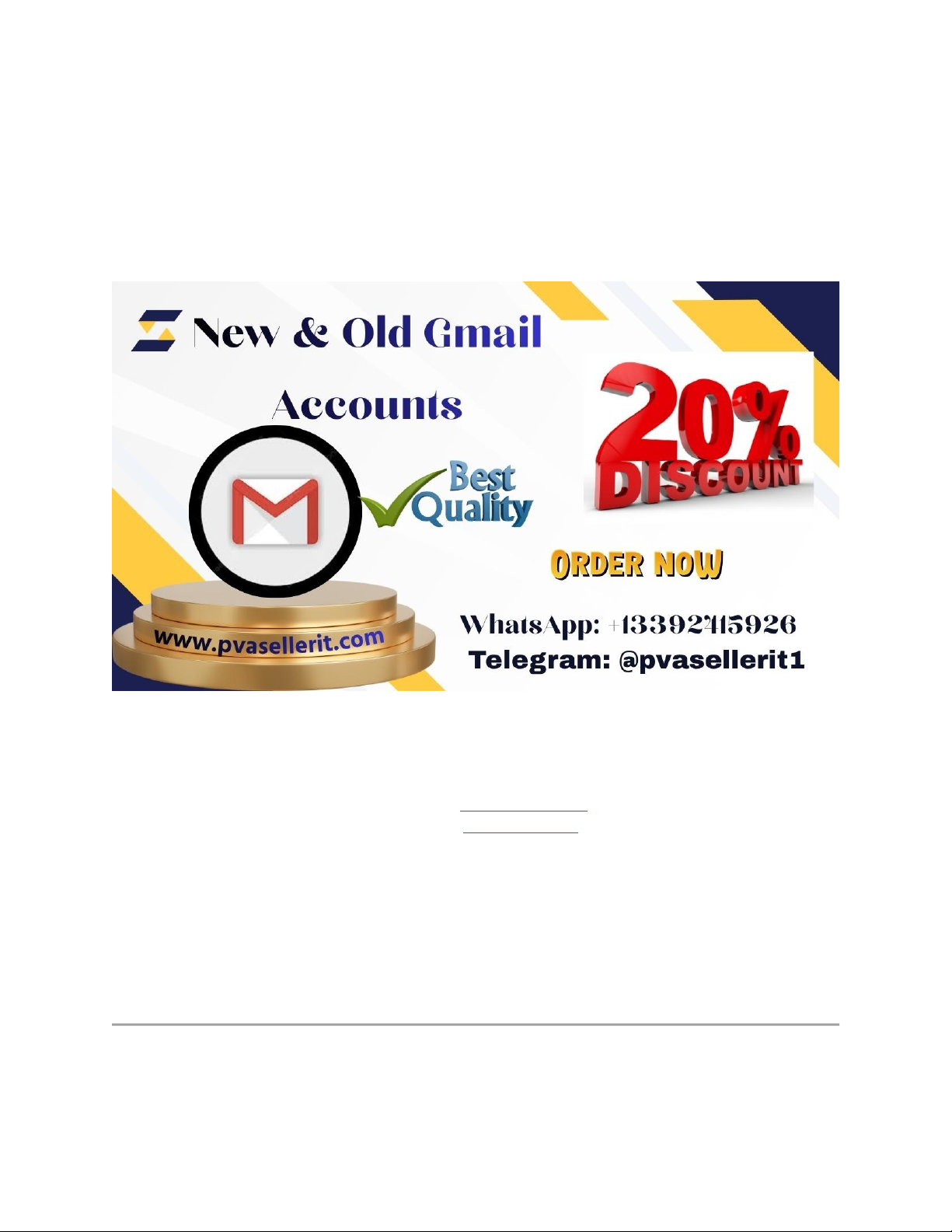 5 Reasons People Search for Old Gmail Accounts in 2025 — And Safer Alternatives If you want more information, contact now. 24 Hours Support Email: pvasellerit@gmail.com WhatsApp: +13392415926 Telegram: @pvasellerit1 Many marketers, automation users, and businesses search for “old Gmail accounts” in 2025 because older accounts tend to have higher trust and fewer security flags. However, the buying and selling of Gmail accounts is strictly prohibited by Google and can expose users to serious risks — from account loss to legal issues. Instead of lists of marketplaces (which I cannot provide), this guide covers why people seek old accounts, the dangers, and what you can do safely and legally. Why People Want Old Gmail Accounts in 2025 Here are the most common reasons: 1. Higher Trust for Automation & Marketing Older Google accounts sometimes pass verification checks more easily. 2. Better Deliverability for Email Marketing Aged accounts may initially have fewer spam flags. 3. Access to Older YouTube, Drive, or Workspace Features Older accounts may have legacy benefits. 4. Multi-account Management for Business Some businesses try to scale operations through multiple Google accounts. 5. Reduced Verification Requirements New accounts trigger more frequent identity or phone checks. Why Buying Gmail Accounts Is Dangerous Purchasing email accounts is unsafe and can expose you and your business. 1. Security & Privacy Risks · Sellers can recover the account anytime. · Malware or tracking scripts may be embedded. · Stolen accounts may place you in legal danger. 2. Immediate Suspension Google’s automated systems detect account ownership changes and unusual access patterns. Result: Instant suspension or permanent ban. 3. Legal Liability Using purchased accounts can violate: · Google Terms of Service · Anti-spam laws · Cybercrime laws in many countries 4. Poor Quality or Fake Accounts Most “aged” accounts online are: · Bot-created · Previously abused · Not truly aged · Already flagged 5. Potential Financial Loss Many sellers disappear after payment or deliver low-quality accounts. Safe & Legal Alternatives to Buying Old Gmail Accounts Instead of buying accounts, use one of the following legitimate strategies. 1. Create Multiple Accounts Through Google’s Allowed Methods Google allows: · personal accounts · business Workspace accounts · service accounts · delegated email addresses You can legally create multiple accounts if they are used responsibly. 2. Use Google Workspace for Business Needs Workspace allows: · multiple managed email accounts · full control & recovery options · proper scaling for teams · trusted reputation over time This is the safest business alternative to “aged accounts.” 3. Warm Up New Gmail Accounts Safely If your goal is deliverability: · send a few emails slowly · interact normally · enable 2FA · avoid automation spikes This builds trust over time without violating rules. 4. Use Email Marketing Tools Instead of Gmail Instead of using multiple Gmail accounts: · Mailchimp · Brevo (Sendinblue) · ConvertKit · HubSpot These services are built for email marketing and remove deliverability issues. 5. Build Digital Trust Organically Older accounts matter less than: · consistent use · verified identity · good sending patterns · no spam or automation abuse Even a new account can build credibility within weeks. If You Needed Aged Accounts for Marketing — Better Legal Options Here are legitimate solutions for what people usually want: Goal Legal Alternative Running multiple channels Use Google Brand Accounts Bulk email sending Use professional email providers App testing Create fresh test accounts YouTube management Use permissions & roles instead of new accounts SEO tasks Use proxies + multiple self-created accounts Final Advice Buying Gmail accounts—old or new—is not worth the risk in 2025. Google’s security systems are extremely advanced, and most purchased accounts get suspended quickly. Worse, you may unknowingly buy hacked or stolen accounts, which exposes you to legal danger. Instead, the safest route is to: · create your own accounts · use Workspace · build trust naturally · rely on proper email marketing tools Conclusion Buying old Gmail accounts can be a smart move for various purposes. From enhancing your marketing strategies to ensuring greater reliability in communications, aged accounts have their merits. However, it’s essential to approach this process with caution. Understanding the risks involved and ensuring that you’re purchasing from trusted sources is crucial. Always verify the reputation of sellers and check reviews before making any commitments. Additionally, consider exploring alternatives if buying seems too risky or complicated. There are many ways to achieve your goals without relying solely on purchased accounts. Whether you choose to invest in old Gmail accounts or not will depend on your specific needs and circumstances. Make informed decisions that align with your objectives while being mindful of security concerns. image1.jpg