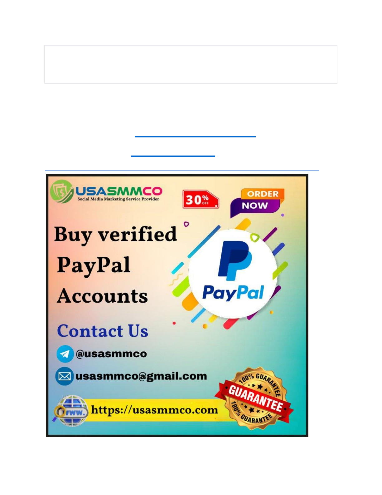 Buy Verified Paypal Accounts: Secure, Fast & Trusted Solutions ➥ For more information, contact us now 24/7 Response ➤ Email: usasmmco@gmail.com ➤ Whatsapp: +1 (409) 258-1810 ➤ Telegram: @usasmmco https://usasmmco.com/product/buy-verified-paypal-accounts/ https://wa.link/y466ti https://t.me/usasmmco https://usasmmco.com/product/buy-verified-paypal-accounts/ Are you looking for a quick and secure way to access verified PayPal accounts? Whether you want to boost your online business or make smooth transactions without delays, having a verified PayPal account can make a huge difference. Verified accounts offer more trust, higher limits, and better protection for your money. Imagine how much easier your online payments and transfers could be with an account that's ready to use right away. If this sounds like what you need, you’re in the right place. Discover how you can Buy Verified PayPal Accounts and take control of your financial transactions with confidence. Keep reading to find out why verified accounts matter and how you can get yours today. Introduction To Buying Verified Paypal Accounts Buying verified PayPal accounts is a growing trend in the digital payment world. These accounts come with confirmed identities, making transactions smoother and more trusted. Many users seek these accounts to save time on verification or to access advanced PayPal features quickly. Understanding the basics and the market dynamics of verified PayPal accounts helps buyers make informed decisions. This section explains what verified PayPal accounts are, why they matter, and the current market overview. ➥ For more information, contact us now 24/7 Response ➤ Email: usasmmco@gmail.com ➤ Whatsapp: +1 (409) 258-1810 ➤ Telegram: @usasmmco https://usasmmco.com/product/buy-verified-paypal-accounts/ Understanding Verified Paypal Accounts And Their Purpose Verified PayPal accounts have confirmed user information linked to a bank account or credit card. This verification boosts trust and removes many transaction limits. ● Verification confirms identity and financial info. ● It reduces fraud risk for buyers and sellers. ● Enables higher transaction limits and full access to PayPal features. Verified accounts are essential for those who need reliable and secure payment methods. Why Businesses And Individuals Seek Verified Paypal Accounts https://usasmmco.com/product/buy-verified-paypal-accounts/ https://usasmmco.com/product/buy-verified-paypal-accounts/ https://wa.link/y466ti https://t.me/usasmmco https://usasmmco.com/product/buy-verified-paypal-accounts/ Businesses and individuals want verified PayPal accounts for several reasons: 1. Faster setup: Skip the lengthy verification process. 2. Higher trust: Verified accounts build confidence with customers and partners. 3. Access to full features: Send, receive, and withdraw money without limits. 4. Secure transactions: Verified accounts lower the risk of being flagged or limited. This makes verified accounts valuable for online sellers, freelancers, and entrepreneurs. Overview Of The Market For Verified Paypal Accounts The market for buying verified PayPal accounts is active and varied. Sellers offer accounts with different verification levels and regions. Type of Account Verification Level Price Range Common Buyers Basic Verified Email & Phone Verified $10 - $30 Small businesses, freelancers Fully Verified Bank & Credit Card Linked $40 - $100 Medium to large businesses Regional Verified Country-specific verification $50 - $150 International sellers Buyers must choose sellers carefully to avoid risks like scams or account bans. Key Features Of Verified Paypal Accounts Verified PayPal accounts offer several important advantages. They provide extra security, faster setup, and higher trust for transactions. These features make verified accounts ideal for business and personal use. Understanding these key features helps users choose the right account for their needs. Security Measures Ensuring Safe Transactions Verified PayPal accounts include strong security to protect users and their money. PayPal uses encryption to keep data safe during transfers. Accounts undergo identity checks to prevent fraud and unauthorized access. https://usasmmco.com/product/buy-verified-paypal-accounts/ https://usasmmco.com/product/buy-verified-paypal-accounts/ ● Two-factor authentication adds an extra security layer. ● Regular monitoring detects suspicious activities quickly. ● Verified status confirms the user’s identity and reduces risk. These measures ensure transactions are secure and trustworthy. ➥ For more information, contact us now 24/7 Response ➤ Email: usasmmco@gmail.com ➤ Whatsapp: +1 (409) 258-1810 ➤ Telegram: @usasmmco https://usasmmco.com/product/buy-verified-paypal-accounts/ Speed And Efficiency In Account Activation Verified accounts activate faster than regular ones. The verification process confirms identity and links bank details quickly. This allows users to start sending and receiving money without delay. 1. Submit required documents for identity confirmation. 2. Automatic verification checks reduce waiting time. 3. Accounts become fully functional within a short time. The efficiency saves time and supports smooth payment experiences. Trustworthiness And Compliance With Paypal Policies Verified accounts meet PayPal’s strict rules and standards. This compliance builds trust among buyers and sellers. Verified users face fewer limitations and enjoy higher transaction limits. Feature Benefit Policy Compliance Reduces risk of account suspension Higher Transaction Limits Allows larger payments and transfers https://wa.link/y466ti https://t.me/usasmmco https://usasmmco.com/product/buy-verified-paypal-accounts/ Increased Buyer Confidence Boosts sales and trust in transactions Verified accounts maintain a reliable and professional payment environment. Benefits Of Using Verified Paypal Accounts Verified PayPal accounts offer several key advanta