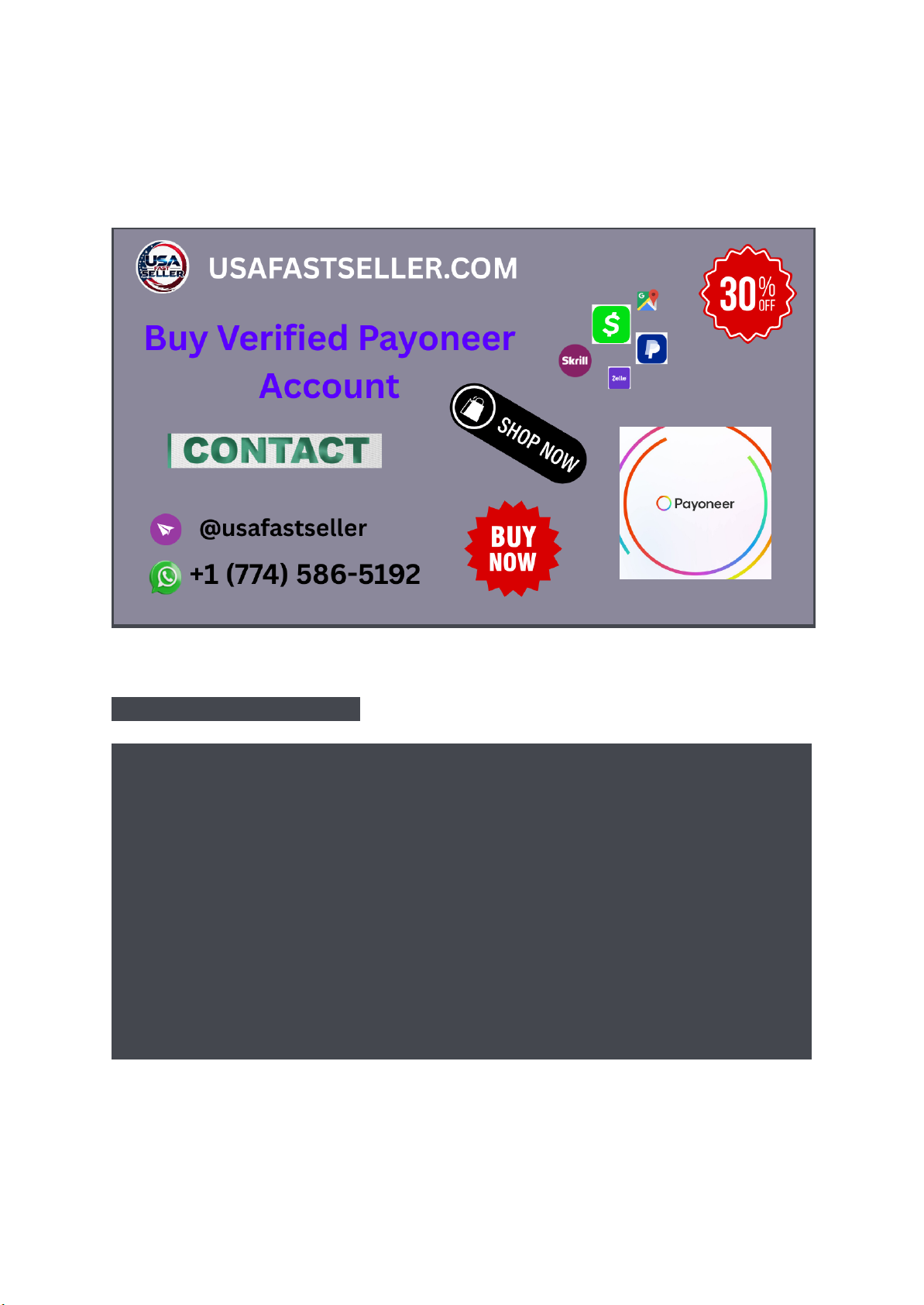 D Buying Verified Payoneer Accounts: Risks, Regulations, ➥ 24 Hours Reply/Contact ➤ Skype: usafastseller ➤ Telegram: @usafastseller ➤ Whatsapp: +1 (774) 586-5192 ➤ Gmail: usafastseller1@gmail.com https://usafastseller.com/product/buy-verified-paypal-account/ https://usafastseller.com/product/buy-verified-cash-app-accounts/ https://usafastseller.com/product/buy-old-github-accounts/ https://usafastseller.com/product/buy-google-voice-accounts Digital payment platforms have become essential tools in the global economy. They allow individuals and businesses to receive payments, pay suppliers, and manage funds across borders with greater speed and efficiency than traditional banking. Payoneer is one such platform, widely used by freelancers, online sellers, and international service providers. https://imgur.com/user/usafastseller https://usafastseller.com/product/buy-verified-paypal-account/ https://usafastseller.com/product/buy-verified-cash-app-accounts/ https://usafastseller.com/product/buy-verified-cash-app-accounts/ https://usafastseller.com/product/buy-old-github-accounts/ https://usafastseller.com/product/buy-old-github-accounts/ https://usafastseller.com/product/buy-google-voice-accounts https://usafastseller.com/product/buy-google-voice-accounts Because of its global reach and professional features, some people attempt to buy “verified” Payoneer accounts instead of completing the official registration and verification process. Although this may appear to be a shortcut, buying verified Payoneer accounts is unsafe, against platform rules, and potentially harmful. Understanding the reasons behind this practice and its consequences helps promote responsible and ethical use of financial technology. What Payoneer Is and How It Works Payoneer is a financial services company that provides cross-border payment solutions. It allows users to receive funds from international clients and marketplaces, hold balances in different currencies, and withdraw money to local bank accounts. Payoneer is commonly used by freelancers, remote workers, online sellers, and businesses that operate globally. Because Payoneer operates in the financial sector, it must follow strict international regulations. These include identity verification and monitoring to prevent fraud, money laundering, and other illegal activities. As a result, users are required to provide accurate personal or business information and complete verification before accessing full features. Why Verification Is Required on Payoneer Verification is a core part of Payoneer’s system. It confirms that an account belongs to a real person or legitimate business. This process often involves submitting identification documents and verifying contact and banking details. Verification protects users by reducing fraud and ensuring that funds are handled securely. Verified accounts may have higher transaction limits and access to additional services, but verification is not a privilege. It is a legal requirement designed to protect the financial system and the people who rely on it. Why Some People Try to Buy Verified Payoneer Accounts Despite the availability of official verification, some individuals look for verified Payoneer accounts sold by third parties. Common reasons include: 1. Avoiding documentation – Some users do not want to submit identity documents. 2. Speed – Buying an account may seem faster than waiting for approval. 3. Access to features – Verified accounts allow broader use of Payoneer services. 4. Bypassing restrictions – Some attempt to avoid regional or eligibility limits. While these reasons may seem convenient, they overlook the serious risks involved in using an account that does not legally belong to the user. Why Buying Verified Payoneer Accounts Is Against the Rules Payoneer accounts are personal and non-transferable. The platform’s terms clearly state that users must provide accurate information and may not sell, buy, or share accounts. Verification links an account to a specific identity. When that account is sold, this link is broken, making the account unreliable and unsafe. ➥ 24 Hours Reply/Contact ➤ Skype: usafastseller ➤ Telegram: @usafastseller ➤ Whatsapp: +1 (774) 586-5192 ➤ Gmail: usafastseller1@gmail.com https://usafastseller.com/product/buy-verified-paypal-account/ https://usafastseller.com/product/buy-verified-cash-app-accounts/ https://usafastseller.com/product/buy-old-github-accounts/ https://usafastseller.com/product/buy-google-voice-accounts Payoneer monitors activity for inconsistencies between account usage and verified information. If an account appears to be controlled by someone other than the verified owner, Payoneer can restrict or permanently close the account. This enforcement protects the platform, its partners, and its users. Security and Ownership Risks One of the biggest dangers of buying a verified Payoneer account is loss of ownership. The original creator of the account may still control the email address, phone number, or recovery information. At any time, they could regain access, leaving the buyer locked out. There is also the risk that the account has a problematic history. It may already be flagged for suspicious activity or under review. The buyer inherits these issues without knowing the full background, which can result in sudden account suspension. Additionally, buyers often share personal or financial information with anonymous sellers. This increases the risk of identity theft, data misuse, and financial scams. Financial Risks and Frozen Funds Payoneer has the authority to freeze funds if suspicious activity is detected. If a purchased account is flagged, balances may be locked during investigation. In some cases, funds become inaccessible for long periods or permanently. For individuals who rely on Payoneer for income, this can cause serious financial stress. Bills, tuition, or daily expenses may be affected when access to funds is suddenly cut off. 