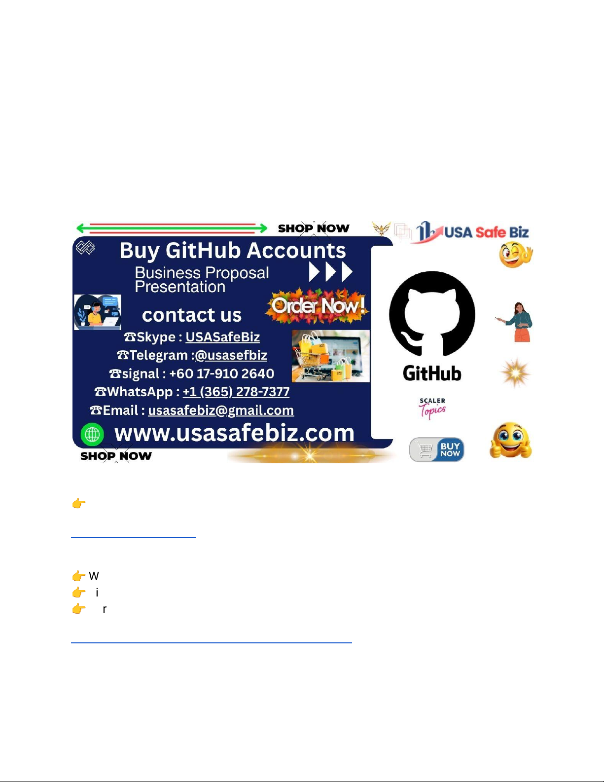 Buy GitHub Accounts - USA Safe Biz In today’s fast-paced tech world, developers, startups, and digital entrepreneurs rely on GitHub for collaboration, coding, and project management. Whether you’re launching a new software project, growing a development agency, or managing multiple client repos, owning trustworthy GitHub accounts is essential. That’s where USA Safe Biz comes in — your trusted platform to buy GitHub accounts safely, securely, and instantly. Contact Us Anytime: 👉 Telegram: https://t.me/Usasafebiz 👉 WhatsApp: +1 (365) 278-7377 👉 Signal: +60 17-910 2640 👉 Purchase Link: https://usasafebiz.com/service/buy-github-accounts/ Why Developers and Businesses Buy GitHub Accounts https://t.me/Usasafebiz https://t.me/Usasafebiz https://t.me/Usasafebiz https://usasafebiz.com/service/buy-github-accounts/ https://usasafebiz.com/service/buy-github-accounts/ GitHub is more than just a code hosting platform—it’s the center of modern software teamwork. From managing codebases to deploying services, GitHub streamlines how teams build, test, and release software. Here’s why people buy GitHub accounts: ● Professional Flexibility: Having multiple verified GitHub accounts lets teams separate projects, clients, and development environments. ● Privacy and Security: Buying pre-verified GitHub accounts from a reputable source like USA Safe Biz ensures your activity stays compliant and safe. ● Time-Saving Convenience: Setting up verified accounts can be tedious; our ready-made GitHub accounts eliminate that workload instantly. ● Scalability for Agencies: Development agencies often need multiple accounts for managing projects under different clients or brands. ● Access to Premium Tools: Some enterprise-level or older GitHub accounts provide access to unique integrations and privileges. What Makes USA Safe Biz the Best Place to Buy GitHub Accounts? At Usasafebiz, our commitment goes beyond providing accounts—we deliver trust, consistency, and value. Here’s what sets us apart: 1. 100% Verified GitHub Accounts Every GitHub account we offer is fully verified with authentic U.S.-based credentials, ensuring zero compromise in quality or legitimacy. 2. Instant Delivery We understand time is money. Once you place your order, your verified account details are delivered within minutes to your preferred contact channel. 3. Active and Secure Accounts All our accounts are tested for security, activity, and authenticity. No bots, fake logins, or risk-prone setups—just genuine GitHub profiles crafted for reliability. 4. 24/7 Customer Support Our expert support is available round-the-clock via Telegram, WhatsApp, and Signal. We’re always one message away if you have questions or issues. 5. Affordable Pricing Buying quality GitHub accounts shouldn’t break your budget. With Usasafebiz, you get competitive, transparent pricing—no hidden fees. Types of GitHub Accounts We Offer Whether you’re an individual coder or a large-scale software company, we have account options designed for every need. Account Type Features Best For Individual GitHub Accounts Verified email, personal repo access Freelancers & coders Team/Organization Accounts Multi-user access, repo collaboration Agencies & startups Aged GitHub Accounts Trusted, long-standing accounts with history Reputable project hosting Custom Orders Tailored GitHub profiles per project need Enterprises & DevOps teams You can explore more options directly on our official site at Usasafebiz GitHub Service Page . https://usasafebiz.com/service/buy-github-accounts/ https://usasafebiz.com/service/buy-github-accounts/ How to Buy GitHub Accounts from USA Safe Biz Purchasing verified GitHub accounts is simple and hassle-free. Follow these steps: 1. Visit Our Service Page – Go to 2. usasafebiz.com/service/buy-github-accounts 3. . 4. Choose Your Plan – Select the account type that fits your needs. 5. Contact Us – Message us via Telegram, WhatsApp, or Signal for quick order support. 6. Make Payment – Complete your secure payment through our trusted options. 7. Receive Credentials – Get your verified GitHub account details instantly. It’s that easy—no delays, no hassles, just verified GitHub profiles ready to use. Benefits of Buying GitHub Accounts from USA Safe Biz When you use USA Safe Biz, you get more than just an account—you get peace of mind, professional support, and consistent performance. ● 🛡 100% Legitimate Accounts – Verified and compliant profiles built for long-term use. ● ⚙ No Technical Complications – Accounts are plug-and-play ready. ● ☁ Cloud-Based Security – Your credentials are transferred safely with encryption. ● 💼 Supports Agencies & Teams – Ideal for scaling operations or client management. ● 💬 Reliable Customer Assistance – Expert help any time you need it. Our customers trust us because we combine quality, affordability, and honesty—hallmarks of the Usasafebiz brand. Who Should Consider Buying GitHub Accounts? If you fall into any of the following categories, buying verified GitHub accounts may transform how you work: ● Freelance Developers: Quickly create and manage multiple projects separately. ● Software Companies: Organize team access under different accounts or organizations. ● Digital Marketing Agencies: Host, test, and develop client tools securely. https://usasafebiz.com/service/buy-github-accounts/ https://usasafebiz.com/service/buy-github-accounts/ ● Tech Startups: Gain reputation and verified presence in open-source communities. ● Educational Institutions: Use separate profiles for training and collaboration. Safety and Verification: Why Account Quality Matters Online reputation and compliance are everything, especially when you’re managing open-source or commercial codebases. With USA Safe Biz, our accounts are created following strict quality assurance filters: ● U.S.-based trusted IP registration ● Verified email and identity checks ●