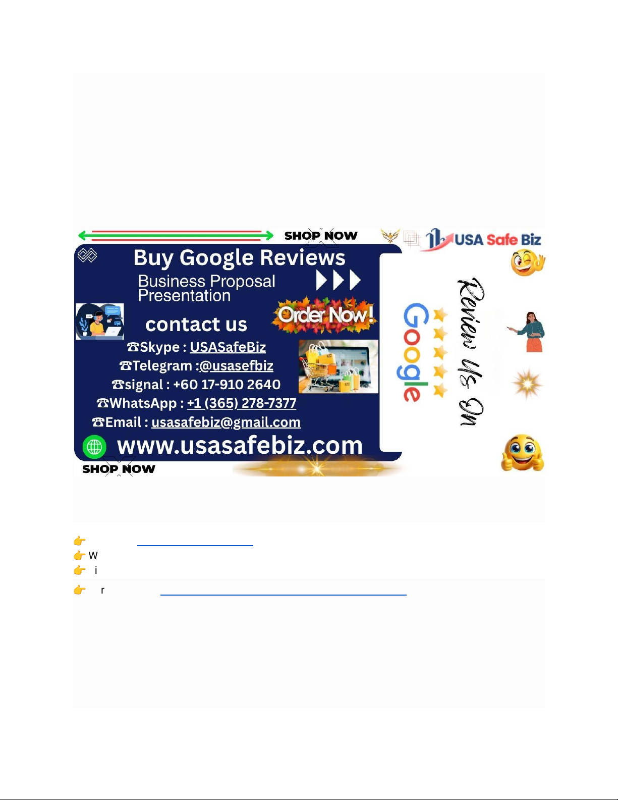 How to Earn Real 5-Star Google Reviews Safely & Ethically Google reviews are one of the most powerful tools for local businesses today. They influence everything from how high you rank in local searches to whether someone walks through your door or clicks “call.” When people search for ways to buy Google reviews, they’re usually looking for a fast way to boost their star rating and credibility. But the truth is, real, lasting success comes from earning genuine feedback—not purchasing it. At Usasafebiz, we’ve worked with countless business owners who initially considered shortcuts but found that ethical, customer-focused strategies deliver stronger, more sustainable results. Contact Details: 👉 Telegram: https://t.me/@Usasefbiz 👉 WhatsApp: +1 (365) 278-7377 👉 Signal: +60 17-910 2640 👉 Purchase Link: https://usasafebiz.com/service/buy-google-reviews/ In this guide, I’ll share practical, proven ways to encourage authentic 5-star Google reviews that stick, build trust, and improve your local presence—without risking your Google Business Profile or reputation. Why Authentic Google Reviews Matter for Your Business https://t.me/@Usasefbiz?referrer=grok.com https://usasafebiz.com/service/buy-google-reviews/?referrer=grok.com A strong Google review profile does more than just look good. It directly affects visibility, trust, and conversions. The Real Impact on Local Search & Customer Trust Google’s algorithm prioritizes businesses with higher ratings and more reviews in local pack results. But more importantly, customers trust reviews from real people. A profile with consistent, honest feedback—especially when paired with thoughtful responses—feels credible and approachable. Genuine vs. Manufactured Feedback – What Customers Notice People today are surprisingly good at spotting fake reviews. Generic language, identical wording, or sudden spikes in 5-star ratings without corresponding activity often raise red flags. Authentic reviews have personality, detail, and context—things that make them believable and valuable. The Risks and Downsides of Buying Google Reviews It’s understandable why some businesses consider buying reviews—quick visibility and higher ratings seem appealing. But the risks far outweigh any short-term gains. Google’s Policies on Fake & Incentivized Reviews Google explicitly prohibits paying for reviews, offering incentives tied to positive feedback, or using fake accounts. Their automated systems and human moderators actively detect and remove non-genuine reviews. Consequences That Can Harm Your Business If detected, you could face: ● Removal of fake reviews ● Suspension of your Google Business Profile ● Reduced visibility in local search ● Permanent damage to customer trust if inconsistencies are noticed The safest and most effective path is always authentic feedback. Ethical & Proven Ways to Generate Authentic Reviews The foundation is simple: create experiences that people want to talk about, then make it easy for them to share. Deliver Experiences Worth Reviewing Nothing beats exceptional service. Focus on: ● Fast, friendly customer support ● Clear communication ● Going the extra mile (e.g., handwritten thank-you notes, small surprises) ● Fixing issues quickly and fairly Happy customers are far more likely to leave positive reviews voluntarily. Ask for Feedback the Right Way Don’t just wait for reviews—gently invite them. The key is neutrality: ask for honest feedback, not “5-star reviews.” Use Google’s Official Tools to Make It Easy Google provides a short, direct review link for every business profile. You can also generate QR codes. Share these via email, SMS, receipts, or signage—make it one-click simple for customers to leave feedback. Best Practices for Encouraging Honest Feedback Small details make a big difference in response rates and review quality. Timing Your Review Requests The best time is shortly after a positive experience—when satisfaction is fresh. Examples: ● Right after a purchase (online or in-store) ● After a service appointment ● Post-delivery for e-commerce Avoid asking during stressful moments or before the experience is complete. Personalizing Requests Without Pressure Instead of a generic “Please leave us a review,” try: “We loved helping you with [specific product/service]. If you have a moment, we’d appreciate your honest feedback on Google.” Personal touches increase response rates significantly. Responding to Reviews (Positive & Negative) Always reply—thank positive reviewers and address negative ones professionally. Public responses show you care and encourage more people to share. Advanced Strategies to Build a Strong Review Profile Once you have the basics down, these tactics help scale your efforts. Integrating Review Collection into Your Workflow ● Add review links to email signatures ● Include them in automated post-purchase emails ● Train staff to mention the review link during positive interactions ● Add QR codes to receipts, business cards, and packaging Leveraging Multiple Touchpoints Use every customer interaction as an opportunity: ● Website pop-ups (after checkout) ● Thank-you pages ● Social media follow-ups ● In-store signage Consistency is key—make asking for reviews a natural part of your process. Conclusion Earning real 5-star Google reviews takes time and effort, but it builds a reputation that’s trustworthy, resilient, and effective for long-term growth. Shortcuts like buying reviews may offer quick wins, but they carry serious risks that can harm your business far more than they help. Focus on delivering value, making feedback easy, and engaging with every review. The results—authentic, lasting trust—are worth it. If you’re looking to strengthen other aspects of your online presence, explore our trusted services like buy verified PayPal accounts or buy verified Skrill accounts. Stay ethical, stay authentic—you