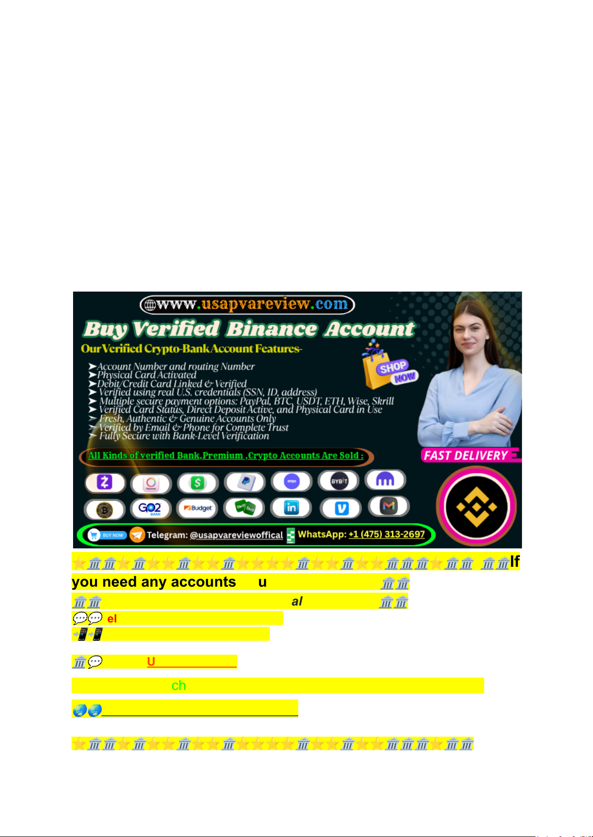 The platform supports both Buying/Using Verified Binance Account Safely Safety is paramount when dealing with financial platforms. Buying a verified Binance account should only be done through trustworthy sources. USAPVAREVIEW.COM ensures secure and authentic transactions. Every account is verified following Binance’s KYC (Know Your Customer) procedures, meaning you get a ready-to-use, fully compliant account without the hassle of the verification process yourself. When buying a verified Binance account, ensure: ● You choose a trusted provider like USAPVAREVIEW.COM ● Accounts are KYC verified ● Full login details and verification documents are provided ● You follow best practices for changing credentials upon purchase ⭐🏛🏛⭐🏛⭐⭐🏛⭐⭐🏛⭐⭐⭐⭐🏛⭐⭐🏛⭐⭐🏛🏛🏛⭐🏛🏛 🏛🏛If you need any accounts you can contact us.🏛🏛 🏛🏛To Get Fully Help 24/7 Hours, Talk to us Now 🏛🏛 💬💬Telegram: @usapvareviewoffical 📲📲 WhatsApp: +1 (475) 313-2697 🏛💬 Skype: UsaPVA Review Visit Website or choose favourite accounts and see accounts price: 🌏🌏 WWW.Usapvareview.Com ⭐🏛🏛⭐🏛⭐⭐🏛⭐⭐🏛⭐⭐⭐⭐🏛⭐⭐🏛⭐⭐🏛🏛🏛⭐🏛🏛 https://join.skype.com/invite/xuop2BfDEo9j https://usapvareview.com/product/buy-verified-cash-app-account/ http://www.usapvareview.com Why is Binance Verification Important? Binance verification is more than just a regulatory requirement. It: ● Unlocks higher withdrawal limits ● Adds a layer of security and trust ● Enables access to all Binance services ● Complies with global financial regulations Unverified accounts are severely limited in functionality and may even be suspended under certain conditions. Verification ensures that you are protected and compliant. How to Buy Verified Binance Accounts? Here’s a simple step-by-step guide to buying verified Binance accounts from USAPVAREVIEW.COM: 1. Visit USAPVAREVIEW.COM 2. Browse the list of available verified Binance accounts 3. Choose the account that fits your needs (region, usage, limits) 4. Contact their support team for guidance 5. Make a secure payment 6. Receive your login credentials and KYC documents 7. Update your password and enable 2FA for added security Why Choose Binance for Your Crypto Journey Binance is the world's leading cryptocurrency exchange due to its reliability, scalability, and expansive feature set. Reasons to choose Binance include: ● Low transaction fees ● Wide variety of cryptocurrencies ● High liquidity ● Advanced trading tools and charts ● Secure wallet and user interface Binance also supports a thriving ecosystem including NFTs, DeFi, Launchpad, and Binance Labs for developers and investors. Benefits of Buying Verified Binance Account from USAPVAREVIEW.COM Choosing USAPVAREVIEW.COM to buy your verified Binance account comes with many advantages: ● Instant delivery of verified accounts ● 100% compliance with Binance verification requirements ● Full support with documentation and setup ● Affordable pricing ● Safe and secure transactions ● 24/7 customer service Their reputation in the marketplace ensures peace of mind with every purchase. What is the Limit of Verified Binance Account? Verified Binance accounts have the following advantages over unverified ones: ● Up to 100 BTC daily withdrawal limit (depending on level of verification) ● Access to Fiat transactions ● P2P trading enabled ● Full access to derivatives, margin trading, and futures ● Participation in Binance Launchpad projects These enhanced features are critical for serious traders and investors. Why Choose Us to Buy a Binance Account? USAPVAREVIEW.COM is the best choice for the following reasons: ● Years of experience in the account provisioning industry ● Strict compliance with KYC standards ● Genuine and ready-to-use Binance account ● Competitive pricing ● Discreet and secure delivery Thousands of satisfied customers testify to their trustworthiness and efficiency. ⭐🏛🏛⭐🏛⭐⭐🏛⭐⭐🏛⭐⭐⭐⭐🏛⭐⭐🏛⭐⭐🏛🏛🏛⭐🏛🏛 🏛🏛If you need any accounts you can contact us.🏛🏛 🏛🏛To Get Fully Help 24/7 Hours, Talk to us Now 🏛🏛 💬💬Telegram: @usapvareviewoffical 📲📲 WhatsApp: +1 (475) 313-2697 https://usapvareview.com/product/buy-verified-binance-account/ 🏛💬 Skype: UsaPVA Review Visit Website or choose favourite accounts and see accounts price: 🌏🌏 WWW.Usapvareview.Com ⭐🏛🏛⭐🏛⭐⭐🏛⭐⭐🏛⭐⭐⭐⭐🏛⭐⭐🏛⭐⭐🏛🏛🏛⭐🏛🏛 Benefits Of Using Verified Binance Account Using a verified Binance account brings numerous benefits: ● Seamless fiat-to-crypto transactions ● Higher withdrawal and transaction limits ● Access to all Binance features ● Ability to participate in promotions and new listings ● Enhanced account security A verified account ensures you stay ahead in the competitive crypto environment. Why Are We the Best Verified Binance Account Seller? USAPVAREVIEW.COM stands out because: ● They offer verified accounts with full documentation ● Every account is manually checked and guaranteed secure ● Rapid delivery and responsive customer support ● Full confidentiality assured ● Long-standing reputation for excellence in the industry These factors make them the top source for verified Binance accounts. Introduction To USAPVAREVIEW.COM And Their Services USAPVAREVIEW.COM is a reliable digital solutions platform specializing in verified accounts and virtual services. Their goal is to provide users with ready-to-use, trusted accounts that simplify access to major platforms, including crypto exchanges like Binance. The platform offers: ● Verified Crypto Accounts (Binance, Coinbase, Kraken, etc.) ● Verified Financial Accounts (PayPal, Neteller, Wise) ● Virtual Phone Numbers and Address Solutions ● Documentation support services https://j