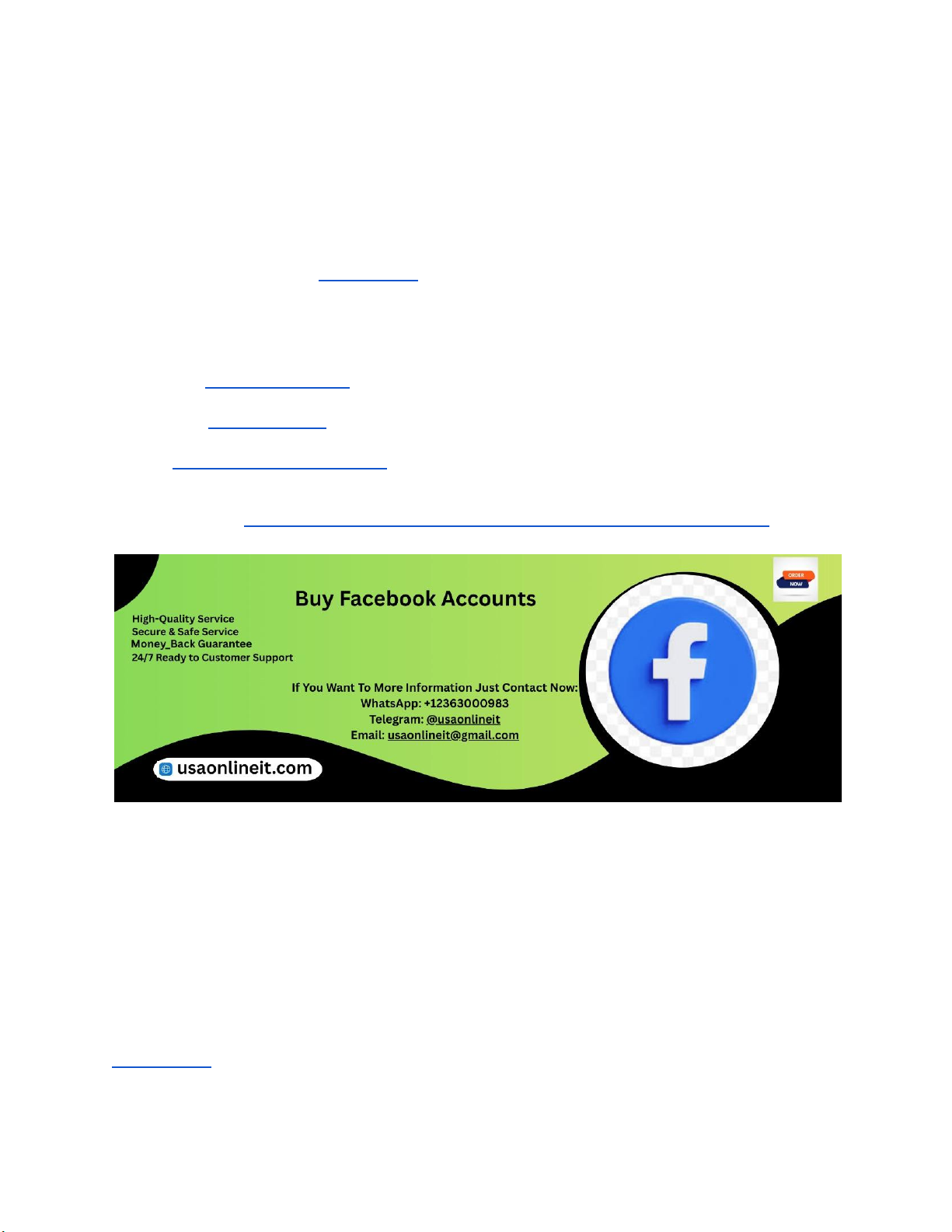 Comprehensive Guide by USAOnlineIT In today’s highly connected digital world, businesses and marketers often need to manage multiple Facebook accounts, whether for different brands, regions, or client campaigns. Managing multiple Facebook profiles and Pages efficiently—and doing so safely and within platform policies—is critical to protecting your brand, avoiding penalties or bans, and ensuring consistent engagement. At USAOnlineIT, we want to equip you with the right tools and insights to operate safely, securely, and effectively across multiple accounts. If You Want To More Information Just Contact Now: WhatsApp:+12363000983 Telegram: @usaonlineit Email: usaonlineit@gmail.com Websites Link :https://usaonlineit.com/product/buy-facebook-accounts/ Understanding the Importance of Safe Facebook Account Management Running multiple Facebook accounts without a strategy can quickly lead to security risks, account blocks, or policy violations. Facebook actively monitors for suspicious login patterns, bot-like activity, or accounts linked through shared device fingerprints. Using unverified third-party solutions or “blackhat” account sellers can lead to account removals or even legal issues. Safe management means choosing trusted tools and platforms that help organize content, schedule posts, provide analytics, and support team collaboration while complying with Meta’s standards. These platforms often add layers of security such as role-based access, multi-factor authentication, and activity logs so your accounts stay compliant and protected. At USAOnlineIT, we always recommend tools that prioritize account safety, transparency, and long-term viability over shortcuts that could jeopardize your digital assets or reputation. https://usaonlineit.com/product/buy-facebook-accounts/ https://usaonlineit.com/product/buy-facebook-accounts/ https://usaonlineit.com/product/buy-facebook-accounts/ https://usaonlineit.com/product/buy-facebook-accounts/ https://usaonlineit.com/product/buy-facebook-accounts/ 1. Hootsuite: Enterprise-Level Management with Security Hootsuite is one of the most recognized and established social media management platforms that supports Facebook, Instagram, LinkedIn, Twitter, Pinterest, YouTube, and more from a single dashboard. With more than 16 million users worldwide, it has built a reputation for reliability, scalability, and comprehensive features. For businesses handling multiple Facebook accounts, Hootsuite allows you to control different profiles, Page posts, comments, and inbox messages in one centralized workspace. It also offers advanced scheduling, team workflows, and analytics so agencies or internal marketing teams can collaborate securely without sharing raw login credentials. Role-based permissions ensure that team members have the appropriate level of access—ideal for agencies managing multiple clients. Security features such as two-factor authentication and regular compliance checks help reduce profile-linked risks. While primarily a management dashboard rather than a marketplace for accounts, Hootsuite is trusted by enterprises and brands that want to stay organized and compliant when managing multiple Facebook Pages. 2. Buffer: Streamlined Scheduling and Engagement Buffer is a lightweight yet powerful social media management platform used by brands and marketers to schedule posts, track engagement, and manage content. It supports multiple Facebook Pages and profiles, allowing teams to plan content calendars and track performance in one place. One distinct advantage of Buffer is its user-friendly interface that reduces complexity for beginners. Teams can queue posts, preview content, and schedule across time zones without repeatedly logging into Facebook. Unlike bulky systems, Buffer remains straightforward and accessible for teams that don’t need an enterprise setup. Although Buffer doesn’t directly handle Facebook Ads, it shines for organic posting and community engagement scheduling. Buffer also offers team workflows and approval systems that keep unauthorized posting in check—a key security feature when multiple people are publishing to multiple accounts. It’s suitable for small to medium businesses, branding agencies, or social media teams focused primarily on organic content. 3. Sprout Social: Analytics-Driven Multi-Account Platform Sprout Social is a premium social media management solution designed for enterprises, large teams, and agencies that want deep analytics and collaboration features. It allows you to connect and oversee multiple Facebook pages, profiles, and customer interactions from one dashboard. Security and compliance are embedded in Sprout Social’s design. It supports granular user roles, team assignment workflows, and integrated performance reporting. Social listening tools track conversations and trends across accounts, helping strategic decision-makers respond to audience sentiment instantly. Sprout Social also excels in its reporting capabilities—offering insights on post engagement, audience growth, and cross-platform performance. This makes it ideal for teams that want more than posting tools—those who want data-driven insights to shape their Facebook strategy. Although Sprout Social tends to be premium priced, its added security, collaboration tools, and sophisticated analytics make it a trusted platform for enterprise-level Facebook account management. 4. SocialPilot: Agency-Focused Bulk Management SocialPilot is a versatile management platform that supports bulk scheduling, multiple account linking, and team collaboration. It’s particularly popular with marketing agencies and consultants who need to handle many Facebook pages or client profiles simultaneously. One key strength of SocialPilot is its bulk upload and scheduling capability—and its ability to handle up to 50 social accounts in some plans. Team members can work together securely, with appropriate content approval workflows and scheduling con