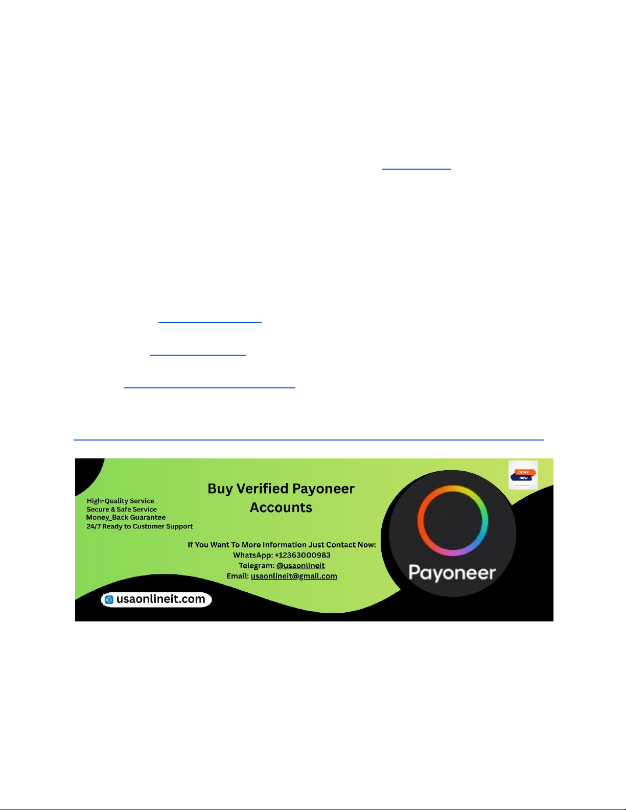 Introduction to US Verified Payoneer Accounts In today’s digital economy, having a US verified Payoneer account is a crucial asset for freelancers, entrepreneurs, and businesses operating internationally. These accounts enable seamless transactions, local currency payments, and access to US-based banking services without the need for a physical presence in the United States. USAOnlineIT specializes in providing verified Payoneer accounts that come with SSN and bank verification, ensuring legitimacy and trustworthiness. With verified accounts, users can enjoy higher transaction limits, reduced account restrictions, and enhanced credibility with clients and financial institutions. As the demand for reliable payment solutions increases in 2026, acquiring a verified US Payoneer account becomes an essential step for global professionals seeking to expand their financial reach with confidence. If You Want To More Information Just Contact Now: WhatsApp: +12363000983 Telegram: @usaonlineit Email: usaonlineit@gmail.com website link : https://usaonlineit.com/product/buy-verified-payoneer-accounts/ The Importance of US Verification for Payoneer Accounts Verification is the backbone of trustworthy financial accounts. A US verified Payoneer account signifies that the account holder has undergone comprehensive identity checks, including SSN (Social Security Number) verification and bank account validation. This process ensures compliance with US financial regulations, reducing the risk of account suspension or fraud. For https://usaonlineit.com/product/buy-verified-payoneer-accounts/ https://wa.me/message/74UDWDX2TFOWF1 https://t.me/usaonlineit https://usaonlineit.com/product/buy-facebook-ads-accounts/usaonlineit@gmail.com https://usaonlineit.com/product/buy-verified-payoneer-accounts/ users, having a verified account translates into increased trust from clients and partners, especially in freelance marketplaces and international trade. US verification also provides higher withdrawal and payment limits, making it ideal for businesses handling large transactions. Moreover, it allows access to US-based financial services, such as US bank transfers, which are often faster and more cost-effective. USAOnlineIT offers verified Payoneer accounts with SSN and bank verification to streamline your financial operations, ensuring you meet all necessary compliance standards in 2026. Benefits of Purchasing Verified Payoneer Accounts from USAOnlineIT Opting to buy verified Payoneer accounts from USAOnlineIT offers numerous advantages. Firstly, our accounts come fully verified with SSN and bank account validation, eliminating lengthy verification processes for new users. This saves time and accelerates your ability to start transactions immediately. Secondly, our verified accounts are designed to provide higher transaction limits, facilitating larger payments and withdrawals, which is vital for business growth. Thirdly, these accounts enhance your credibility and trustworthiness in the eyes of clients and partners, opening doors to more lucrative opportunities. Additionally, USAOnlineIT guarantees the authenticity and legitimacy of each account, ensuring compliance with all US financial regulations. Our customer support team is available to assist with account setup and troubleshooting. Buying from us means you receive a reliable, secure, and ready-to-use US verified Payoneer account in 2026. How to Verify a Payoneer Account with SSN and Bank Details Verification of a Payoneer account with SSN and bank details involves several steps. Initially, the user must provide personal identification information, including SSN, to confirm identity validity. Next, bank verification requires linking a US-based bank account, which involves micro-deposits or instant verification methods. Once linked, Payoneer verifies the account by confirming ownership through small deposits or real-time APIs. This process not only authenticates the user but also ensures that the account can handle US dollar transactions seamlessly. For those purchasing verified accounts from USAOnlineIT, the verification process is already completed, saving time and effort. It’s crucial to ensure the accuracy of the SSN and bank details to avoid issues with transaction limits or account restrictions. Proper verification guarantees a smoother experience and opens access to full Payoneer functionalities in 2026. Legal Considerations When Buying US Verified Payoneer Accounts When purchasing verified Payoneer accounts, understanding the legal landscape is essential. US financial regulations strictly govern account verification and identity authentication processes. Engaging in the unauthorized purchase or sale of verified accounts can lead to legal repercussions, including account suspension or legal penalties. USAOnlineIT emphasizes compliance with all applicable laws and ensures that accounts provided are obtained through legitimate means. It’s important for buyers to recognize that using verified accounts responsibly and within legal boundaries safeguards their financial reputation. Moreover, transparency and adherence to Payoneer’s terms of service are critical factors. Users should refrain from misrepresenting their identity or engaging in illegal activities with verified accounts. By choosing reputable providers like USAOnlineIT, clients can ensure their transactions are secure, legal, and compliant with US financial standards in 2026. How USAOnlineIT Ensures the Legitimacy of Verified Accounts USAOnlineIT prides itself on providing legitimate, fully verified Payoneer accounts with SSN and bank validation. Our verification process involves sourcing accounts through legal channels, adhering to US financial regulations, and maintaining strict quality control standards. We collaborate with trusted financial institutions and verified account holders to ensure authenticity. Each account undergoes rigorous checks before delivery, including SSN validation and 