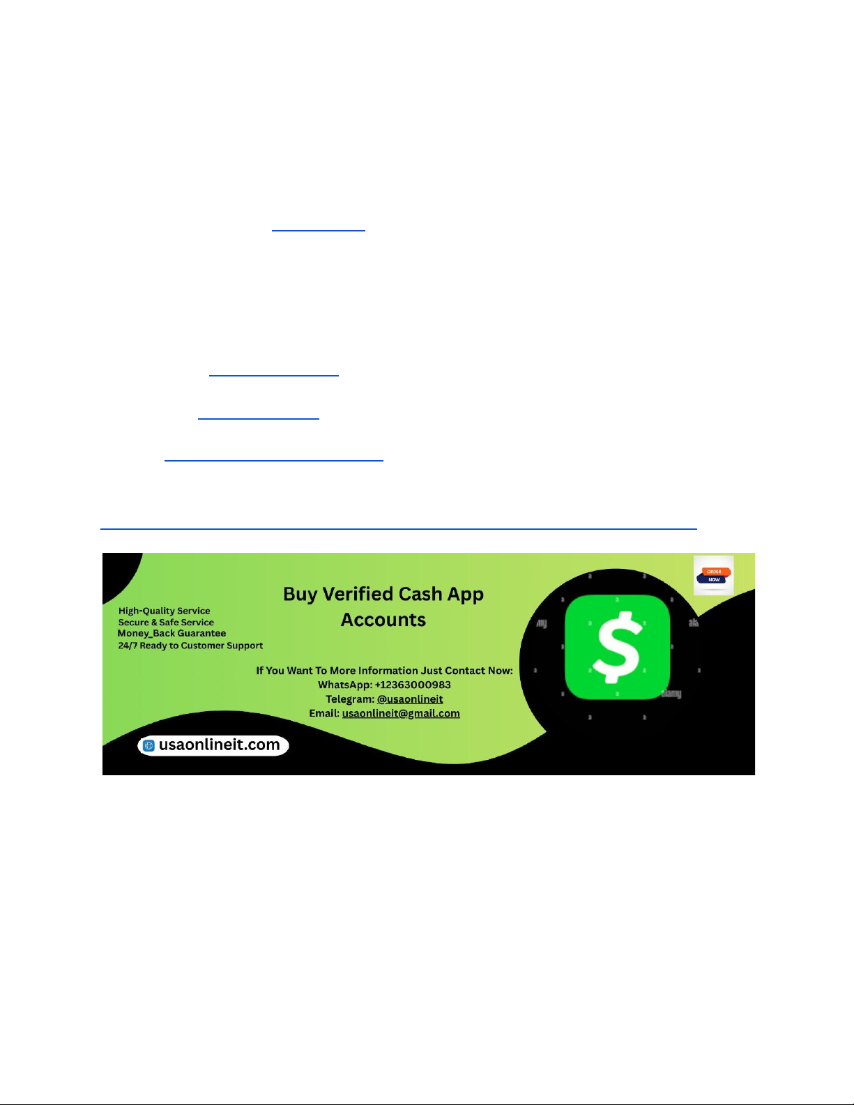 In today’s digital economy, mobile payment apps like Cash App have revolutionized the way we handle financial transactions. For businesses and individuals seeking to establish credibility or expedite financial activities, purchasing verified Cash App accounts with full transaction history can be a strategic move. USAOnlineIT specializes in providing reliable, fully verified Cash App accounts tailored for various needs. This guide will walk you through the process, benefits, risks, and best practices when purchasing old verified Cash App accounts with complete transaction histories. If You Want To More Information Just Contact Now: WhatsApp: +12363000983 Telegram: @usaonlineit Email: usaonlineit@gmail.com website link : https://usaonlineit.com/product/buy-verified-cash-app-accounts/ Understanding the Importance of Verified Cash App Accounts Verified Cash App accounts are crucial for users aiming to build trust and credibility in digital transactions. These accounts are typically linked to genuine personal or business information, which reduces the likelihood of account restrictions or suspensions. For businesses, having access to verified accounts ensures smoother transactions and enhances customer confidence. Moreover, accounts with full transaction histories serve as proof of legitimacy and can be advantageous when establishing new financial relationships or expanding operational scope. USAOnlineIT provides verified accounts with full histories, ensuring clients receive accounts that https://usaonlineit.com/product/buy-verified-cash-app-accounts/ https://wa.me/message/74UDWDX2TFOWF1 https://t.me/usaonlineit https://usaonlineit.com/product/buy-facebook-ads-accounts/usaonlineit@gmail.com https://usaonlineit.com/product/buy-verified-cash-app-accounts/ https://usaonlineit.com/product/buy-verified-cash-app-accounts/ are ready for immediate use, saving time and effort compared to creating new accounts from scratch. Why Purchase Old Verified Cash App Accounts? Purchasing old verified Cash App accounts can offer several advantages over creating new ones. First, these accounts often come with a long-standing transaction history, which enhances trustworthiness. Second, older accounts are less likely to trigger security flags or restrictions during high-volume transactions. Third, verified accounts typically have associated bank details, linking them to real financial institutions, adding to their legitimacy. For entrepreneurs and traders, this can mean faster onboarding and fewer hurdles when moving funds. USAOnlineIT specializes in sourcing and delivering high-quality, aged verified accounts that are fully functional, saving clients the hassle of account creation and verification processes. How USAOnlineIT Ensures Authenticity and Security At USAOnlineIT, authenticity and security are our top priorities. We employ rigorous verification processes to ensure that each account we provide is genuine and fully compliant with Cash App’s policies. Our accounts are sourced from legitimate channels, and we perform extensive background checks to confirm their transaction history and verification status. We also implement secure delivery methods to protect client information and prevent unauthorized access. Our team adheres to strict confidentiality protocols, guaranteeing that your purchased account remains private and secure throughout the transaction process. By choosing USAOnlineIT, clients can have peace of mind knowing they’re acquiring verified, secure Cash App accounts. How to Identify a Reliable Seller of Verified Cash App Accounts Finding a trustworthy seller is essential to avoid scams and ensure the quality of the account. Reliable sellers often have positive reviews, transparent sourcing methods, and clear terms of service. Look for companies like USAOnlineIT that provide verified proof of account authenticity, transaction history, and verification status. Avoid sellers with vague descriptions, no reviews, or those requesting additional personal information without proper verification. It is also advisable to inquire about the account’s age, transaction history, and whether it’s linked to a real bank account. Conduct due diligence by researching seller reputation and verifying credentials before making a purchase. The Process of Buying an Old Verified Cash App Account Purchasing an old verified Cash App account involves several steps. First, you select a reputable provider like USAOnlineIT and browse their available accounts. Next, you choose the account that fits your requirements in terms of age, transaction history, and verification status. Then, proceed with the secure payment process, typically involving cryptocurrency, bank transfer, or other trusted methods. After payment confirmation, the seller provides you with login details, along with any necessary instructions for account access and security. Finally, it’s recommended to perform a quick verification to ensure the account is active and fully functional before integrating it into your business or personal operations. Legal Considerations When Purchasing Cash App Accounts It’s vital to understand the legal implications involved in buying verified Cash App accounts. While some jurisdictions may have specific regulations regarding the transfer of digital assets, most platforms, including Cash App, prohibit account sharing or selling. Engaging in such transactions can lead to account suspension or legal action. USAOnlineIT emphasizes transparency and advises clients to use purchased accounts responsibly and within legal boundaries. Always review Cash App’s terms of service before proceeding with a purchase, and consult legal professionals if necessary. Our company ensures all accounts are sourced ethically to minimize legal risks for our clients. Risks Associated with Buying Old Verified Cash App Accounts Buying verified accounts carries certain risks, such as potential scams, account suspension, or loss of funds. Some se