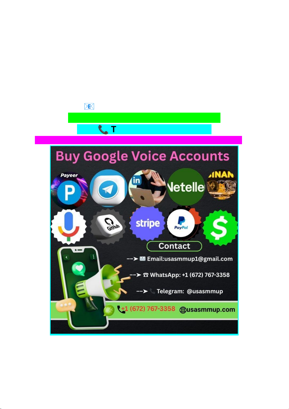 Buy Google Voice Accounts – 100% U.S. Verified Buy USA Google Voice Accounts at Prices Less If you need other information just contact us: we are online 24/7 hours ––➤ 📧 Email:usasmmup1@gmail.com ––➤ ☎ WhatsApp: +1 (672) 767-3358 ––➤ 📞 Telegram: @usasmmup https://usasmmup.com/product/buy-google-voice-accounts/ In today’s fast-paced digital world, communication is key. Whether for business or personal use, having a reliable phone number can make all the difference. Enter Google Voice: a service that allows you to manage your calls and messages effortlessly. But what if you could take it a step further? Imagine having access to verified Google Voice accounts tailored specifically for U. S. users! With these specialized accounts, you can unlock seamless connectivity no matter where life takes you. If you've been searching for ways to buy Google Voice accounts, you're in the right place. Here’s everything you need to know about purchasing authenticated accounts that suit your needs without breaking the bank. Get ready to elevate your communication game with ease and confidence! Buy Verified Google Voice Accounts for U.S. Use When it comes to communication in the U. S., having a verified Google Voice account is essential. These accounts offer a layer of authenticity that ensures your calls and messages are secure. Buying verified accounts means you’re choosing reliability over risk. With these accounts, you'll avoid common pitfalls associated with unverified options, such as spam or security issues. Each number is tied to real identities, giving you peace of mind. Moreover, using a U. S.-based Google Voice account allows for seamless interaction across various platforms. Whether you're texting friends or conducting business meetings, clarity and professionalism shine through. ✅KYC-Verified Google Voice Account ✅Google Voice account login access information. ✅USA number and ID card verified ✅100% ready account for smooth transactions. ✅100% verified USA, UK, CA and other countries ✅100% verified with all real documents. ✅Driving license or passport or visa card used. ✅Access the email account that is linked to the account. ✅Verified Phone: Verify phone from any country. ✅100% money back guarantee ✅All documents are provided with the Accounts ✅Google Voice Login Access ✅All Docs Verified ✅Low-Cost, High-Value Offer ✅Both Types Old & New Accounts ✅100% Replacement Fully Guranteed Finding trusted sources for purchasing these accounts can save time and effort. It’s all about making sure your communications remain smooth and hassle-free while enjoying the unique features that Google Voice offers. Buy Google Voice Accounts with U.S. Numbers When you choose to buy Google Voice accounts with U. S. numbers, you're unlocking a variety of communication possibilities. These accounts provide all the essential features, from call forwarding to voicemail transcription. Having a U. S. number can be invaluable for businesses aiming to establish local presence or individuals wanting privacy while making calls. Your personal information remains secure, allowing for seamless interactions without exposing your private number. If you need other information just contact us: we are online 24/7 hours ––➤ 📧 Email:usasmmup1@gmail.com ––➤ ☎ WhatsApp: +1 (672) 767-3358 ––➤ 📞 Telegram: @usasmmup Additionally, these accounts typically come pre-verified and ready for immediate use. This means no waiting around or complex setup processes—just smooth sailing from day one. With reliable customer support available, any questions that arise can be quickly addressed. Enjoy peace of mind knowing your communications are handled effectively and securely with a trusted service provider. Buy Aged Google Voice Accounts – USA Ready Aged Google Voice accounts are a valuable asset for anyone looking to enhance their communication capabilities. These accounts come with established histories, making them more trustworthy and reliable. When you buy aged Google Voice accounts, you're not just getting a number; you're gaining access to an account that has already built credibility over time. This can be particularly beneficial for businesses needing seamless interactions without the hassle of starting from scratch. If you need other information just contact us: we are online 24/7 hours ––➤ 📧 Email:usasmmup1@gmail.com ––➤ ☎ WhatsApp: +1 (672) 767-3358 ––➤ 📞 Telegram: @usasmmup ✅KYC-Verified Google Voice Account ✅Google Voice account login access information. ✅USA number and ID card verified ✅100% ready account for smooth transactions. ✅100% verified USA, UK, CA and other countries ✅100% verified with all real documents. ✅Driving license or passport or visa card used. ✅Access the email account that is linked to the account. ✅Verified Phone: Verify phone from any country. ✅100% money back guarantee ✅All documents are provided with the accoun ✅Google Voice Login Access ✅All Docs Verified ✅Low-Cost, High-Value Offer ✅Both Types Old & New Accounts ✅100% Replacement Fully Guranteed These USA-ready numbers give you the local presence essential for connecting with customers. Whether it’s for marketing campaigns or customer support, having an aged account can improve your outreach efforts significantly. Choosing aged accounts also mitigates potential risks associated with newer ones. With proven reliability, these options provide peace of mind while ensuring efficient communication channels in both personal and professional settings. Buy Secure Google Voice Accounts Online When looking to buy Google Voice accounts, security is paramount. You want peace of mind knowing your information is protected. Buying secure Google Voice accounts online means you’re getting verified and trustworthy options. These accounts are less likely to be flagged or banned, ensuring a smooth experience. A legitimate provi