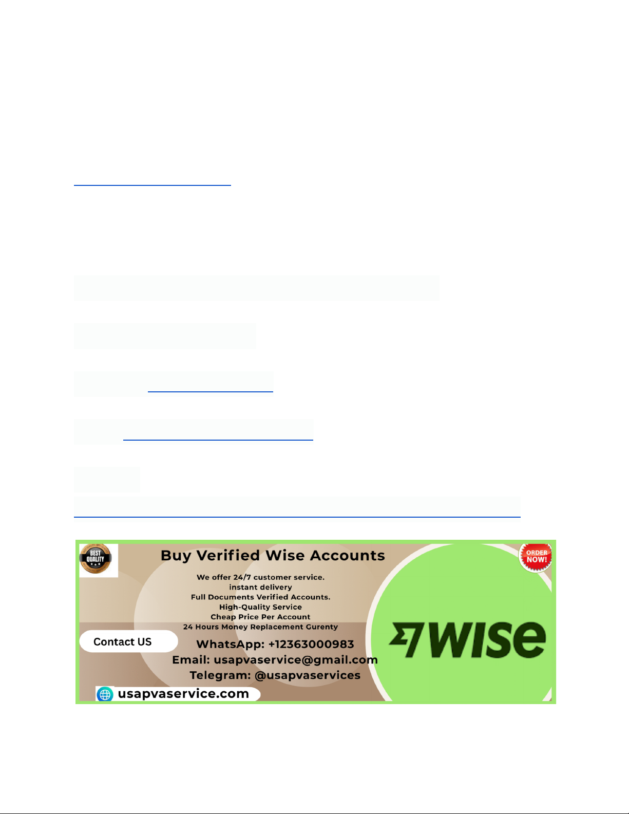 Unlimited Guide to Buy Wise Accounts Without Hassle Wise accounts have become one of the most powerful financial tools for anyone doing business online. Whether you are a freelancer, affiliate marketer, dropshipper, SaaS owner, or agency, Wise allows you to send and receive money globally with low fees, fast transfers, and full transparency. Unlike traditional banks, Wise supports multiple currencies, local bank details, and international clients in one single account. That is why Wise is now the preferred payment solution for people who work with overseas customers and platforms. If You Want more Information, Just Contact us now: WhatsApp: +12363000983 Telegram: @usapvaservices Email: usapvaservice@gmail.com visite Us: https://usapvaservice.com/product/buy-verified-wise-accounts/ https://usapvaservice.com/product/buy-verified-wise-accounts/ http://@usapvaservices https://usapvaservice.com/product/buy-verified-wise-accounts/ https://usapvaservice.com/product/buy-verified-wise-accounts/ However, creating and verifying a Wise account is not always simple. Wise applies strict security and verification rules, especially for phone numbers, IP addresses, and identity checks. Many users get blocked, limited, or delayed during the signup process. This is why buying ready‑made Wise accounts from trusted providers like usapvaservice has become the fastest and safest way to get started. With a verified Wise account, you can connect to freelance platforms, receive payments from Stripe or Payoneer, accept international transfers, and manage your business smoothly. This guide will explain everything you need to know to buy Wise accounts without hassle and use them safely for long‑term success. What Makes a Wise Account Valuable and Reliable A Wise account is valuable because it gives you access to international banking without needing multiple bank accounts in different countries. You can hold USD, GBP, EUR, and many other currencies, get local bank details, and move money worldwide. For businesses, this means faster payments, lower fees, and more professional operations. But not all Wise accounts are equal. A truly reliable Wise account must be properly verified. That includes email verification, phone verification (PVA), and sometimes identity verification. When an account is verified, Wise trusts it more, allowing higher limits, smoother transactions, and fewer reviews. This is why buying accounts from usapvaservice is different from random sellers. Their Wise accounts are fully verified, phone‑verified, and ready to use. These accounts have a higher success rate when connecting to payment gateways, receiving funds, and making transfers. A valuable Wise account saves time, reduces risk, and gives you confidence in every transaction. Whether you use it for personal use or business operations, having a strong and verified Wise account is the foundation of online financial success. Why People Prefer Buying Wise Accounts Instead of Creating Them Creating a Wise account yourself may sound simple, but in reality, it is full of challenges. Wise tracks IP addresses, device fingerprints, phone numbers, and behavior patterns. If anything looks unusual, your account can be delayed, restricted, or even blocked before it becomes usable. Many users struggle with phone verification, especially when trying to create multiple accounts. Virtual numbers and reused phone numbers often fail. Identity verification can also be difficult for people who want fast access. https://usapvaservice.com/product/buy-verified-wise-accounts/ This is why so many users now prefer to buy ready‑made Wise accounts from trusted sellers like usapvaservice. These accounts are already verified, tested, and ready to use. You don’t have to deal with complicated signup forms, verification errors, or wasted time. Buying a Wise account gives you instant access to global banking. It allows you to focus on making money instead of dealing with technical issues. For businesses, marketers, and freelancers, this shortcut is not only convenient but also very cost‑effective. What Is a PVA Wise Account and Why It Matters PVA means Phone Verified Account. This is one of the most important factors in Wise account quality. A phone‑verified Wise account is linked to a real phone number that can receive SMS codes and security alerts. Wise uses phone numbers to protect accounts and detect fraud. Accounts without proper phone verification are much more likely to get restricted or locked. That is why professional sellers like usapvaservice only provide PVA Wise accounts. These accounts can receive login codes, confirm transactions, and recover access if needed. Phone verification also increases trust. Wise treats PVA accounts as more legitimate users, which results in fewer security checks and smoother operations. This is extremely important if you plan to send or receive large amounts of money. A PVA Wise account is not just more secure, it is also more powerful. It gives you full control, better stability, and long‑term usability for both personal and business needs. How Aged Wise Accounts Improve Trust and Stability Aged Wise accounts are accounts that have existed for a longer time and often have some transaction history. These accounts are much more stable than brand‑new ones. Wise’s system trusts aged accounts more because they have proven they are not used for fraud or abuse. When you buy aged Wise accounts from usapvaservice, you get accounts that are already recognized as safe by Wise. This means fewer reviews, higher transaction limits, and smoother transfers. For businesses, aged accounts are extremely valuable. Clients and platforms trust them more, and payments go through more easily. For personal users, aged accounts reduce the risk of sudden holds or verification requests. In the world of online finance, trust is everything. An aged Wise account gives you that trust instantly, without waiting months to build it yourself. Why Cou