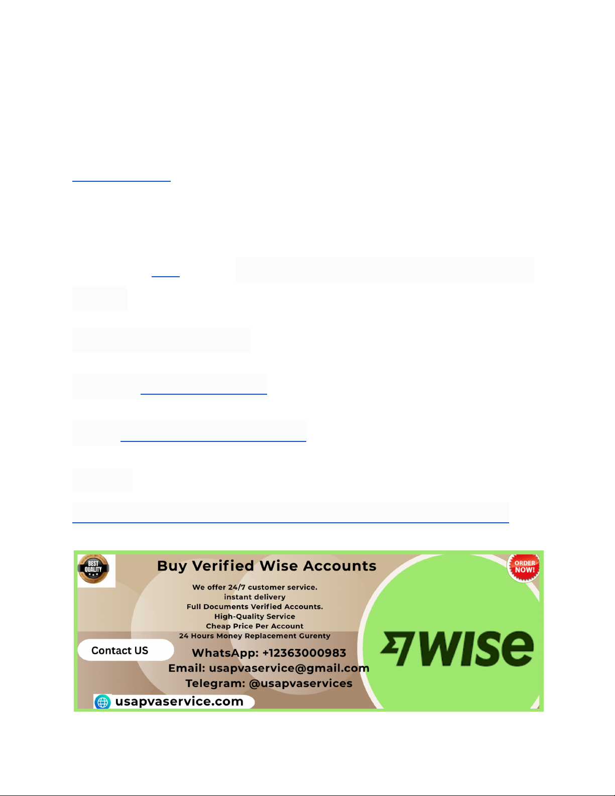 Where to Buy Old Wise Accounts Easily & Safely Old Wise accounts refer to Wise (formerly TransferWise) accounts that have been created and maintained for a longer period of time with consistent activity history. These accounts usually have higher trust scores, better stability, and fewer limitations compared to newly created accounts. Many businesses, freelancers, and international traders prefer old Wise accounts because they reduce the risk of sudden verification issues or transaction holds. An aged Wise account often comes with a verified profile, established transaction records, and increased credibility in the Wise ecosystem.If You Want more Information, Just Contact us now: WhatsApp: +12363000983 Telegram: @usapvaservices Email: usapvaservice@gmail.com Visit us : https://usapvaservice.com/product/buy-verified-wise-accounts/ https://usapvaservice.com/product/buy-verified-wise-accounts/ https://usapvaservice.com/product/buy-verified-wise-accounts/ http:// @usapvaservices https://usapvaservice.com/product/buy-verified-wise-accounts/ https://usapvaservice.com/product/buy-verified-wise-accounts/ From an SEO and business perspective, old Wise accounts are highly searched because they help users save time and avoid repeated verification processes. Instead of starting from scratch, buyers gain immediate access to a functional account suitable for global payments. Trusted providers like usapvaservice focus on offering properly aged Wise accounts that are ready for secure use. Understanding the difference between a fresh and an old Wise account is the first step toward making a safe purchase decision and avoiding unreliable sellers. Why Businesses Prefer Old Wise Accounts Over New Ones Businesses operating internationally need smooth, uninterrupted payment systems. Old Wise accounts offer reliability that new accounts cannot immediately provide. Because they have an established usage history, these accounts are less likely to face sudden freezes, compliance checks, or transfer limits. This makes them ideal for e-commerce stores, SaaS companies, digital marketers, and freelancers who rely on fast cross-border payments. Another major advantage is trust. Payment partners and platforms often view older accounts as more legitimate. This trust factor reduces friction when receiving or sending large volumes of money. Many professionals choose providers like usapvaservice because they understand business needs and deliver accounts that align with compliance standards. Choosing an old Wise account is not about shortcuts—it’s about operational efficiency, reduced risk, and long-term scalability for growing businesses. Common Risks When Buying Old Wise Accounts Online Buying old Wise accounts online can be risky if done without proper research. Many unverified sellers offer low-quality or recycled accounts that may already be flagged or restricted. These accounts often fail after a few days, resulting in financial loss and wasted time. Another common risk is incomplete documentation, which can cause issues during future verification checks. Security is another concern. If the seller retains access or provides reused credentials, your funds may be at risk. This is why choosing a trusted provider like usapvaservice is essential. They focus on clean, properly maintained accounts with full ownership transfer. Understanding these risks helps buyers avoid scams and select a provider that prioritizes safety, transparency, and long-term usability. Key Features of a Safe and Reliable Old Wise Account A safe old Wise account should have a verified profile, clean transaction history, and no prior policy violations. It should support multi-currency balances, international transfers, and seamless integration with business platforms. Reliable accounts also come with secure login credentials and recovery options fully transferred to the buyer. Providers such as usapvaservice ensure that every account meets these criteria before delivery. Another important feature is stability—an old Wise account should function normally without triggering additional verification immediately after purchase. Buyers should also look for clear usage guidelines, ensuring the account remains compliant with Wise policies. These features separate high-quality accounts from unreliable ones. How to Identify Trusted Sellers of Old Wise Accounts Identifying a trusted seller is crucial when purchasing old Wise accounts. Look for providers with transparent service descriptions, clear communication, and responsive customer support. Reviews, testimonials, and long-term online presence are strong indicators of reliability. Avoid sellers who make unrealistic promises or refuse to explain their process. usapvaservice stands out by offering clear account details, secure delivery methods, and post-purchase support. Trusted sellers focus on long-term customer relationships rather than one-time sales. They also educate buyers on safe usage practices, which helps maintain account longevity. Choosing the right seller minimizes risk and maximizes value. Why Account Age Matters for Wise Account Stability Account age plays a significant role in Wise account stability. Older accounts are perceived as lower risk by automated systems because they demonstrate consistent usage patterns. This reduces the likelihood of sudden restrictions or compliance reviews. For businesses handling frequent international transactions, stability is essential. An aged account also adapts better to higher transaction volumes over time. Providers like usapvaservice carefully maintain accounts before offering them for sale, ensuring they meet age and activity benchmarks. This focus on quality ensures buyers receive accounts that perform reliably from day one. Compliance and Ethical Considerations When Buying Wise Accounts Compliance should always be a priority when buying and using Wise accounts. Ethical providers ensure that accounts are prepared and transferred responsibly, with