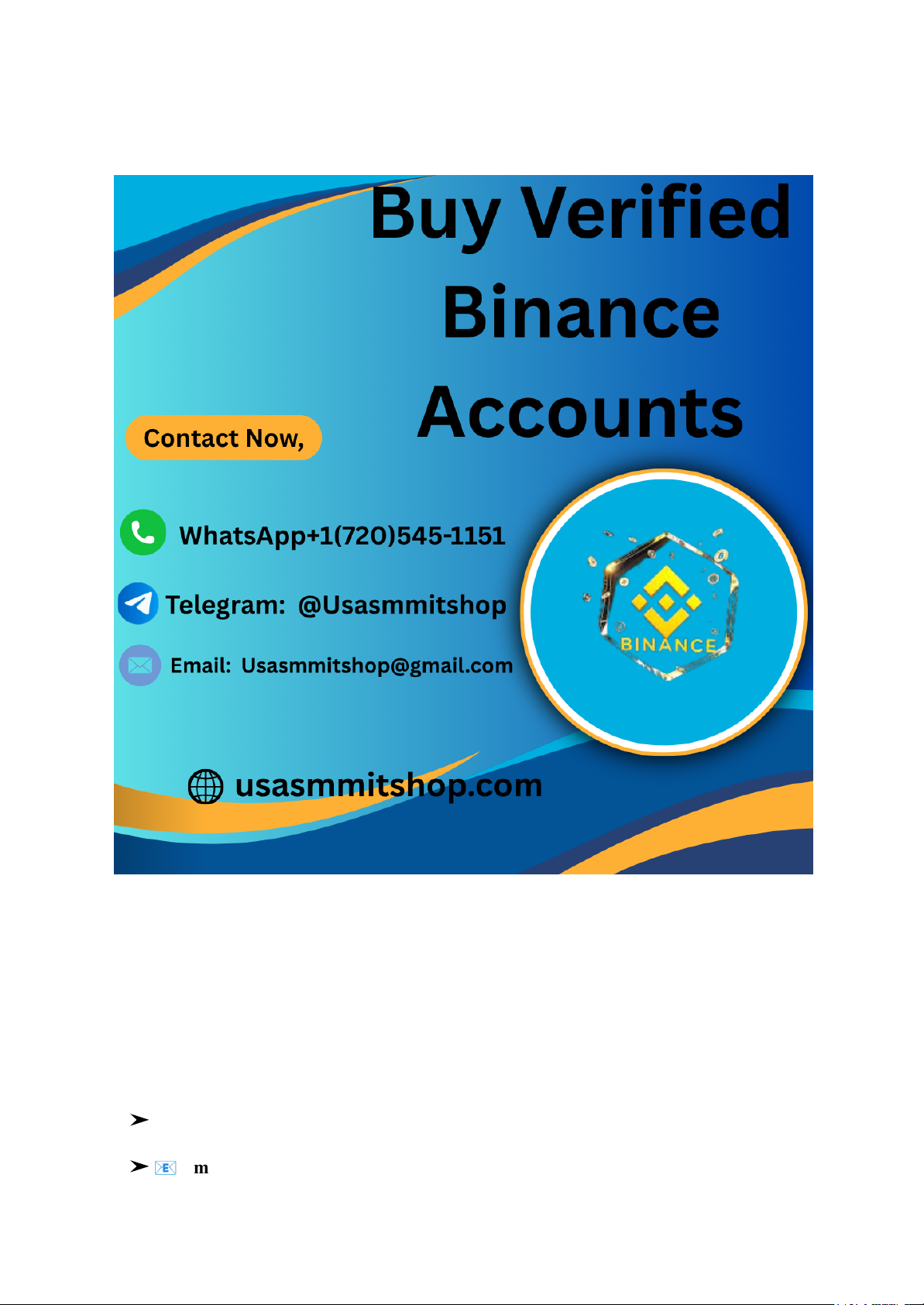Quote by 2How Do I Quick Buy Verified Binance Accounts? … Are you ready to take your crypto trading to the next level? Buying verified Binance accounts can save you time and hassle, giving you quick access to one of the largest and most trusted cryptocurrency exchanges. Imagine skipping the long verification process and diving straight into trading, investing, or withdrawing your funds with ease. If you want to avoid common pitfalls and ensure your account is safe and reliable, this guide will show you exactly what to look for and how to make the best choice. ––➤ If you need other information just contact us: ––➤ 📧 Email: Usasmmitshop@gmail.com ––➤ 📞 WhatsApp +1 (720) 545-1151 ––➤ ☎ Telegram: @Usasmmitshop Keep reading to discover how buying a verified Binance account can work for you. Benefits Of Verified Binance Accounts Verified Binance accounts offer many important advantages for users. These accounts have passed identity checks. This makes trading safer and more secure. Verified accounts let users access all platform features. This helps with smoother and faster transactions. Many people prefer verified accounts to avoid limits and restrictions. Faster Withdrawal And Deposit Limits Verified accounts have higher withdrawal and deposit limits. This means users can move more money daily. Limits for unverified accounts are very low. Verified status removes these low caps. This is useful for serious traders or investors. Access To Advanced Trading Features Only verified users can use advanced trading tools. These include futures, margin trading, and more. Verification lets users trade with more options. It helps to improve trading strategies and results. Increased Account Security Verification adds an extra layer of security. It confirms the user’s identity. This reduces risks of fraud and hacking. Verified accounts are harder to access by unauthorized people. This protects user funds and information. Better Customer Support Verified users often receive faster support from Binance. They get priority in solving account issues. This saves time and reduces stress. It helps users handle problems quickly. Compliance With Legal Rules Verified accounts meet legal and regulatory rules. This helps avoid account bans or freezes. It also makes trading safer and more reliable. Users follow the rules of their country and Binance. Risks Of Purchasing Accounts Buying verified Binance accounts might seem easy and fast. Many believe it saves time and effort. But there are many dangers linked to this action. These risks can lead to loss of https://usasmmitshop.com/product/buy-verified-binance-accounts/ money, data, and trust. Understanding these risks is very important before making any decision. Account Security Issues Purchased accounts often have weak security. The original owner may still have access. This can lead to hacking or theft. Also, the account may be linked to fake or stolen personal information. This makes the account unsafe to use. Binance can detect such problems and block or delete the account without warning. Violation Of Binance Rules Buying accounts goes against Binance's terms of use. This is seen as fraudulent behavior. Binance has strict rules to keep all users safe. If they find an account was bought, they can suspend or close it permanently. This means all your funds could be lost. There is no way to get them back. Financial Loss Risks Money spent on a bought account can be lost quickly. The seller may disappear after payment. There is no guarantee the account will work as promised. If Binance blocks the account, the buyer loses access and money. Also, scammers can steal your funds once they have control. Legal Consequences Using or selling bought accounts can cause legal trouble. Many countries have strict laws on digital fraud. Binance cooperates with law enforcement. Users caught with fake or bought accounts may face fines or legal action. This risk is serious and can affect your future. Impact On Personal Reputation Getting involved in buying accounts can harm your reputation. Friends, family, or business partners may lose trust. It shows unethical behavior and lack of respect for rules. This can hurt opportunities and relationships in the long run. How Verification Works On Binance Binance is a popular platform for buying and selling cryptocurrencies. Verification on Binance helps keep accounts safe and legal. It confirms who the user is by checking their information. This process protects users and the platform from fraud. ––➤ If you need other information just contact us: ––➤ 📧 Email: Usasmmitshop@gmail.com ––➤ 📞 WhatsApp +1 (720) 545-1151 ––➤ ☎ Telegram: @Usasmmitshop What Is Binance Verification? Binance verification means confirming your identity. It asks for personal details like your name, photo ID, and sometimes a selfie. This process helps Binance know you are a real person. It also follows the rules set by governments around the world. Steps To Verify Your Binance Account ● Step 1: Create an account with your email or phone number. ● Step 2: Go to the verification section in your account settings. ● Step 3: Upload a clear photo of your ID card or passport. ● Step 4: Provide a selfie or live photo for face verification. ● Step 5: Wait for Binance to review and approve your documents. Why Is Verification Important On Binance? Verification helps protect your account from hackers. It also allows you to use more features on Binance. Verified users can trade larger amounts and withdraw more money. Without verification, some limits apply to your account. Verification Levels And Limits Sources For Buying Verified Accounts Buying verified Binance accounts can save time and effort. These accounts are ready to use. They have passed Binance's identity checks. This makes trading easier and faster. Many people want accounts that are already verified. It helps them start trading without delays. Online M