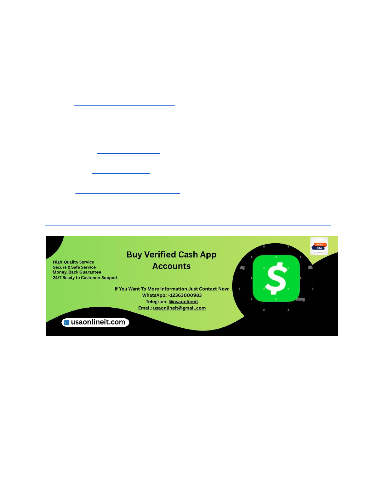 In the rapidly evolving world of digital payments, having a verified Cash App account can significantly enhance your financial activities. Whether you're a business owner, freelancer, or individual, purchasing verified accounts can save time and offer immediate access to premium features. However, finding reliable sources that offer verified Cash App accounts with fast delivery remains a challenge. This guide, brought to you by USAOnlineIT, highlights the best places to buy verified Cash App accounts, emphasizing quick delivery, security, and legitimacy in 2026. If You Want To More Information Just Contact Now: WhatsApp: +12363000983 Telegram: @usaonlineit Email: usaonlineit@gmail.com website link : https://usaonlineit.com/product/buy-verified-cash-app-accounts/ Why Buying Verified Cash App Accounts with Fast Delivery Matters In today's fast-paced digital economy, time is money. When you need an active, verified Cash App account, delays can hinder your financial plans. Fast delivery ensures you can start transacting immediately without waiting for lengthy verification procedures. Verified accounts offer higher transaction limits, credibility, and access to advanced features, making them essential for businesses and individuals alike. Choosing a reliable provider that guarantees quick delivery reduces the risk of account suspension or scam. USAOnlineIT specializes in providing verified Cash App accounts with rapid turnaround times, ensuring clients can operate seamlessly from day one. Fast delivery https://usaonlineit.com/product/buy-verified-cash-app-accounts/' https://wa.me/message/74UDWDX2TFOWF1 https://t.me/usaonlineit https://usaonlineit.com/product/buy-facebook-ads-accounts/usaonlineit@gmail.com https://usaonlineit.com/product/buy-verified-cash-app-accounts/ coupled with genuine accounts minimizes downtime, improves user experience, and maximizes your investment’s value. Benefits of Buying Verified Cash App Accounts from Reputable Providers Opting for verified Cash App accounts from reputable providers ensures security, authenticity, and customer support. These providers take steps to verify accounts through legitimate channels, reducing the risk of scams or bans. Reputable vendors also offer guarantees, refund policies, and after-sale support to address any issues that may arise. Buying from trusted sources like USAOnlineIT means you receive accounts that are fully functional and compliant with platform standards. Reliable providers use secure payment methods, protecting your financial information. The peace of mind that comes with working with an established seller ensures a smooth transaction, quick delivery, and ongoing support—crucial factors in today’s competitive market. Top Places to Buy Verified Cash App Accounts in 2026 The market for verified Cash App accounts is growing, with several platforms offering these services. Among these, USAOnlineIT stands out for its reputation, quick delivery, and quality assurance. Other notable providers include specialized online marketplaces, forums, and social media groups, but caution is advised. It’s vital to choose platforms known for legitimacy and transparency. USAOnlineIT provides a curated selection of verified accounts, ensuring authenticity and fast delivery. Before purchasing, always check reviews, seller reputation, and delivery times. The best places combine ease of access, security, and speed, ensuring you get verified accounts without unnecessary delays or risks. How USAOnlineIT Ensures Fast Delivery of Verified Cash App Accounts USAOnlineIT prioritizes rapid turnaround times by maintaining a streamlined process and a dedicated support team. Once you place an order, our system quickly verifies your details and processes the transaction. We leverage secure, efficient logistics to deliver the account credentials promptly. Our team also offers real-time updates and customer support throughout the process, ensuring transparency and clarity. We understand that delays can be costly, so we guarantee delivery within the shortest possible timeframe—often within a few hours to 24 hours after purchase. Our commitment to speed and quality makes USAOnlineIT a top choice for clients seeking verified Cash App accounts with fast delivery. Ensuring Legitimacy When Purchasing Verified Cash App Accounts Legitimacy is crucial to avoid scams and account bans. When selecting a provider, verify their reputation through reviews, ratings, and customer testimonials. USAOnlineIT maintains high standards of authenticity by sourcing accounts through legitimate channels and providing proof of verification. Always request guarantees, such as money-back policies if accounts are not delivered or are banned shortly after purchase. Avoid providers who ask for upfront payments via untraceable methods or refuse to offer proof of account legitimacy. Prioritize providers with transparent processes, positive feedback, and a track record of delivering verified accounts promptly. How to Verify the Account Once Delivered After receiving your verified Cash App account, verify its functionality immediately. Log into the account and check for access to all features, including sending and receiving money, linking bank accounts, and increasing transaction limits. Confirm that the account has passed all verification steps, such as phone number and ID confirmation. Change passwords and linked details for security. Enable two-factor authentication if available. Testing the account with small transactions initially ensures smooth operation. USAOnlineIT offers post-delivery support to assist with setup and troubleshooting, ensuring your account remains secure and fully operational. Risks Involved in Buying Verified Cash App Accounts While purchasing verified accounts offers convenience, it also involves risks. The primary concern is the possibility of account bans if the platform detects suspicious activity or policy violations. Fake or unverified accounts can lead 