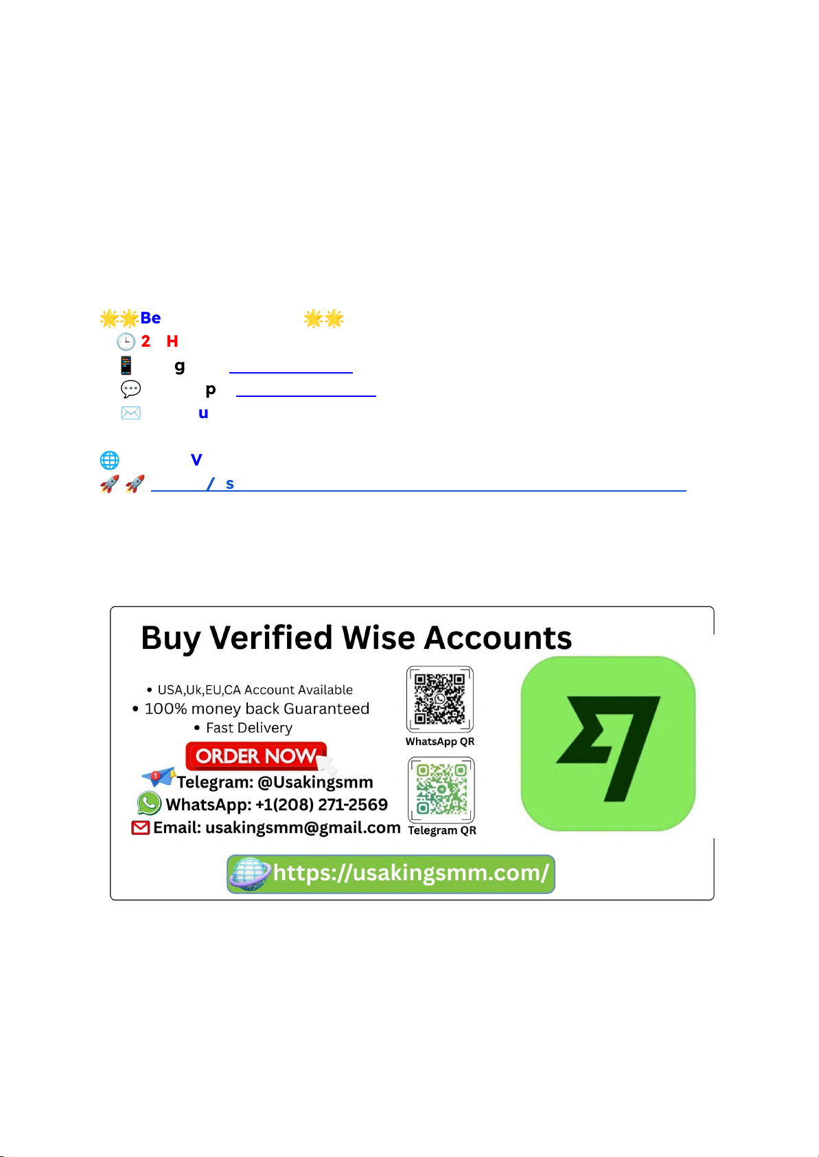 Buying Verified Wise Accounts – Secure & Trusted Wise Account Services Are you looking to Buy Verified Wise Accounts? We have a great solution for you. UsaKingSmm is the best and trusted seller on Google since 2020 with a good reputation. Wise, formerly known as Transfer Wise, is one of the most trusted platforms for fast, secure, and affordable international transactions. 🌟🌟Best Online Service🌟🌟 ➥🕒 24 Hours Reply/Contact ➤📱 Telegram: @Usakingsmm ➤ 💬WhatsApp: +1(208) 271-2569 ➤ ✉Email: usakingsmm@gmail.com 🌐Website Visit Now:- 🚀 🚀 https://usakingsmm.com/product/buy-verified-wise-accounts/ However, the verification process can be time-consuming and tricky for some users. That’s why many are now choosing to buy verified Wise accounts instead. In this article, we’ll walk you through everything you need to know about buying verified Wise accounts—especially from trusted sources like UsaKingSmm. Buy Verified Wise Accounts What Are Verified Wise Accounts? Introduction to Wise (Formerly Transfer Wise) Wise is a financial technology company that allows users to send money across borders with low fees and transparent currency conversion. It is widely used by freelancers, e-commerce https://t.me/Usakingsmm https://wa.me/message/LTVXHCQXS7XGI1?src=qr https://usakingsmm.com/product/buy-verified-wise-accounts/ businesses, and individuals who handle international transactions.Benefits of Having a Verified Wise Account Why People Choose to Buy Verified Wise Accounts Time-Saving for Businesses and Freelancers Getting verified on Wise requires submitting identity documents and waiting for approval. For businesses and freelancers who need immediate access, this delay can be a setback. Buying a verified account allows them to start operating right away.Easy Access to Global Payments Verified Wise accounts simplify cross-border payments. You can receive payments in different currencies and convert them at real-time rates, which is perfect for digital professionals dealing with international clients. 🌟🌟Best Online Service🌟🌟 ➥🕒 24 Hours Reply/Contact ➤📱 Telegram: @Usakingsmm ➤ 💬WhatsApp: +1(208) 271-2569 ➤ ✉Email: usakingsmm@gmail.com 🌐Website Visit Now:- 🚀 🚀 https://usakingsmm.com/product/buy-verified-wise-accounts/ Buy Verified Wise Accounts UsaKingSmm Trusted Provider for Verified Wise Accounts UsaKingSmm is known in the digital market for offering authentic, pre-verified Wise accounts. Key Features Offered by UsaKingSmm Genuine verification with real documents No linked history of suspicious activity Freshly created accounts with full access Instant delivery upon confirmation Responsive customer support By choosing Buy Verified Wise Accounts UsaKingSmm, you’re getting reliability and peace of mind. How to Use a Verified Wise Account Safely Account Protection Tips This ensures you are the only person with access.Avoiding Suspicious Activity Always follow Wise’s terms of service. Don’t use the account for illegal transactions or attempt to hide your identity with VPNs or proxies that trigger security checks. Features of a Verified Wise Account Multi-Currency Support With a verified account, you can receive money in over 10 currencies, including USD, EUR, GBP, and AUD.Real-Time Currency Conversion Wise offers real-time, mid-market exchange rates. This means you’re not losing money on poor conversion rates. Bank-Level Security Wise is regulated by financial authorities in multiple countries, and verified accounts come with extra layers of protection, including 2FA (two-factor authentication). https://t.me/Usakingsmm https://wa.me/message/LTVXHCQXS7XGI1?src=qr https://usakingsmm.com/product/buy-verified-wise-accounts/ Who Needs a Verified Wise Account? Freelancers Freelancers working with clients abroad need easy, fast, and affordable methods to get paid. Wise is perfect for this use case. Digital Entrepreneurs People running online businesses across borders need to send and receive payments globally. Verified Wise accounts make this seamless. E-commerce Store Owners Store owners who accept payments in different currencies can benefit greatly from Wise’s multi-currency account setup. Benefits of Buying a Pre-Verified Wise Account Skip the KYC Process KYC (Know Your Customer) verification can take days or even weeks. Once you have your account, you can start using it for transactions without delay, helping you meet client deadlines and business needs faster. Buy Verified Wise Accounts Full Verification Proof Ensure that the provider offers complete documentation showing the account is fully verified. Secure Login Credentials The account must come with updated login details and should allow you to change the password immediately. No Previous Suspicious ActivitiesA clean transaction history is essential to avoid restrictions or bans on your account. Why UsaKingSmm is a Reliable SourceA Authentic Accounts UsaKingSmm provides accounts created and verified using genuine documents. These are not recycled or hacked accounts.Prompt Delivery Once you make the purchase, your verified Wise account is delivered promptly, often within hours. Affordable Pricing Compared to other marketplaces, UsaKingSmm offers competitive pricing for high-quality, safe, and verified Wise accounts. 🌟🌟Best Online Service🌟🌟 ➥🕒 24 Hours Reply/Contact ➤📱 Telegram: @Usakingsmm ➤ 💬WhatsApp: +1(208) 271-2569 ➤ ✉Email: usakingsmm@gmail.com 🌐Website Visit Now:- 🚀 🚀 https://usakingsmm.com/product/buy-verified-wise-accounts/ Legal Considerations Before Buying Wise Accounts Terms of Service of Wise Wise does not officially allow the transfer or resale of accounts. Be aware of this before you make your purchase. Risks Involved and How to Minimize Them Buying accounts carries some risk. To minimize this: Always buy from trusted sellers like UsaKingSmm. Update passwords and enable 2FA.Use the account for legal transaction