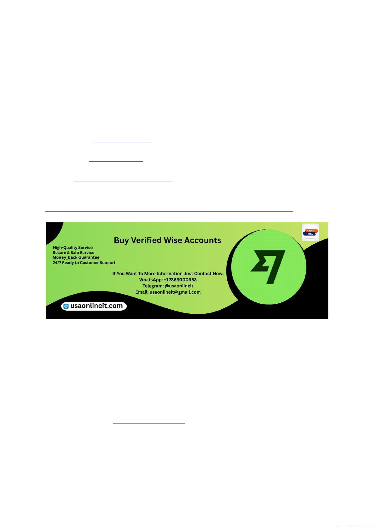 In the evolving landscape of digital finance, Wise (formerly TransferWise) has become a preferred platform for international money transfers due to its transparency, low fees, and real exchange rates. For users seeking to expand their financial capabilities, verified Wise accounts with bank statements and card verification are highly desirable. Such accounts often offer higher transaction limits, credibility, and easier compliance with banking regulations, especially in the US and UK. If You Want To More Information Just Contact Now: WhatsApp: +12363000983 Telegram: @usaonlineit Email: usaonlineit@gmail.com website link : https://usaonlineit.com/product/buy-verified-wise-accounts/ However, acquiring these accounts through official channels can be time-consuming and complex. Many individuals and businesses turn to third-party providers to purchase verified Wise accounts with bank statements and card verification details. The challenge lies in identifying trustworthy sources that provide legitimate, secure, and fully verified accounts. USAOnlineIT specializes in offering high-quality verified Wise accounts with bank statements and card verification details, ensuring maximum security, compliance, and seamless usability. This guide highlights the best places to find such accounts, what to look for in reliable vendors, and how to avoid common pitfalls in the process. Why Do People Need Verified Wise Accounts with Bank Statements & Card Verification? Verified Wise accounts with bank statements and card verification are essential for users who require a high level of trust and compliance for their financial operations. These accounts are often necessary for businesses engaged in international trade, freelancers handling large payments, or individuals involved in high-volume transactions. https://wa.me/message/74UDWDX2TFOWF1 https://t.me/usaonlineit https://usaonlineit.com/product/buy-facebook-ads-accounts/usaonlineit@gmail.com https://usaonlineit.com/product/buy-verified-wise-accounts/ https://usaonlineit.com/product/buy-verified-wise-accounts/ Bank statements serve as proof of identity and financial history, which can facilitate easier compliance with banking and anti-fraud regulations. Card verification adds an extra layer of security, enabling users to link their bank cards for seamless transactions, direct deposits, or withdrawals. Having such verified accounts provides numerous advantages: increased transaction limits, enhanced credibility for receiving payments, and the ability to bypass restrictions faced by unverified accounts. They also help in establishing trust with partners and financial institutions, making global transactions smoother. However, obtaining verified accounts with these features through official channels often involves lengthy verification processes. Many turn to third-party providers for quicker access, but must carefully select trustworthy sources to avoid scams, fake accounts, or legal issues. USAOnlineIT offers verified, legitimate accounts with comprehensive verification details for peace of mind. The Growing Demand for Verified Wise Accounts with Bank Statements & Card Details The increasing reliance on cross-border trade, freelance work, and online business operations has driven demand for verified Wise accounts with bank statements and card details. These accounts are particularly valued in regions like the US and UK, where regulatory scrutiny and compliance standards are high. Buyers seek these accounts to facilitate large transactions, establish credibility with clients and banks, and comply with anti-money laundering (AML) and know-your-customer (KYC) regulations. Many financial institutions and online platforms prefer working with verified accounts that have documented bank statements and linked cards. This demand has created a thriving market of third-party providers offering such accounts for sale. Unfortunately, not all sources are legitimate, and the risk of scams or counterfeit accounts is significant. The best approach is to deal with reputable vendors like USAOnlineIT, known for delivering genuine, verified accounts with detailed documentation. Risks of Buying Verified Wise Accounts with Bank Statements & Card Verification While purchasing verified Wise accounts with bank statements and card verification may seem like a quick solution, it carries notable risks. Many online vendors sell counterfeit or compromised accounts, which can lead to account suspension, loss of funds, or legal repercussions. Fake accounts may be created with stolen or falsified documents, making them unlawful to use and exposing buyers to potential fraud. Wise’s terms of service explicitly prohibit the sale or transfer of accounts, meaning that purchasing such accounts could violate platform policies and result in permanent bans. Furthermore, scammers often prey on unsuspecting buyers by offering fake accounts at low prices, only to disappear after payment. The use of counterfeit documents or illegal verification methods can also lead to criminal charges. To mitigate these risks, buyers must choose trusted vendors with proven reputations. USAOnlineIT prioritizes security, legality, and transparency, providing verified Wise accounts with bank statements and card details that are fully compliant and safe to use. How to Identify Trustworthy Vendors for Verified Wise Accounts Finding reliable vendors for verified Wise accounts with bank statements and card verification requires careful research. First, check online reviews, forums, and community feedback to see experiences from other users. Reputable sellers will have positive reviews and a history of successful transactions. Transparency about the account verification process is crucial. Trustworthy vendors will provide detailed proof of account legitimacy, documentation, and guarantees against suspension or fraud. Secure payment options, including escrow services, add an extra layer of protection. Avoid vendors with vague desc
