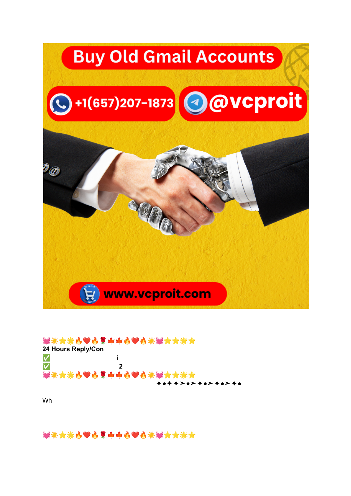 Best Place to Buy Old Gmail Accounts – 100% Safe ●➤●✦✦➤✦●➤●➤●✦➤●✦✦➤●➤✦●✦✦➤●➤✦●➤✦●➤✦● 💓☀⭐🌟🔥❤🔥🌹🍁🍁🔥❤🔥☀💓⭐⭐🌟⭐ 24 Hours Reply/Contact ✅ ➤ Telegram: @vcproit ✅ ➤ WhatsApp: +1(657)207-1873 💓☀⭐🌟🔥❤🔥🌹🍁🍁🔥❤🔥☀💓⭐⭐🌟⭐ ●➤●✦✦➤✦●➤●➤●✦➤●✦✦➤●➤✦●✦✦➤●➤✦●➤✦●➤✦● When it comes to buying old Gmail accounts, safety is paramount. You want a source that not only provides quality accounts but also protects your privacy and investment. ●➤●✦✦➤✦●➤●➤●✦➤●✦✦➤●➤✦●✦✦➤●➤✦●➤✦●➤✦● 💓☀⭐🌟🔥❤🔥🌹🍁🍁🔥❤🔥☀💓⭐⭐🌟⭐ 24 Hours Reply/Contact ✅ ➤ Telegram: @vcproit ✅ ➤ WhatsApp: +1(657)207-1873 💓☀⭐🌟🔥❤🔥🌹🍁🍁🔥❤🔥☀💓⭐⭐🌟⭐ ●➤●✦✦➤✦●➤●➤●✦➤●✦✦➤●➤✦●✦✦➤●➤✦●➤✦●➤✦● One of the best places to consider is specialized websites that focus solely on selling aged email accounts. These platforms have established their reputation by prioritizing customer satisfaction and delivering verified products. Look for vendors with positive reviews and transparent policies. They should guarantee that each account has been properly vetted, ensuring it’s free from previous ownership issues or spam activity. Buy Old Gmail Account Additionally, check if they offer secure payment methods. A trustworthy site will provide options such as PayPal or credit card transactions, which add layers of protection against fraud. Remember, choosing a reliable provider means you can confidently use an old Gmail account without worrying about its integrity or security risks down the line. Buy Old Gmail Accounts Buying old Gmail accounts can be a strategic move for many individuals and businesses. These aged accounts often come with established credibility, making them more reliable for various online activities. They provide enhanced security features and reduced chances of being flagged by platforms. This is especially beneficial for marketers who need to run multiple campaigns without facing restrictions. Moreover, old Gmail accounts can help you access services that require a longer account history. They offer seamless integration into your existing digital ecosystem, saving time in the long run. When considering where to purchase these accounts, it’s vital to choose reputable sources. Look for vendors that prioritize customer support and provide verified options to ensure safety during your transactions. Buy Aged Gmail Account – With Low Price When looking to buy aged Gmail accounts, affordability is often a key consideration. Many platforms offer these accounts at competitive prices, making it easier for businesses and individuals to gain access without breaking the bank. Aged Gmail accounts can provide numerous advantages. They typically come with a history that may enhance their credibility. This can be especially beneficial for marketers and those looking to build an online presence quickly. While searching for cost-effective options, make sure you select reputable sellers who prioritize quality over quantity. Cheap doesn’t always mean reliable; therefore, conducting thorough research is essential. Look out for deals or discounts on bulk purchases too. Buying in volume not only saves money but also ensures consistency across your accounts. Investing in aged Gmail accounts at a low price can open new doors while still being budget-friendly. ●➤●✦✦➤✦●➤●➤●✦➤●✦✦➤●➤✦●✦✦➤●➤✦●➤✦●➤✦● 💓☀⭐🌟🔥❤🔥🌹🍁🍁🔥❤🔥☀💓⭐⭐🌟⭐ 24 Hours Reply/Contact ✅ ➤ Telegram: @vcproit ✅ ➤ WhatsApp: +1(657)207-1873 💓☀⭐🌟🔥❤🔥🌹🍁🍁🔥❤🔥☀💓⭐⭐🌟⭐ ●➤●✦✦➤✦●➤●➤●✦➤●✦✦➤●➤✦●✦✦➤●➤✦●➤✦●➤✦● Buy Old Gmail Accounts-USA, UK, CA, And Other Country When considering where to buy old Gmail accounts, it’s crucial to focus on reputable sources that cater to various regions. Whether you’re in the USA, UK, CA, or anywhere else, having access to aged accounts can make a significant difference. Old Gmail accounts from these countries often come with established credibility. They typically have a history of usage which makes them less likely to be flagged as spam or suspicious by service providers. Additionally, purchasing region-specific accounts can help businesses target local audiences effectively. This geographical advantage adds an extra layer of relevance and trust for potential clients or customers. Choosing tailored options ensures compliance with regional regulations while maximizing your outreach capabilities. Always conduct thorough research before making any purchases. Difference Between New and Aged Gmail Accounts When choosing between new and aged Gmail accounts, understanding their differences is crucial. New Gmail accounts are freshly created with no history. They often lack credibility in online platforms and can be flagged easily by spam filters. Aged Gmail accounts, on the other hand, have been active for a while. They usually come with established histories that provide trustworthiness. This can significantly improve deliverability rates for emails sent from these accounts. Additionally, aged accounts may possess more features like verified backups and contacts, making them more valuable for personal or business use. If you’re considering marketing efforts or outreach programs, an aged account could offer a strategic advantage over starting anew. The choice depends on your goals and how you intend to utilize these email addresses in your operations. Benefits Of Using PVA Gmail Accounts PVA Gmail accounts, or Phone Ve