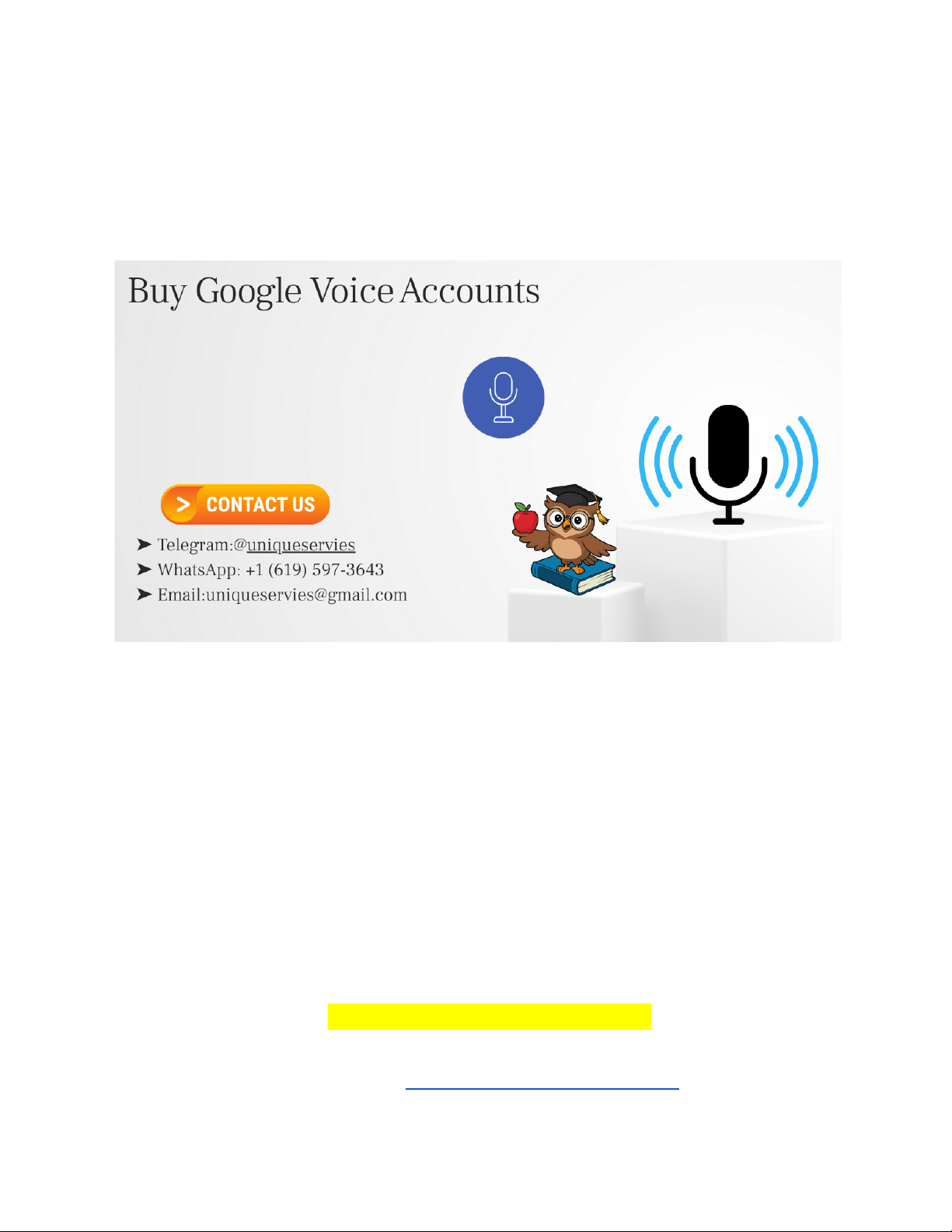 Voice Communication and Google Voice Accounts: Learning Value, Daily Applications, and Life Benefits Meta Description (150–160 characters) Understand Google Voice accounts, voice communication skills, and daily life benefits through educational insights and guidance shared by Uniqueservies. Contact Us We provide 24-hour support to assist you with any questions or guidance. Reach out through any of the following channels: ● Telegram: @uniqueservies ● WhatsApp: +1 (619) 597-3643 ● Email: uniqueservies@gmail.com mailto:uniqueservies@gmail.com ● Introduction Voice communication has always been a fundamental part of human interaction. Even as text messaging and visual platforms grow, the human voice remains essential for clarity, understanding, and emotional connection. In the digital era, voice communication tools have evolved to support learning, organization, and daily coordination across devices and environments. Google Voice accounts represent a modern approach to managing voice communication digitally. Instead of relying on a single device, users can access voice messages, calls, and communication history from multiple platforms. From an educational perspective, this teaches users how cloud-based systems work and how communication can be organized efficiently. Understanding Google Voice is not about transactions or promotion. It is about learning how digital voice systems support everyday responsibilities, academic communication, and personal development. Platforms like Uniqueservies often emphasize that technology becomes meaningful when users understand its purpose and use it responsibly. This article explores Google Voice accounts through an educational and practical lens. It explains how voice communication tools support learning outcomes, develop life skills, and play an important role in daily life. The goal is to help readers gain knowledge, confidence, and clarity about modern voice communication. The Importance of Voice Communication in Daily Life Why Voice Still Matters Voice communication allows people to: ● Express tone and emotion ● Clarify intent ● Build trust and understanding Unlike written text, voice reduces misunderstandings and strengthens human connection. These qualities are especially important in learning environments and daily coordination. Digital voice tools preserve these benefits while adding flexibility and accessibility. Voice Communication in a Digital World Modern platforms allow voice interaction without physical presence. This supports: ● Remote learning ● Family coordination ● Organized communication Educational guidance from Uniqueservies often highlights how digital voice tools support balanced communication habits. Understanding Google Voice Accounts What Is a Google Voice Account? A Google Voice account provides a virtual voice number that works across devices. Users can: ● Access calls on different platforms ● Review voicemails digitally ● Maintain communication history This structure introduces users to cloud-based communication concepts. Educational Value of Understanding Google Voice Learning how Google Voice works helps users: ● Develop digital literacy ● Understand account management ● Practice responsible communication These skills are essential in modern education and everyday life. Educational Applications of Google Voice Supporting Learning and Study Environments Google Voice can be used for: ● Student-to-student communication ● Academic group discussions ● Educational coordination Using voice responsibly helps learners practice clarity and respect. Developing Communication Skills Through regular voice interaction, users improve: ● Speaking confidence ● Active listening ● Clear expression These skills support academic success and lifelong learning. Life Skills Developed Through Google Voice Usage Organization and Time Awareness Google Voice encourages users to: ● Review messages systematically ● Respond thoughtfully ● Manage communication schedules These habits strengthen time management skills. Digital Responsibility and Boundaries By organizing communication channels, users learn: ● When to engage ● How to avoid overload ● How to stay focused Uniqueservies often emphasizes boundary-setting as a key digital life skill. Practical Applications in Everyday Life Personal and Family Communication In daily routines, Google Voice supports: ● Family updates ● Schedule coordination ● Clear voice messaging This reduces confusion and improves reliability. Academic and Collaborative Use For group learning and collaboration, Google Voice helps: ● Maintain clear communication ● Share updates efficiently ● Encourage accountability These experiences mirror real-world communication standards. Why Google Voice Matters for Digital Independence Multi-Device Accessibility Google Voice works across: ● Smartphones ● Computers ● Tablets This flexibility supports independence and adaptability. Building Confidence with Technology Understanding voice platforms helps users: ● Feel comfortable with digital tools ● Adapt to new systems ● Communicate effectively Educational insights from Uniqueservies highlight this confidence as a long-term benefit. Contact Us We provide 24-hour support to assist you with any questions or guidance. Reach out through any of the following channels: ● Telegram: @uniqueservies ● WhatsApp: +1 (619) 597-3643 ● Email: uniqueservies@gmail.com Case Studies and Learning Examples Case Study 1: University Student Organization A university student used Google Voice to manage academic communication. Separating study-related messages improved focus, organization, and response clarity. Case Study 2: Online Learning Group A remote study group relied on voice communication for discussions and scheduling. Voice interaction improved understanding and teamwork. Case Study 3: Family Learning Support A family used Google Voice to manage school updates and learning sche