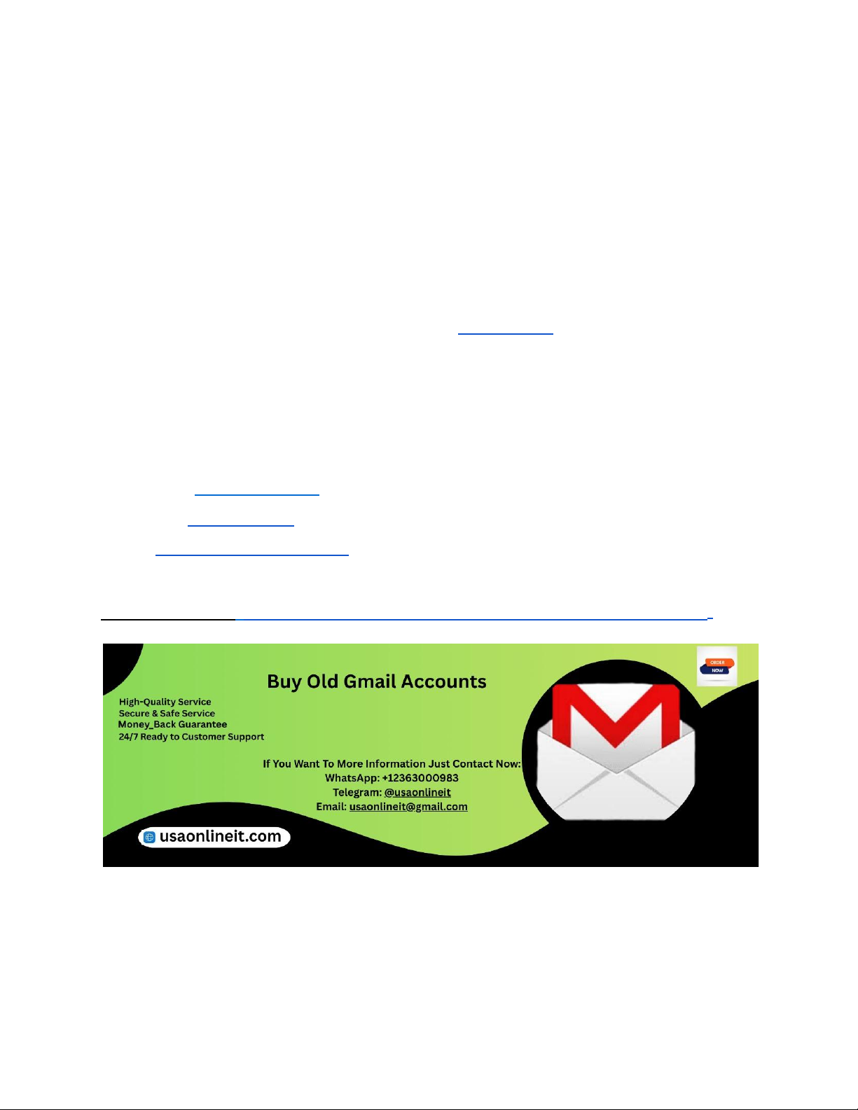 Top 12 Best Sites to Buy Old Gmail Accounts In today’s digital economy, aged Gmail accounts—especially bulk and PVA (Phone Verified Accounts)—are widely used by marketers, agencies, developers, and businesses for various operational needs. Old Gmail accounts offer higher trust levels, better stability, and reduced verification challenges compared to newly created accounts. As demand grows, choosing reliable and trusted providers becomes essential. At USAOnlineIT, we understand the importance of quality, safety, and compliance when sourcing aged Gmail accounts. This guide explores what makes a provider reliable, why aged and PVA Gmail accounts matter, and how businesses can make informed purchasing decisions in 2026. If You Want To More Information Just Contact Now: WhatsApp: +12363000983 Telegram: @usaonlineit Email: usaonlineit@gmail.com Webbsites Link : https://usaonlineit.com/product/buy-old-gmail-accounts/ Why Old Gmail Accounts Are in High Demand Old Gmail accounts are valued because they carry account age, activity history, and trust signals that new accounts lack. Google’s systems often flag freshly created accounts for https://usaonlineit.com/product/buy-old-gmail-accounts/ https://wa.me/+12363000983 https://t.me/usaonlineit https://usaonlineit.com/product/buy-facebook-ads-accounts/usaonlineit@gmail.com https://usaonlineit.com/product/buy-old-gmail-accounts/ additional verification, especially when used for business tools or platform integrations. Aged accounts reduce friction and improve usability. Businesses prefer old Gmail accounts for smoother onboarding across platforms, fewer security prompts, and better long-term reliability. USAOnlineIT focuses on providing aged Gmail accounts that are stable, properly warmed, and suitable for bulk usage without compromising account integrity or safety. Understanding Bulk Gmail Account Requirements Bulk Gmail accounts are essential for agencies, SaaS companies, and large-scale operations that require multiple logins for tools, testing environments, or platform access. Buying in bulk ensures consistency, cost efficiency, and operational scalability. However, bulk purchasing also increases risk if accounts are low quality or improperly sourced. That’s why businesses rely on trusted providers like USAOnlineIT, which emphasizes clean sourcing, account stability, and responsible distribution practices to meet enterprise-level requirements. Importance of PVA Gmail Accounts PVA (Phone Verified Accounts) Gmail profiles are significantly more trusted than non-verified accounts. Phone verification adds an extra layer of authenticity, reducing the chances of security flags or forced verification. PVA Gmail accounts are particularly useful for business workflows that require consistent login behavior and minimal disruptions. At USAOnlineIT, PVA Gmail accounts are carefully verified and tested to ensure long-term usability, making them ideal for professional and commercial use cases. Factors to Evaluate Before Buying Old Gmail Accounts Not all Gmail account providers are equal. Buyers should evaluate account age, login stability, PVA status, IP consistency, and provider reputation. Poor-quality accounts can lead to rapid suspensions or verification loops. USAOnlineIT emphasizes transparency, account quality checks, and customer support to help buyers avoid common pitfalls. Choosing a provider that prioritizes long-term usability over short-term volume is essential for sustainable operations. Account Age and Its Impact on Reliability Account age plays a major role in Gmail reliability. Older accounts tend to have higher trust scores within Google’s ecosystem, leading to fewer restrictions and smoother access to services. Accounts aged six months, one year, or longer are generally more stable. USAOnlineIT offers a range of aged Gmail accounts, allowing buyers to choose based on their specific operational needs while maintaining consistent quality standards. Security and Safety Considerations Security is a major concern when purchasing Gmail accounts. Low-quality accounts may be compromised, reused, or improperly handled. Trusted providers ensure account uniqueness, secure credentials, and proper handover procedures. USAOnlineIT follows strict security https://usaonlineit.com/product/buy-old-gmail-accounts/ protocols to ensure that every Gmail account delivered is safe, exclusive, and ready for responsible use. This focus on safety helps protect buyers from data loss or operational disruptions. Compliance and Responsible Usage Using Gmail accounts responsibly is critical for long-term success. Google enforces strict policies to protect users and platforms. Buyers should always use accounts in compliance with applicable terms and laws. USAOnlineIT encourages ethical usage and provides guidance to help clients maintain account health, reduce risk, and operate within acceptable boundaries while meeting business objectives. Scalability for Agencies and Enterprises Agencies and enterprises often require scalable solutions that grow with their operations. Bulk Gmail accounts support testing, automation frameworks, and multi-user workflows. USAOnlineIT offers scalable delivery options, ensuring consistent quality across large volumes. This makes it easier for organizations to expand operations without worrying about account instability or inconsistent performance. Delivery Speed and Account Readiness Fast delivery matters, but account readiness matters more. Aged Gmail accounts should be properly prepared before delivery. USAOnlineIT balances speed with quality by ensuring accounts are ready for use upon delivery while maintaining security and stability. This approach helps businesses avoid downtime and operational delays. Customer Support and After-Sales Assistance Reliable customer support separates professional providers from unreliable sellers. Buyers need assistance with account access, setup, or general guidance. USAOnlineIT offers responsive