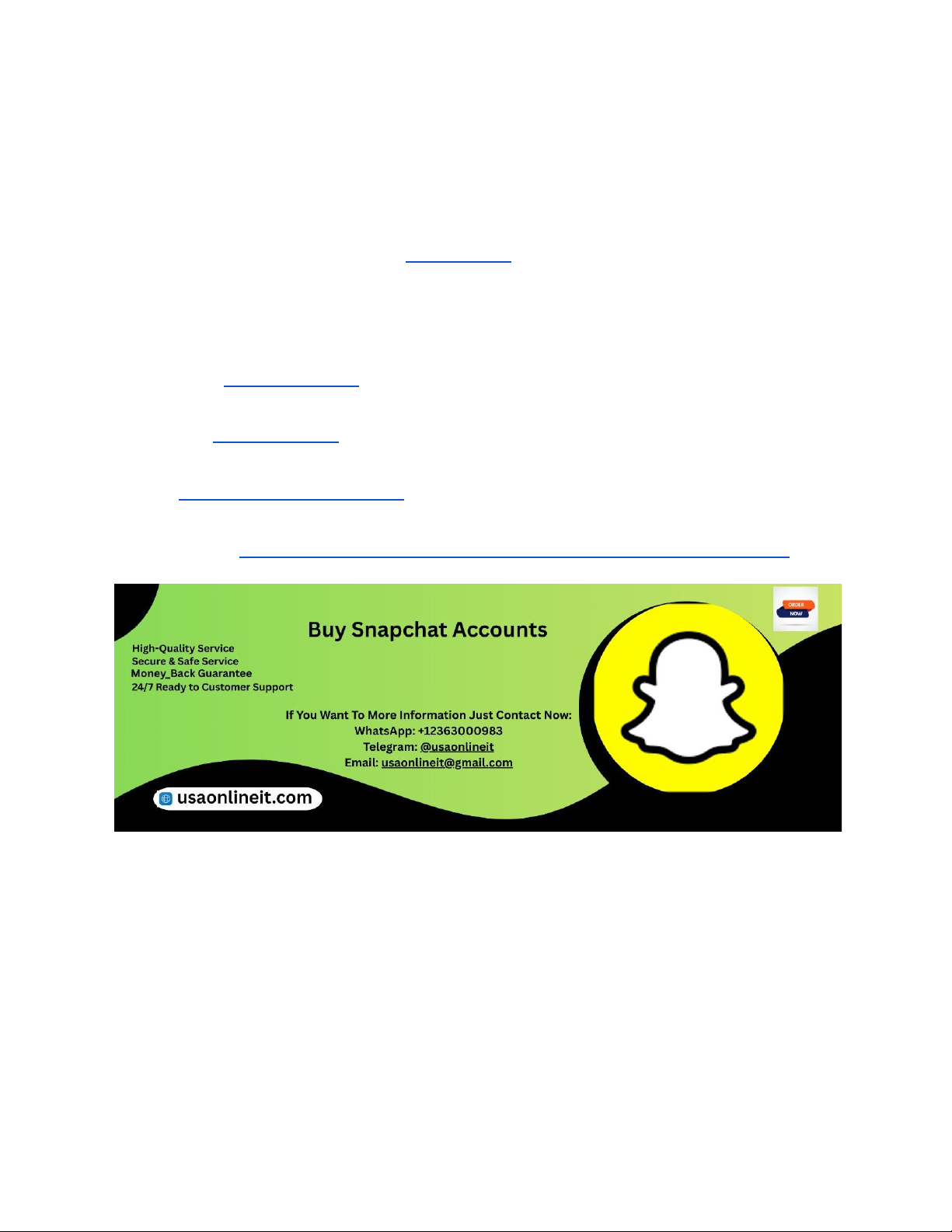 In today's digital landscape, social media platforms like Snapchat play an essential role in personal branding, marketing, and communication. For individuals and businesses seeking instant credibility, aged and verified Snapchat accounts are highly desirable. However, purchasing these accounts requires caution to ensure security, authenticity, and compliance with platform policies. As we navigate 2026, understanding where and how to buy aged and verified Snapchat accounts securely is crucial. USAOnlineIT specializes in providing reliable, verified accounts that meet these needs while prioritizing safety and transparency. If You Want To More Information Just Contact Now: WhatsApp: +12363000983 Telegram: @usaonlineit Email: usaonlineit@gmail.com website link : https://usaonlineit.com/product/buy-snapchat-accounts/ The Growing Demand for Aged & Verified Snapchat Accounts The social media industry has seen exponential growth, with Snapchat remaining a prominent platform for both personal interaction and marketing. Aged and verified accounts are particularly valuable because they carry existing reputation, followers, and engagement metrics, saving users time and effort in building credibility from scratch. Businesses leverage these accounts to promote products seamlessly, while influencers and individuals use them to amplify their online presence quickly. The demand for such accounts has surged, especially with the increasing importance of social proof in digital marketing. However, this demand also raises concerns about authenticity, security, and compliance. Many users seek trusted sources that offer genuine aged and verified accounts without risking https://usaonlineit.com/product/buy-snapchat-accounts/ https://api.whatsapp.com/send/?phone=%2B12363000983&text&type=phone_number&app_absent=0 https://t.me/usaonlineit suspension or scams. Consequently, reputable providers like USAOnlineIT have emerged as reliable options, offering verified accounts that can be purchased securely, ensuring users get value without compromising safety. Why Choose Aged & Verified Snapchat Accounts? Aged and verified Snapchat accounts offer numerous advantages over fresh accounts. First, they come with existing followers, reputation, and engagement metrics, which are crucial for marketing campaigns or brand building. These accounts often have established credibility, making it easier to gain trust from new followers or partners. Second, verified accounts tend to have a blue checkmark, signaling authenticity and reducing the risk of impersonation, which is vital for influencers and brands. Additionally, aged accounts often bypass Snapchat’s initial restrictions, such as account verification or content approval, allowing for smoother operation. They are less likely to be flagged for suspicious activity, reducing the chances of suspension. For users in 2026, purchasing verified and aged accounts is a strategic move to accelerate growth, save time, and establish a trustworthy online presence. Nevertheless, it’s essential to purchase from reputable sources to avoid scams, fake accounts, or violating Snapchat’s terms of service. USAOnlineIT provides verified accounts with guarantees of authenticity and security, making them a preferred choice for discerning buyers. Factors to Consider When Buying Snapchat Accounts in 2026 When purchasing Snapchat accounts, especially aged and verified ones, several critical factors should guide your decision. First, verify the credibility of the seller—look for reviews, ratings, and transparency about their sourcing methods. Second, ensure the accounts come with proof of age and verification status, such as screenshots or transaction records. Third, consider the security features offered, such as account recovery options, login credentials, and guarantee policies. Fourth, check whether the seller guarantees that the account has not been involved in spammy activities or violations, which could lead to suspension. Fifth, assess the customer support services for assistance post-purchase. Additionally, transparency about the account’s history, followers’ authenticity, and activity levels is vital. Always prefer sellers who provide guarantees or refunds if the account gets suspended or flagged. USAOnlineIT excels in these aspects, offering verified accounts with full transparency, security, and customer satisfaction. The Risks of Buying Snapchat Accounts from Unreliable Sources While purchasing Snapchat accounts can be beneficial, it carries inherent risks if not done carefully. Unreliable sources often sell fake, hacked, or low-quality accounts that do not meet expectations. These accounts may have been involved in spam, scams, or violations of Snapchat’s policies, increasing the risk of suspension or permanent bans. Fake accounts pose additional problems—they may not have genuine followers, leading to poor engagement and reputation damage. Moreover, some sellers employ illegal methods to acquire accounts, such as hacking or scamming, which can lead to legal consequences for buyers. Furthermore, untrustworthy sources may not provide account recovery options or guarantees, leaving buyers vulnerable to scams or account theft. In 2026, the importance of selecting reputable vendors like USAOnlineIT cannot be overstated, as they prioritize security, authenticity, and customer protection. How to Identify a Reputable Snapchat Account Seller in 2026 Finding a trustworthy seller for Snapchat accounts involves careful research and due diligence. Start by checking reviews, testimonials, and online reputation. Reputable vendors will have transparent websites, clear policies, and positive feedback from previous customers. Look for sellers who provide proof of account authenticity such as screenshots, transaction records, or guarantees. Assess their customer support responsiveness—prompt and helpful support indicates professionalism. Avoid vendors with vague descriptions, no contact info