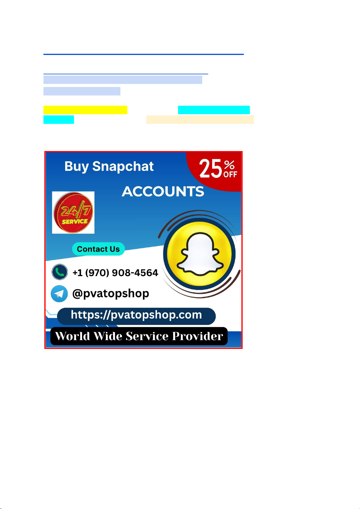 Buy Snapchat Accounts – Secure & Trusted https://pvatopshop.com/product/buy-snapchat-accounts/ If you want more information, just contact us now. 24 Hours Reply/Contact ➤Telegram:@pvatopshop➤➤➤➤➤➤➤➤ WhatsApp:+1 (970) 908-4564➤➤➤➤➤➤➤➤➤➤➤ Email:pvatopshop@gmail.com Explore Snapchat accounts from an educational perspective. Learn practical uses, life benefits, and digital skills with guidance from pvatopshop. Snapchat is one of the most widely used social media platforms for sharing photos, videos, and stories in real time. Beyond entertainment, Snapchat accounts provide opportunities for developing digital literacy, communication skills, and creative expression. Whether used by students, professionals, or casual users, understanding how to manage a Snapchat account effectively builds practical skills that extend into daily life. Snapchat accounts store personal interactions, creative content, and social connections. Learning how to navigate and organize them fosters skills such as digital responsibility, information management, and audience engagement. By exploring Snapchat’s features, users gain insight into ephemeral content, multimedia messaging, and social trends, which are increasingly important in digital communication today. https://pvatopshop.com/product/buy-snapchat-accounts/ https://pvatopshop.com/product/buy-snapchat-accounts/ Guidance from pvatopshop can help users understand account setup, management, and creative features in ways that maximize educational value and personal development. This article covers the educational benefits, practical applications, real-life examples, step-by-step guides, and FAQs about Snapchat accounts, providing a thorough understanding of their role in modern digital life. Understanding Snapchat Accounts What Is a Snapchat Account? A Snapchat account allows users to send and receive photos, videos, messages, and stories that disappear after being viewed or after a set period. Each account includes: ● A username and display name ● Friends list and chat history ● Snap Score reflecting engagement ● Access to filters, lenses, and creative tools Understanding these features is key to learning how Snapchat can be used responsibly and creatively. Why Snapchat Accounts Matter Snapchat accounts help users develop digital literacy by teaching them how to: ● Communicate visually and concisely ● Protect personal information online ● Engage with communities and maintain social connections The skills gained from managing Snapchat accounts are transferable to other digital platforms, including Instagram, TikTok, and professional collaboration tools. Practical Applications of Snapchat Accounts Creative Expression and Communication Snapchat encourages creativity through multimedia messaging. Users can: ● Create photo or video stories with filters and stickers ● Communicate ideas using text, images, and video ● Collaborate on visual projects with friends or peers These applications teach creative thinking, visual communication, and storytelling—skills valuable in education, business, and personal development. Social Networking and Relationship Management Snapchat accounts facilitate social engagement and network building: ● Stay connected with friends and family ● Participate in group chats or collaborative stories ● Manage social interactions responsibly These practical uses improve interpersonal skills, time management, and digital etiquette. Educational Uses Educators and students can leverage Snapchat for learning purposes: ● Share multimedia study notes or class updates ● Create educational stories or tutorials ● Engage peers with interactive visual content By integrating Snapchat into education, users learn digital content creation, communication, and collaborative skills. Educational and Life Skills Benefits Digital Literacy Snapchat accounts teach users how to navigate online platforms safely and efficiently: ● Understanding privacy settings ● Managing friend lists and content visibility ● Evaluating authenticity of received messages These skills are critical for responsible digital citizenship and online safety. Time and Information Management Managing Snapchat requires learning to prioritize communication and organize content: ● Archive important snaps or notes ● Schedule story posting for consistent engagement ● Balance social interaction with other responsibilities These habits help users develop personal organization and time management skills. Communication and Creativity Snapchat emphasizes short-form visual communication, enhancing: ● Storytelling abilities ● Visual literacy ● Creative problem-solving in digital contexts Learning these skills improves both personal expression and professional digital competencies. Case Studies and Real-Life Examples Case Study 1: Educational Story Sharing Maria, a high school teacher, uses her Snapchat account to create educational stories for students. She shares short video tutorials, interactive quizzes, and tips for assignments. Over time, her students engage more actively and learn digital collaboration skills alongside academic content. Case Study 2: Creative Marketing Project Leo, a college student, uses Snapchat for a creative marketing project. By designing engaging story campaigns, he learns audience targeting, content scheduling, and engagement tracking. This experience develops his professional skills in marketing and social media management. Case Study 3: Personal Organization and Memory Keeping Sophia uses Snapchat to track events and interactions with friends. By organizing her stories and saved snaps, she improves memory retention, personal planning, and reflective thinking. These examples demonstrate how Snapchat accounts can teach digital literacy, enhance creativity, and develop practical life skills beyond simple social interaction. Step-by-Step Guide to Using Snapchat Accounts Step 1: Create an Account