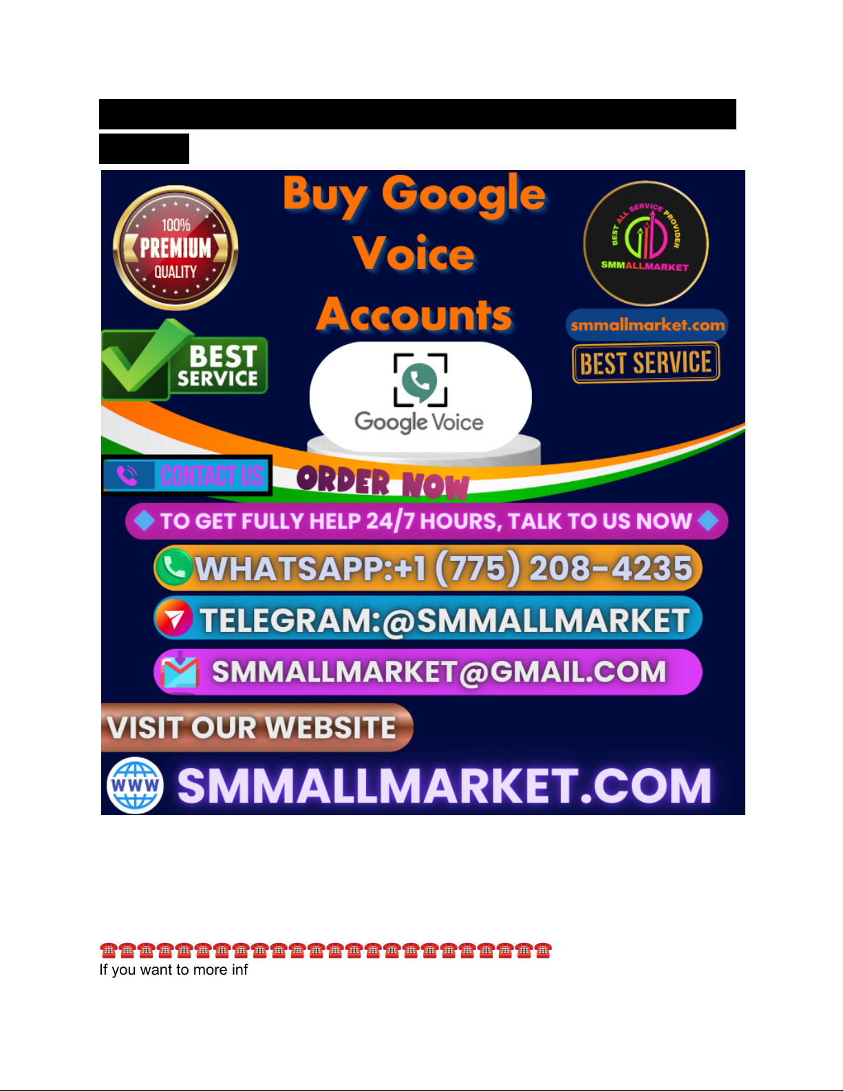 Buy Google Voice Account - 100% Verified & Ready for Use Google Voice is a communication service by Google that provides users with a free U.S. phone number for calling, texting, and voicemail. It's accessible via smartphones, tablets, or computers, allowing seamless communication across devices. One of its standout features is voicemail transcription, which converts voice messages into text and sends them to your email or SMS. ☎☎☎☎☎☎☎☎☎☎☎☎☎☎☎☎☎☎☎☎☎☎☎☎ If you want to more information just contact now here ⏰⏰⏰24 Hours Reply/Contact ➡–➤📱Telegram: @smmallmarket ➡–➤☎WhatsApp:+1 (775) 208-4235 ➡–➤📱Email:smmallmarket@gmail.com 🌐https://smmallmarket.com/product/buy-google-voice-accounts/ ▰▰▰▰▰▰▰▰▰▰▰▰▰▰▰▰▰▰▰▰▰▰▰▰▰▰▰▰▰▰▰▰▰▰ 🛒🛒🛒🛒🛒🛒🛒🛒🛒🛒🛒🛒🛒🛒🛒🛒🛒🛒🛒🛒🛒🛒🛒🛒🛒 Google Voice supports call forwarding to multiple numbers, ensuring you never miss a call. It also includes spam filtering, Do Not Disturb mode, and low-cost international calling. For business users, Google Voice integrates with Google Workspace, offering features like auto-attendants, ring groups, and user management tools. Benefits include cost savings, as it’s free for personal use and offers affordable plans for businesses. It helps protect privacy by allowing users to share a Google Voice number instead of their personal one. Its searchable call and text history make it easy to track communications. Overall, Google Voice is ideal for individuals, freelancers, and businesses wanting a flexible, cloud-based phone solution. It supports remote work, enhances professionalism, and offers convenience by consolidating communications in one accessible platform. Examining the Versatility of Google Voice Accounts for Personal and Business Applications Google Voice is a versatile communication tool that serves both personal and business needs with a unified platform for calls, texts, and voicemails. For personal users, it offers a free U.S. phone number that works across smartphones, tablets, and computers. This allows users to stay connected anywhere with internet access, while features like voicemail transcription, call forwarding, and spam blocking enhance usability and convenience. For business applications, especially when paired with Google Workspace, Google Voice transforms into a professional-grade phone system. Businesses can set up auto-attendants, create ring groups, manage multiple users, and route calls efficiently—all from an intuitive admin console. It’s ideal for remote teams, freelancers, and growing companies looking for a cost-effective and scalable communication solution. The ability to separate personal and professional communications using different numbers under the same Google account makes Google Voice particularly appealing. It’s also great for protecting privacy, managing client calls, and ensuring access to messages across devices. mailto:smmallmarket@gmail.com https://smmallmarket.com/product/buy-google-voice-accounts/ With affordable international calling rates and strong integration with other Google services, Google Voice provides flexibility and functionality for users at any level. In summary, Google Voice delivers reliable, cross-platform communication suited for both everyday use and business operations. The Advantages of Utilizing Google Voice Accounts for Your Business Google Voice offers numerous benefits for businesses, making it a valuable communication tool in today’s digital age. One of the primary advantages is cost-effectiveness. Google Voice provides affordable calling and messaging options, reducing the expenses associated with traditional phone systems and long-distance calls. Another key benefit is flexibility. Google Voice allows employees to use a single phone number that can ring multiple devices, including smartphones, tablets, and computers. This feature enhances accessibility and ensures that important calls are never missed, whether staff are in the office or working remotely. ☎☎☎☎☎☎☎☎☎☎☎☎☎☎☎☎☎☎☎☎☎☎☎☎ If you want to more information just contact now here ⏰⏰⏰24 Hours Reply/Contact ➡–➤📱Telegram: @smmallmarket ➡–➤☎WhatsApp:+1 (775) 208-4235 ➡–➤📱Email:smmallmarket@gmail.com 🌐https://smmallmarket.com/product/buy-google-voice-accounts/ ▰▰▰▰▰▰▰▰▰▰▰▰▰▰▰▰▰▰▰▰▰▰▰▰▰▰▰▰▰▰▰▰▰▰ 🛒🛒🛒🛒🛒🛒🛒🛒🛒🛒🛒🛒🛒🛒🛒🛒🛒🛒🛒🛒🛒🛒🛒🛒🛒 Google Voice also improves professionalism. Businesses can set up custom greetings, voicemail transcriptions, and call forwarding, giving clients a seamless and polished communication experience. Moreover, Google Voice integrates smoothly with other Google Workspace apps, facilitating efficient workflow management. Additionally, Google Voice supports call screening and blocking, helping businesses avoid spam calls and maintain productivity. The system also provides detailed call logs and voicemail management, aiding in monitoring communication and enhancing customer service. In summary, Google Voice is a powerful, cost-effective, and flexible communication solution that supports modern business needs by improving accessibility, professionalism, and overall efficiency. Advantages When You Purchase Google Voice Accounts for Marketing Purchasing Google Voice accounts for marketing purposes offers several significant advantages that can enhance communication and improve campaign effectiveness. One major benefit is cost efficiency. Google Voice allows marketers to manage multiple phone numbers at a low cost, reducing expenses on traditional phone lines while enabling better client outreach. Another key advantage is improved tracking and organization. Marketers can assi