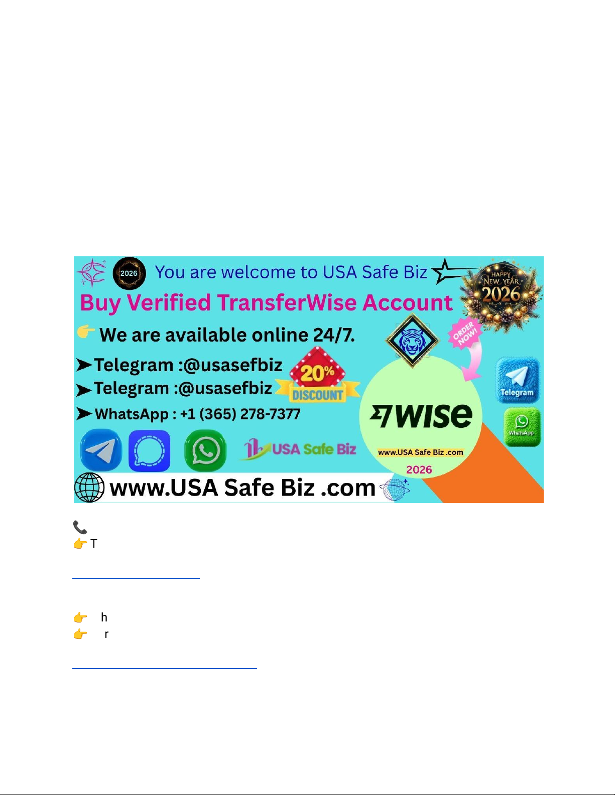 Buy Verified TransferWise Account – Best Verified 2023 Looking to buy a verified TransferWise account that’s fully secure, verified, and ready to use immediately? Welcome to Usasafebiz, your trusted source for ready-made, authentic TransferWise (now Wise) accounts for personal or business use. Whether you need verified global banking access or international money transfer flexibility, our verified accounts save you time, ensure safety, and are delivered in record time. 📞 Contact Details: 👉 Telegram: https://t.me/Usasafebiz 👉 WhatsApp: +1 (365) 278-7377 👉 Purchase Now: Buy Verified TransferWise Account Why TransferWise (Wise) Accounts Are So Popular https://t.me/Usasafebiz https://t.me/Usasafebiz https://t.me/Usasafebiz https://usasafebiz.com/service/buy-verified-transferwise-account/ https://usasafebiz.com/service/buy-verified-transferwise-account/ TransferWise, now called Wise, has revolutionized the way people handle international money transfers. Unlike traditional banks with hidden fees, Wise offers transparent exchange rates and minimal transaction costs, allowing users to send, receive, and hold multiple currencies easily. However, many people struggle to complete verification or get approval for business or international usage — especially if they’re based outside supported countries. That’s where Usasafebiz comes in. We provide fully verified TransferWise accounts that are ready for immediate global transactions, verified with authentic credentials, and set up professionally for long-term reliability. Why You Should Buy a Verified TransferWise Account Buying a verified TransferWise account gives you instant access to all essential features — without waiting days for verification checks or risking documents being declined. Whether you’re a freelancer, business owner, or digital entrepreneur, having a verified TransferWise account unlocks complete freedom for borderless finance. Key Advantages: ● Instant Account Access: No need to wait for verification approval. ● Fully Verified Setup: Email, ID, and banking details pre-verified. ● Global Reach: Send and receive money in 70+ countries. ● Multi-Currency Support: Hold over 50 different currencies. ● Business-Ready Options: Perfect for entrepreneurs or startups. ● Secure Transactions: Complies with international anti-fraud systems. Example: Many global freelancers choose verified Wise accounts to receive USD, GBP, or EUR payments instantly from clients abroad — without long waits or high bank conversion fees. What You Get When You Buy Verified TransferWise Account from Usasafebiz At Usasafebiz, we create and verify each TransferWise account to guarantee secure, real-world functionality and stability. You’re not just buying an account — you’re gaining a verified financial tool for professional transactions and international credibility. ✅ Our Verified TransferWise Account Includes: ● 100% KYC-verified Wise account ● Linked and verified bank details ● Multi-currency wallet (USD, EUR, GBP, etc.) ● Connected debit card (optional on request) ● Secure login credentials & recovery options ● Accessible from anywhere globally ● Instant account delivery after purchase We also guide you through secure account installation and use — ensuring every client experience is smooth, fast, and safe. Why Choose Usasafebiz Usasafebiz has built its name as a trusted global provider for verified online accounts. With years of experience and thousands of satisfied customers, our focus is on delivering security, consistency, and reliability. Why We Stand Out: ● 🟢 Authentic Accounts Only – No bots, no fake info. ● ⚡ Instant Delivery – Get set up within hours. ● 🔒 Private & Secure Transfers – Encrypted delivery guaranteed. ● 💬 24/7 Support – Reach us anytime on Telegram or WhatsApp. ● 💰 Affordable Prices – Unbeatable value in the market. We don’t just sell verified accounts — we deliver peace of mind. Pro Tip: Combine a verified TransferWise account with your PayPal or Skrill account to manage international payments more efficiently without high conversion charges. Who Needs a Verified TransferWise Account Wise accounts are perfect for individuals and businesses involved in global transactions. Thousands of professionals rely on TransferWise every day because of its low fees, transparency, and convenience. User Type Common Use Freelancers Receive international payments easily Business Owners Pay suppliers or employees abroad Students Manage tuition or living expenses abroad Investors Exchange and withdraw money across currencies Digital Marketers Accept funds from global clients Example: A digital marketing agency owner can use a verified Wise account to receive USD client payments, withdraw in local currency, and convert effortlessly at real exchange rates. Benefits of Buying a Verified TransferWise Account Buying from Usasafebiz saves time while providing a secure financial management system for your global transactions. 1. Fast Setup Skip the waiting period for manual verification — your account is ready to use immediately. 2. Multi-Currency Freedom Hold, send, and manage funds in 50+ currencies under one platform. 3. Transparent Exchange Rates Enjoy real mid-market conversion rates with no hidden fees. 4. Safer Transactions TransferWise (Wise) adheres to Tier-1 financial security and encryption standards. 5. Professional and Business Friendly Run international payments, manage payrolls, or receive funds from clients directly into your verified account. How to Buy a Verified TransferWise Account from Usasafebiz Our purchasing process is quick and simple, designed with customer satisfaction in mind. Step-by-Step Process: 1. Visit the Product Page: 2. Buy Verified TransferWise Account 3. Choose Account Type: Personal, Business, or Multi-Currency Account. 4. Confirm Payment: Use any supported payment method for a smooth checkout. 5. Receive Details: We’ll se