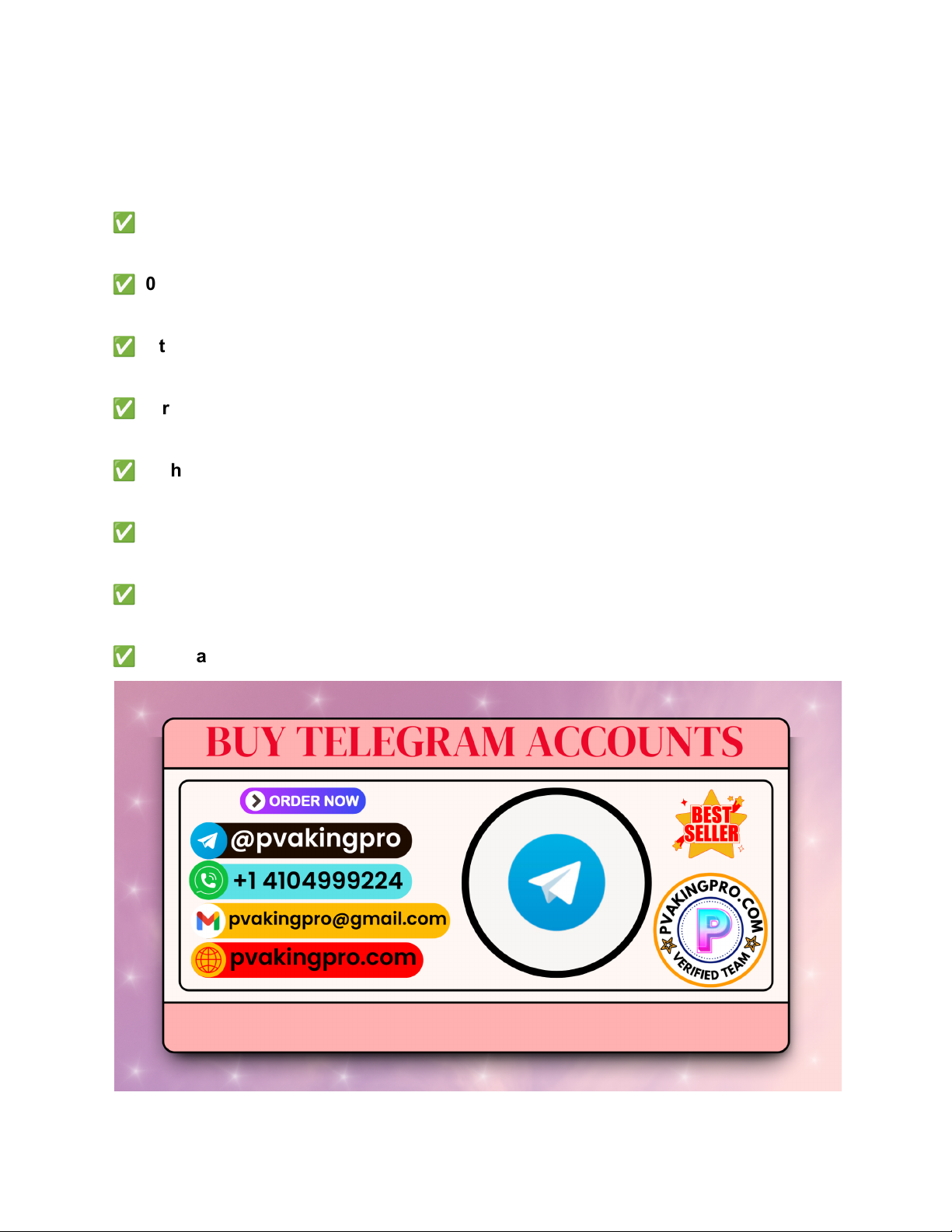 Features of Telegram Accounts ✅ 100% Customers Satisfaction Guaranteed ✅100% Non-Drop Telegram Accounts ✅Active Telegram Accounts ✅ Very Cheap Price ✅ High-Quality Service ✅ 24/7 Ready to Customer Support ✅ Extra Bonuses for every service ✅ Very Fast Delivery ⭐✳❤🔯✴💗❇❤⭐✳❤🔯 (-Contact now. 24 Hours Reply/Contact-) ➤➤➤ Telegram: @pvakingpro ➤➤➤ WhatsApp: +14104999224 ➤➤➤ Gmail: pvakingpro@gmail.com ⭐✳❤🔯✴💗❇❤⭐✳❤🔯 Visit Now: https://pvakingpro.com/product/buy-telegram-accounts/ Essential Tips On How To Buy Telegram Accounts In today’s digital landscape, social media platforms have become essential tools for communication, marketing, and community building. Among these platforms, Telegram stands out with its focus on privacy and security. With millions of users worldwide, it has carved a niche for businesses and individuals who want to connect more personally with their audience. But what if you’re looking to tap into this thriving ecosystem without starting from scratch? Buying Telegram accounts can be the shortcut you need. Whether you're aiming to promote your brand or expand your reach in specific niches, understanding how to navigate the process is crucial. Let’s delve into some essential tips that will guide you through buying Telegram accounts effectively and safely. Buy Telegram Accounts The process to buy Telegram accounts has gained traction among marketers and businesses seeking quick access to established networks. It opens doors to pre-existing communities, saving you the time of building relationships from square one. When you buy a Telegram account, you're not just purchasing a username; you're acquiring potential connections and engagement. These accounts often come with followers who are already interested in specific topics or niches, allowing for immediate interaction. However, it’s essential to approach this purchase wisely. The quality of an account matters significantly more than its quantity of followers. Engaging with genuine audiences can yield better results for your campaigns. As you consider buying Telegram accounts, keep in mind that research is vital. Not all sellers offer the same level of authenticity or reliability. Make informed choices based on verified data and seller reputation before diving into any transaction. https://t.me/pvakingpro https://wa.me/+14104999224 mailto:pvakingpro@gmail.com https://pvakingpro.com/product/buy-telegram-accounts/ What is a Telegram Account? A Telegram account is a user profile on the popular messaging platform, Telegram. This platform allows users to send messages, share files, and create channels or groups for broadcasting content. Unlike traditional texting apps, Telegram focuses on speed and security. It features end-to-end encryption for private chats, ensuring that your conversations remain confidential. Users can join public channels or private groups tailored to their interests and communities. This makes it an essential tool for networking and staying connected. Creating a Telegram account is simple; you just need a phone number to register. Once set up, you gain access to various features like voice calls, stickers, bots, and more—making it versatile for both personal use and business communication. Having a Telegram account opens doors to numerous opportunities in digital communication. Introduction to Telegram and its Importance Telegram is more than just a messaging app; it’s a robust platform that has transformed how we communicate. With its focus on speed, security, and user-friendly design, Telegram stands out in the crowded world of instant messaging. Launched in 2013, Telegram quickly gained popularity for its unique features like channels and groups. These allow users to broadcast messages to large audiences or engage with communities of interest. Its end-to-end encryption ensures privacy while allowing seamless sharing of files up to 2GB each. This makes it an ideal choice for businesses and individuals looking for secure communication. As social media evolves, Telegram offers tools that cater not only to casual users but also to marketers and content creators aiming to reach new audiences effectively. Its importance continues to grow as people seek reliable platforms amidst increasing concerns over data privacy. Why Buying Telegram Accounts is Beneficial? Buying Telegram accounts can offer significant advantages, especially for businesses and marketers. One major benefit is the ability to access established networks. These accounts often come with pre-existing followers who are already engaged. https://www.passeidireto.com/en/content/197260685/buying-telegram-accounts-pva-aged Another advantage lies in time-saving. Building a community from scratch requires considerable effort and patience. Purchasing an account allows you to bypass those initial stages, giving you immediate access to a larger audience. Additionally, buying verified or high-quality accounts can help enhance credibility. This lends more authority to your brand or message as users tend to trust established profiles more readily. It’s essential for targeted marketing strategies. By acquiring accounts that align with specific demographics or interests, brands can tailor their outreach efforts effectively, leading to higher engagement rates. ⭐✳❤🔯✴💗❇❤⭐✳❤🔯 (-Contact now. 24 Hours Reply/Contact-) ➤➤➤ Telegram: @pvakingpro ➤➤➤ WhatsApp: +14104999224 ➤➤➤ Gmail: pvakingpro@gmail.com ⭐✳❤🔯✴💗❇❤⭐✳❤🔯 Visit Now: https://pvakingpro.com/product/buy-telegram-accounts/ Things to Consider Before Purchasing Telegram Accounts Before jumping into the world of buying Telegram accounts, it’s crucial to assess your needs. Consider what purpose the account will serve. Are you looking for marketing opportunities or community engagement? Defining your goals helps narrow down options. Next, think abou