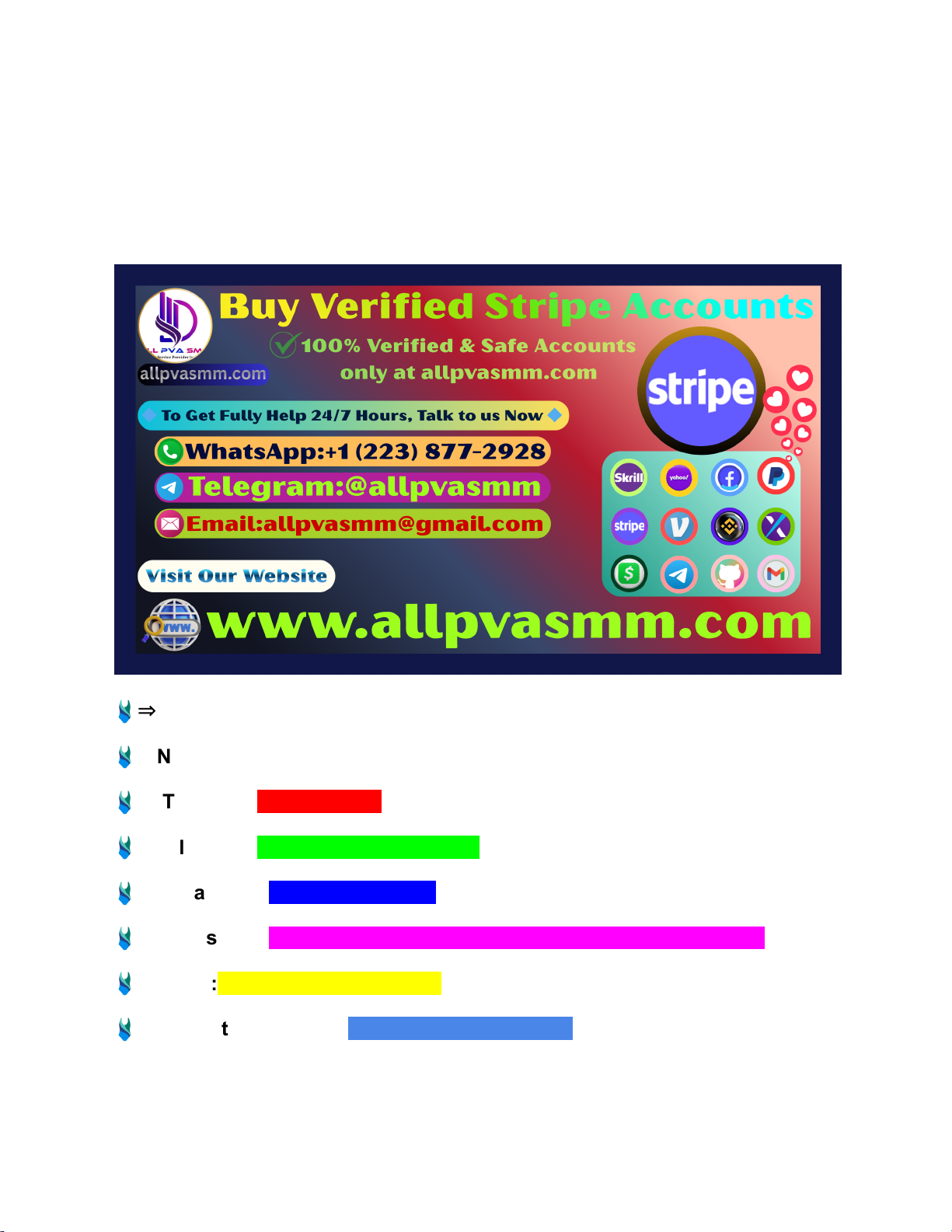 Easy Steps to Buy Verified Stripe Accounts 🩱⇒100% Verified & Safe Accounts only at allpvasmm.com 🩱⇒Need More Data? Contact Us Now! 🩱⇒ Telegram:@allpvasmm 🩱⇒Telegram: https://t.me/Allpvasmm 🩱⇒ WhatsApp:+1 (223) 877-2928 🩱⇒WhatsApp: https://wa.me/message/PYOW6TGNF4SHO1?src=qr 🩱⇒Email:allpvasmm@gmail.com 🩱⇒ Website Visit Now: https://allpvasmm.com/ In today's digital age, secure and efficient payment processing is crucial for businesses looking to thrive online. Stripe is one of the leading platforms that facilitate this need, offering various services that help businesses accept payments seamlessly. However, acquiring a verified Stripe account can be quite challenging, especially for new entrepreneurs or businesses in high-risk industries. This guide provides a detailed overview of the 12 easy steps to buy verified Stripe accounts safely and effectively. Understanding Verified Stripe Accounts What is a Verified Stripe Account? A verified Stripe account is one that has completed the necessary identification and verification processes required by Stripe to ensure legitimacy and compliance with financial regulations. This process involves verifying the identity of the account owner, the validity of banking information, and other critical details associated with the business. Why Buying a Verified Stripe Account? Buying a verified Stripe account can provide several advantages: 1. Immediate Access: Obtain instant access to payment processing without going through the extensive setup and verification process. 2. Circumventing Barriers: New businesses or those operating in high-risk industries may face challenges in getting their Stripe accounts approved. Purchasing a verified account can eliminate these hurdles. 3. Enhancing Credibility: A verified account builds trust with customers due to compliance with payment security standards. Step-by-Step Guide: 12 Easy Steps Step 1: Determine Your Requirements Before starting your search for a verified Stripe account, it’s essential to clarify your business needs. Consider the following factors: ● Type of Business: Define whether you are in a high-risk industry, as this can affect the type of account you require. ● Transaction Volume: Estimate your projected transaction volume to better understand the type of account features you might need. ● Payment Methods: Identify the types of payments you wish to accept (credit cards, digital wallets, etc.). Step 2: Research Reputable Marketplaces 🩱⇒100% Verified & Safe Accounts only at allpvasmm.com 🩱⇒Need More Data? Contact Us Now! 🩱⇒ Telegram:@allpvasmm 🩱⇒Telegram: https://t.me/Allpvasmm 🩱⇒ WhatsApp:+1 (223) 877-2928 🩱⇒WhatsApp: https://wa.me/message/PYOW6TGNF4SHO1?src=qr 🩱⇒Email:allpvasmm@gmail.com 🩱⇒ Website Visit Now: https://allpvasmm.com/ A variety of marketplaces offer verified Stripe accounts. Conduct thorough research to identify trustworthy sources. Here are some common options: 1. Freelance Platforms (Fiverr, Upwork): Some sellers on these platforms offer verified Stripe accounts. ○ Pros: User reviews available; diverse seller options. ○ Cons: Quality can vary; buyer protection may be limited. 2. Digital Marketplaces (Legit, Digital Point): These sites focus on digital services and account sales. ○ Pros: Specialized sellers; community feedback mechanisms. ○ Cons: Unregulated markets; risk of scams. 3. Social Media Groups (Reddit, Facebook): Various groups on these platforms facilitate buying and selling of accounts. ○ Pros: Real-time discussions; community support. ○ Cons: Lack of accountability; higher fraud risk. 4. Specialized Websites: Certain websites focus specifically on selling verified accounts. ○ Pros: Targeted options; potential for bulk discounts. ○ Cons: Unverified claims; possible violation of Stripe's terms. Step 3: Evaluate Sellers Once you've identified potential marketplaces, focus on individual sellers. Effective evaluation is crucial to ensure your security: 1. Check Reviews and Ratings: Look for feedback from past buyers to gauge the seller's reliability. 2. Assess Seller Experience: Prefer sellers with a more extended history, as they are likely to be more trustworthy. 3. Engage with Past Buyers: If possible, contact buyers previously dealt with the seller to seek firsthand insights. Step 4: Request Account Documentation Before proceeding with a purchase, obtaining documentation is vital for confirming the legitimacy of the account: 1. Proof of Verification: Request documents showing the account has been verified by Stripe, including KYC certificates. 2. Banking Information: Acquire copies of banking details or statements linked to the Stripe account. 3. Transaction History: If available, ask for past transaction records to check for unusual activities. Step 5: Understand the Seller's Refund Policy A reliable seller will have a transparent refund policy in case the purchased account turns out to be non-functional or flagged. Understand their terms to safeguard your investment: 1. Refund Conditions: Know under what circumstances a refund can be issued. 2. Time Limits: Be aware of the timeframe within which you can request a refund if necessary. 3. Replacement Policy: Check if the seller offers a replacement in case of issues with the account. Step 6: Choose a Secure Payment Method Select a payment method that offers buyer protection to safeguard your purchase: 1. Escrow Services: Consider using an escrow service to hold the funds until both parties fulfill their obligations. 2. Payment Platforms with Dispute Resolution: Utilize services like PayPal that provide buyer protection. 3. Credit Cards: They often offer fraud protection, which can come in handy if the transaction does not go as planned. Step 7: Finalize the Purchase Agreement When you’re confident in your selection, finalize the purchase agreement: 1. Agree on Terms: Ensure both parties understand the pricing, deliver