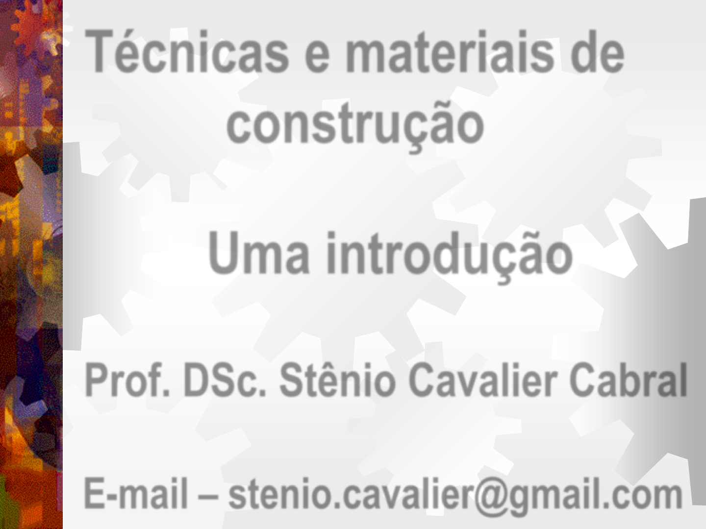 * Técnicas e materiais de construção Uma introdução Prof. DSc. Stênio Cavalier Cabral E-mail – stenio.cavalier@gmail.com * Introdução PERSPECTIVA HISTÓRICA Historicamente, o desenvolvimento e o avanço das sociedades têm estado intimamente ligados às habilidades dos seus membros em produzir e manipular materiais para satisfazer as suas necessidades. De fato, as civilizações antigas foram designadas pelo nível de seus desenvolvimentos em relação aos materiais (isto é, Idade da Pedra, Idade do Bronze). * * Os primeiros seres humanos tiveram acesso a apenas um número limitado de materiais, aqueles que ocorrem naturalmente: pedra, madeira, argila, peles, e assim por diante. Com o tempo eles descobriram técnicas para a produção de materiais que tinham propriedades superiores às dos produtos naturais; estes novos materiais incluíam a cerâmica e vários metais. Além disso, foi descoberto que as propriedades de um material poderiam ser alteradas através de tratamentos térmicos e pela adição de outras substâncias. Naquele ponto, a utilização de materiais era totalmente um processo de seleção, isto é, decidia-se, a partir de um conjunto relativamente limitado de materiais disponíveis, aquele que era o mais adequado para uma dada aplicação em virtude das suas características. * Desta forma, dezenas de milhares de materiais diferentes foram desenvolvidos com características relativamente específicas que atendem as necessidades de nossa moderna e complexa sociedade; estes incluem os metais, plásticos, vidros e fibras. O desenvolvimento de muitas tecnologias que tornam nossa existência tão confortável tem estado intimamente associado com a acessibilidade a materiais adequados. Um avanço na compreensão de um tipo de material é freqüentemente o precursor da progressão escalonada de uma tecnologia. Por exemplo, os automóveis não teriam sido possíveis sem a disponibilidade de aço a baixo custo ou de algum outro substituto comparável. Em nossos tempos, dispositivos eletrônicos sofisticados dependem de componentes que são feitos a partir dos chamados materiais semicondutores. * A disciplina envolve a investigação das relações que existem entre as estruturas e as propriedades dos materiais. A engenharia de materiais consiste, com base nestas correlações estrutura-propriedade, no projeto ou engenharia da estrutura de um material para produzir um conjunto predeterminado de propriedades. Técnicas e materiais de construção. * "Estrutura" é, a esta altura, um termo nebuloso que merece alguma explicação. Sucintamente, a estrutura de um material está geralmente relacionada ao arranjo de seus componentes internos. A estrutura subatômica envolve elétrons no interior dos átomos individuais e as interações com seus núcleos. No nível atômico, a estrutura engloba a organização dos átomos ou moléculas em relação uns aos outros. O próximo universo estrutural de maior dimensão, que contém grandes grupos de átomos normalmente conglomerados, é chamado de "microscópico", significando aquele que está sujeito a observação direta usando algum tipo de microscópio. Finalmente, os elementos estruturais que podem ser vistos a olho nu são chamados de "macroscópicos". * A noção de "propriedade" merece elaboração. Enquanto em uso, todos os materiais estão expostos a estímulos externos que provocam algum tipo de resposta. Por exemplo, uma amostra sujeita a forças irá experimentar uma deformação; ou uma superfície metálica polida irá refletir a luz. Propriedade é uma peculiaridade do material em termos do tipo e da intensidade da resposta a um estímulo específico que lhe é imposto. Geralmente, as definições das propriedades são feitas de maneira independente da forma e do tamanho do material. * Virtualmente, todas as propriedades importantes dos materiais sólidos podem ser agrupadas em seis categorias diferentes: mecânica, elétrica, térmica, magnética, ótica e deteriorativa. Para cada uma existe um tipo característico de estímulo capaz de provocar diferentes respostas. * As propriedades mecânicas relacionam deformação com uma carga ou força aplicada; são exemplos o módulo de elasticidade e a resistência. Para as propriedades elétricas, como a condutividade elétrica e a constante dielétrica, o estímulo é um campo elétrico. O comportamento térmico de sólidos pode ser representado em termos da capacidade calorífica e da condutividade térmica. * As propriedades magnéticas demonstram a resposta de um material à aplicação de um campo magnético. Para as propriedades óticas, o estímulo é a radiação eletromagnética ou a luminosa; o índice de refração e a refletividade são propriedades óticas representativas. Finalmente, as características deteriorativas indicam a reatividade química dos materiais. * Além da estrutura e propriedades, dois outros componentes importantes estão envolvidos na ciência e na engenharia dos materiais, quais sejam, "processamento" e "desempenho". Com respeito às relações destes quatro componentes, a estrutura de um material irá depender da maneira como ele é processado. Além disso, o desempenho de um material será uma função das suas propriedades. Assim, a inter-relação entre processamento, estrutura, propriedades e desempenho é linear, conforme mostrado na ilustração esquemática da Fig. 1.1. * Apresentamos agora um exemplo destes princípios de processamento-estrutura-propriedades-desempenho com o auxílio da Fig. 1.2, uma fotografia que apresenta três amostras com o formato de discos delgados, colocadas sobre algum material impresso. Fica óbvio que as propriedades óticas (isto é, a transmitância da luz) de cada um dos três materiais são diferentes; o material à esquerda é transparente (isto é, virtualmente a totalidade da luz refletida passa através dele), enquanto os discos no centro e à direita são, respectivamente, translúcido e 
