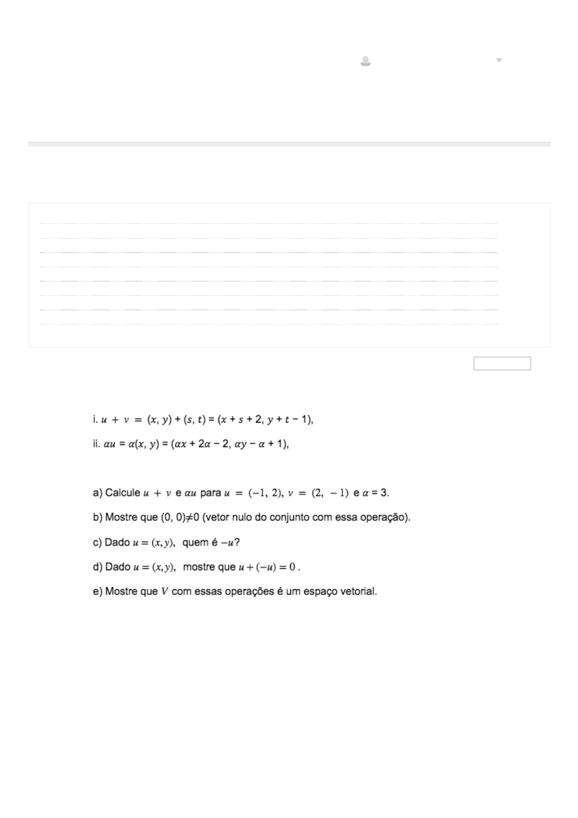 e) Para verificar se V é um espaço vetorial, vamos analisar cada uma das 8