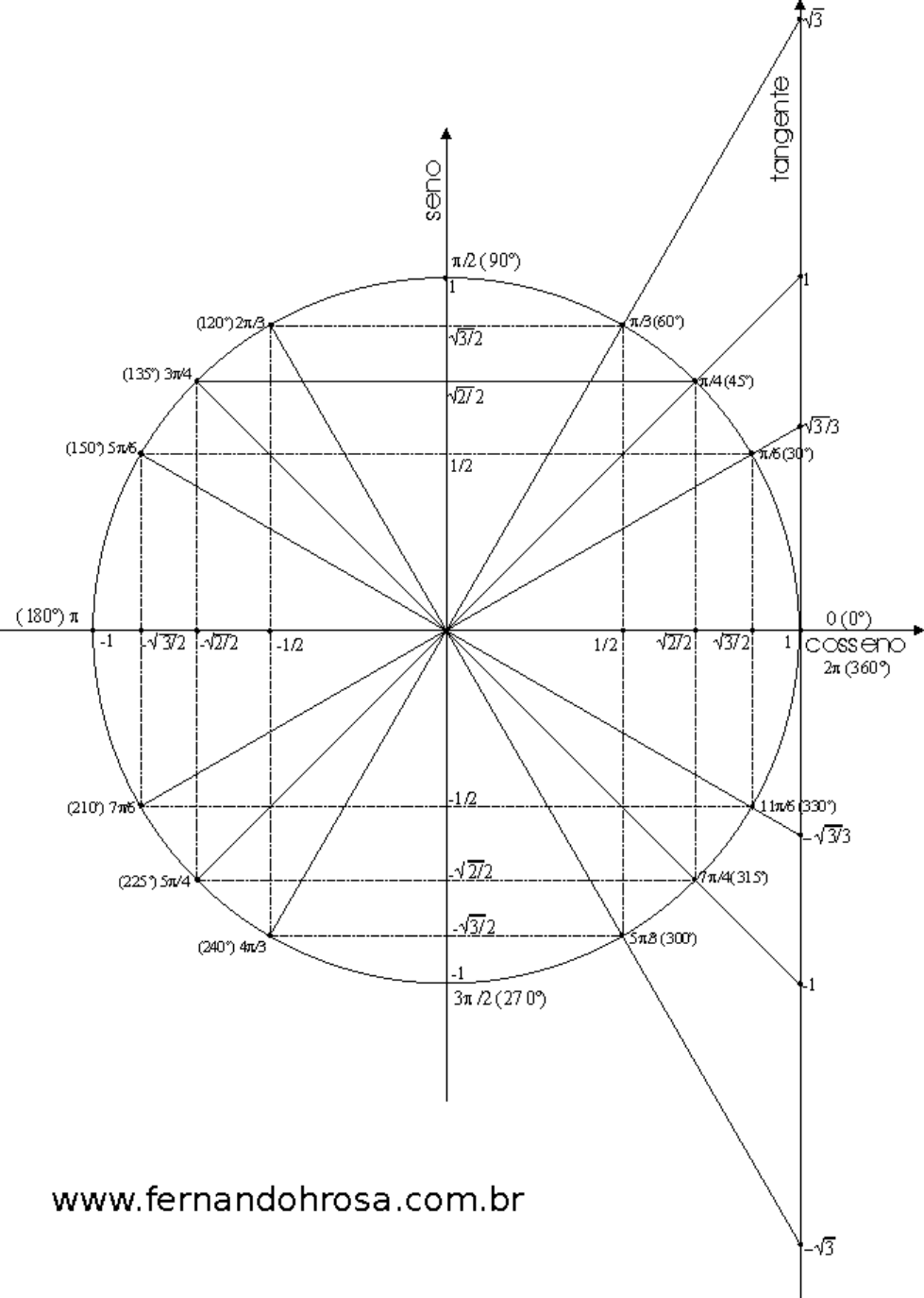 Exercício 2: Esboce a circunferência trigonométrica, indicando os principais arcos em radiano e seus correspondentes valores de seno e cosseno. Qua...
