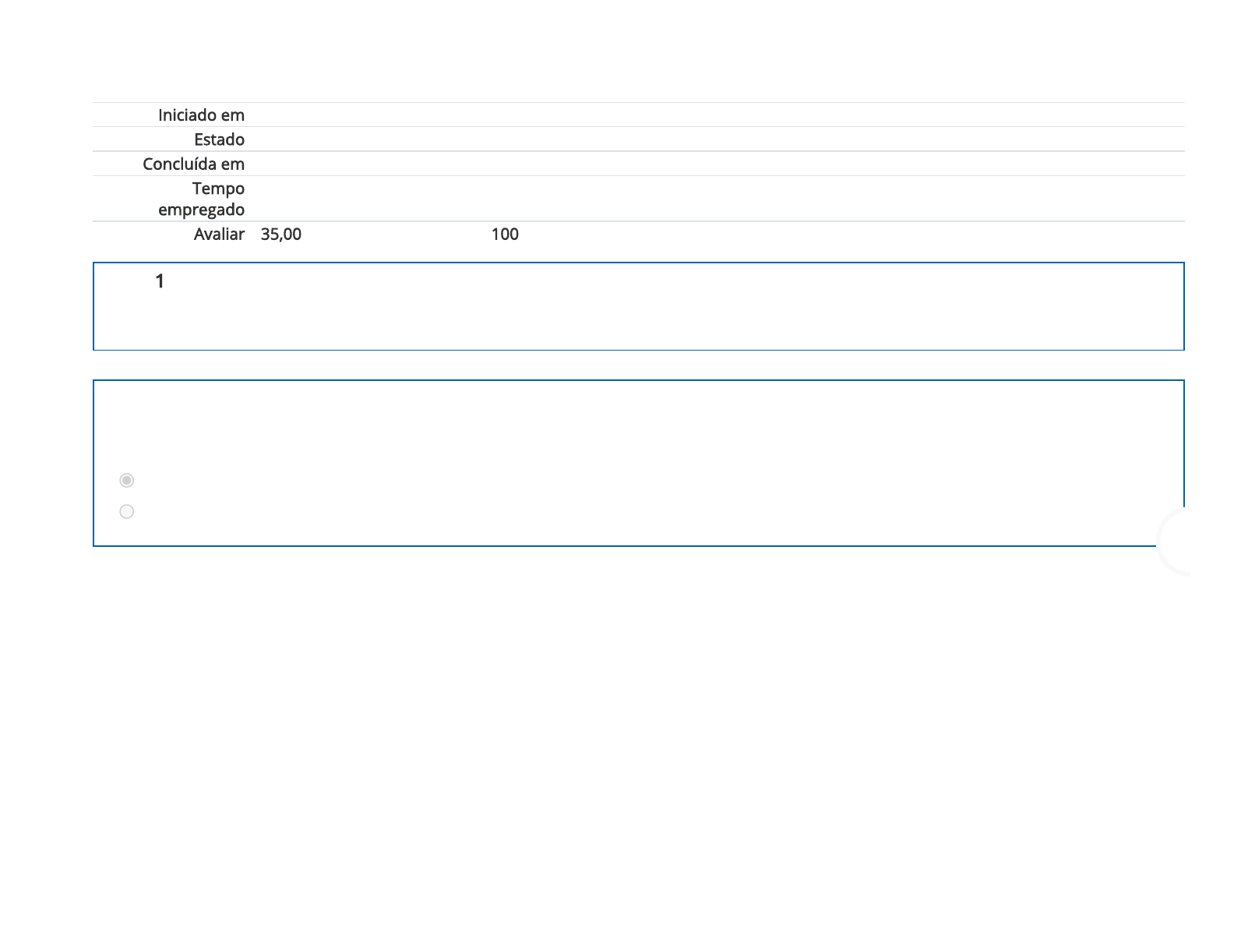 6/10/2021 Segunda Avaliação https://moodle.ead.ufvjm.edu.br/mod/quiz/review.php?attempt=115448&cmid=256656 1/16 Iniciado em quinta, 10 jun 2021, 19:45 Estado Finalizada Concluída em quinta, 10 jun 2021, 19:48 Tempo empregado 2 minutos 58 segundos Avaliar 35,00 de um máximo de 35,00(100%) Questão 1 Correto Atingiu 2,00 de 2,00 Amortização (A) é constante ao longo de todo o plano de pagamentos no SAC. Escolha uma opção: Verdadeiro Falso A resposta correta é 'Verdadeiro'. 6/10/2021 Segunda Avaliação https://moodle.ead.ufvjm.edu.br/mod/quiz/review.php?attempt=115448&cmid=256656 2/16 Questão 2 Correto Atingiu 3,00 de 3,00 Juro (J) são calculados sobre os saldos devedores dos períodos imediatamente anteriores no SAC. Escolha uma opção: Verdadeiro Falso A resposta correta é 'Verdadeiro'. 6/10/2021 Segunda Avaliação https://moodle.ead.ufvjm.edu.br/mod/quiz/review.php?attempt=115448&cmid=256656 3/16 Questão 3 Correto Atingiu 3,00 de 3,00 O grá�co abaixo representa qual tipo de sistema de amortização? Escolha uma opção: a. SAC b. PRICE c. SPC d. MIX Sua resposta está correta. A resposta correta é: SAC. 6/10/2021 Segunda Avaliação https://moodle.ead.ufvjm.edu.br/mod/quiz/review.php?attempt=115448&cmid=256656 4/16 Questão 4 Correto Atingiu 3,00 de 3,00 Considere um empréstimo de $ 1.000,00 a ser pago por meio do modelo SAC em quatro prestações anuais sucessivas, imediatas e postecipadas para o qual se convencionou uma taxa de juros de 10% aa. Qual é o valor da prestação número 2? Escolha uma opção: a. $325,00 b. $300,00 c. $375,00 d. $400,00 e. $350,00 Sua resposta está correta. A resposta correta é: $325,00. 6/10/2021 Segunda Avaliação https://moodle.ead.ufvjm.edu.br/mod/quiz/review.php?attempt=115448&cmid=256656 5/16 Questão 5 Correto Atingiu 3,00 de 3,00 Considere um empréstimo de $ 1.000,00 a ser pago por meio do modelo SAC em quatro prestações anuais sucessivas, imediatas e postecipadas para o qual se convencionou uma taxa de juros de 10% aa. Qual é o saldo devedor após pagar a terceira parcela? Escolha uma opção: a. $750,00 b. $500,00 c. $50,00 d. $250,00 e. $1000,00 Sua resposta está correta. A resposta correta é: $250,00. 6/10/2021 Segunda Avaliação https://moodle.ead.ufvjm.edu.br/mod/quiz/review.php?attempt=115448&cmid=256656 6/16 Questão 6 Correto Atingiu 3,00 de 3,00 Você contraiu um empréstimo de $ 4.000,00 para ser pago em quatro prestações mensais imediatas e postecipadas por meio do SAC. Sabendo que a taxa nominal de juros é de 12% aa, determine o valor da terceira prestação. Dica: taxa mensal efetiva im = 1% am. Escolha uma opção: a. $1040,00 b. $1000,00 c. $1010,00 d. $1030,00 e. $1020,00 Sua resposta está correta. A resposta correta é: $1020,00. 6/10/2021 Segunda Avaliação https://moodle.ead.ufvjm.edu.br/mod/quiz/review.php?attempt=115448&cmid=256656 7/16 Questão 7 Correto Atingiu 3,00 de 3,00 Um índice de preços é um número índice não estruturado e construído para medir as mudanças que ocorrem nos preços de bens e de serviços em um dado período de tempo. Escolha uma opção: Verdadeiro Falso A resposta correta é 'Falso'. 6/10/2021 Segunda Avaliação https://moodle.ead.ufvjm.edu.br/mod/quiz/review.php?attempt=115448&cmid=256656 8/16 Questão 8 Correto Atingiu 3,00 de 3,00 Considerando a tabela de Índice de Preções abaixo, qual é a taxa de in�ação entre os períodos de junho de X0 e fevereiro de X2? Escolha uma opção: a. 45,14% b. 25,14% 6/10/2021 Segunda Avaliação https://moodle.ead.ufvjm.edu.br/mod/quiz/review.php?attempt=115448&cmid=256656 9/16 c. 44,58% d. 35,14% e. 34,58% Sua resposta está correta. A resposta correta é: 44,58%. 6/10/2021 Segunda Avaliação https://moodle.ead.ufvjm.edu.br/mod/quiz/review.php?attempt=115448&cmid=256656 10/16 Questão 9 Correto Atingiu 3,00 de 3,00 Suponha um empréstimo tomado em maio de X0 no valor de $ 5.000,00 a ser pago 60 dias depois (julho). Qual o valor corrigido da dívida? Escolha uma opção: a. $5.139,50 b. $5.129,50 6/10/2021 Segunda Avaliação https://moodle.ead.ufvjm.edu.br/mod/quiz/review.php?attempt=115448&cmid=256656 11/16 c. $5.159,50 d. $5.119,50 e. $5.149,50 Sua resposta está correta. A resposta correta é: $5.119,50. 6/10/2021 Segunda Avaliação https://moodle.ead.ufvjm.edu.br/mod/quiz/review.php?attempt=115448&cmid=256656 12/16 Questão 10 Correto Atingiu 3,00 de 3,00 Calcule o índice e a taxa de correção monetária entre os meses de maio e junho de X1. Escolha uma opção: a. i = 0,0126 am ou i = 2,26% am b. i = 0,0126 am ou i = 1,36% am 6/10/2021 Segunda Avaliação https://moodle.ead.ufvjm.edu.br/mod/quiz/review.php?attempt=115448&cmid=256656 13/16 c. i = 0,0136 am ou i = 1,26% am d. i = 0,0226 am ou i = 1,26% am e. i = 0,0126 am ou i = 1,26% am Sua resposta está correta. A resposta correta é: i = 0,0126 am ou i = 1,26% am. 6/10/2021 Segunda Avaliação https://moodle.ead.ufvjm.edu.br/mod/quiz/review.php?attempt=115448&cmid=256656 14/16 Questão 11 Correto Atingiu 3,00 de 3,00 Corrija monetariamente $ 1.500,00 de maio de X1 para março de X2. Escolha uma opção: a. $1.920,39 b. $1.950,39 6/10/2021 Segunda Avaliação https://moodle.ead.ufvjm.edu.br/mod/quiz/review.php?attempt=115448&cmid=256656 15/16 Questão 12 Correto Atingiu 3,00 de 3,00 c. $1.910,39 d. $1.930,39 e. $1.940,39 Sua resposta está correta. A resposta correta é: $1.910,39. Correção monetária pré-�xada: considere um empréstimo concedido a uma taxa real de juros de 12% aa para ser pago em 12 parcelas iguais postecipadas. Com uma in�ação média de 35% aa, a taxa de juros do empréstimo será de quanto? Escolha uma opção: a. 49,2% aa b. 50,2% aa c. 52,2% aa d. 51,2% aa e. 48,2% aa Sua resposta está correta. A resposta correta é: 51,2% aa. 6/10/2021 Segunda Avaliação https://moodle.ead.ufvjm.edu.br/mod/quiz/review.php?attempt=115448&cmid=256656 16/16 https://moodle.ead.ufvjm.edu.br/mod/chat/view.php?id=253829&forceview=1 https://moodl