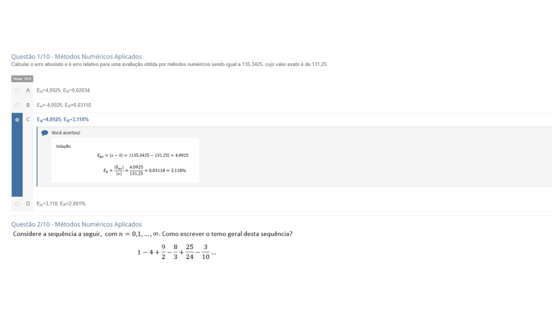 ATIVIDADE PRÁTICA MÉTODOS NUMÉRICOS APLICADOS - GABARITO 100