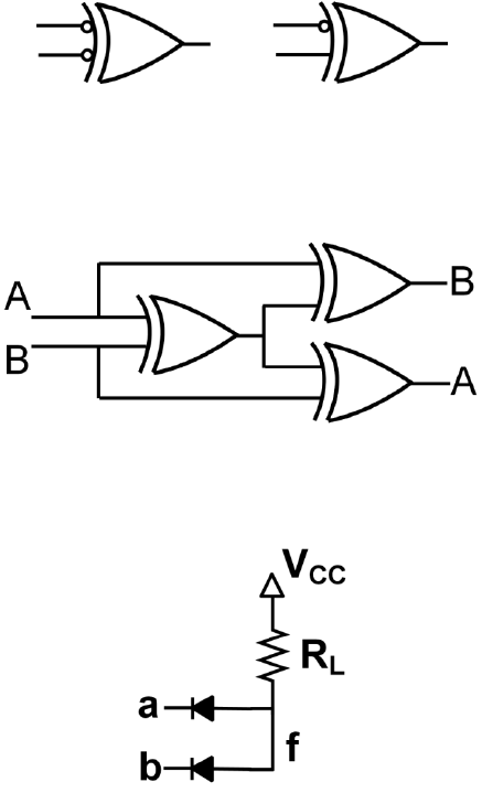 Fundamentos de Electrónica 2014-2015 Ejercicios Tema 5.2 1. Implemente las siguientes funciones lógicas: 𝑓 = 𝑎 + �̅�𝑐 𝑔 = �̅�(𝑐̅ + 𝑏𝑎) + 𝑎 a. Con las puertas lógicas que desee b. Solo con puertas NAND c. Solo con puertas NOR 2. Implemente la siguiente función lógica: 𝑓 = 𝑏⨁𝑐̅𝑎 + 𝑑⨁𝑐 a. con puertas lógicas AND, OR y NOT b. con una de las puertas universales 3. ¿Qué puerta lógica resulta si sobre una puerta XOR se niegan sus dos entradas? ¿y únicamente una entrada?: 4. Comprobar que, basándonos en tres puertas XOR, se puede diseñar un intercambiador de señales lógicas: 5. Deducir la tabla de verdad para el siguiente circuito basado en lógica de diodos. ¿Qué puerta lógica es? Fundamentos de Electrónica 2014-2015 6. Deducir la tabla de verdad para el siguiente circuito basado en lógica de transistores. ¿Qué puerta lógica es? 7. Deducir la tabla de verdad para los siguientes circuitos basados en tecnología NMOS. ¿Qué funciones lógicas implementan? Fundamentos de Electrónica 2014-2015 8. Deducir la tabla de verdad para los siguientes circuitos basados en tecnología CMOS. 9. Modificar los siguientes circuitos para implementarlos en la otra tecnología (NMOS/CMOS). Fundamentos de Electrónica 2014-2015 10. Simplificar por Karnaugh las funciones lógicas siguientes de tres variables 11. Simplificar por Karnaugh las funciones lógicas siguientes de cuatro variables 12. Simplificar por Karnaugh las funciones lógicas siguientes de cuatro variables con indiferencias 13. Dada la función lógica: se pide: a) Implemente la función con puertas lógicas b) Obtenga las formas canónicas de la función, indicándolas en forma abreviada c) Obtener una expresión lógica simplificada de la función en forma de suma de productos d) Obtener una expresión lógica simplificada de la función en forma de producto de sumas e) Realice la función sólo con puertas NAND de 2 entradas Fundamentos de Electrónica 2014-2015 14. Dada la función lógica f(a, b, c, d) = Σm(0, 1, 2, 3, 7, 8, 9, 10, 11, 12) se pide: a) Obtenga una expresión simplificada de la función en forma de suma de productos b) Obtenga una expresión simplificada de la función en forma de producto de sumas c) Realizar el circuito utilizando sólo puertas NAND de 3 entradas d) Realizar el circuito utilizando sólo puertas NOR de 3 entradas 15. El código progresivo de Johnson viene dado por la tabla que se muestra a continuación. X3 X2 X1 X0 0 0 0 0 0 1 0 0 0 1 2 0 0 1 1 3 0 1 1 1 4 1 1 1 1 5 1 1 1 0 6 1 1 0 0 7 1 0 0 0 Sobre este código, se pide: a) Realizar el circuito que tome como entrada 4 bits y determine si estos forman un código válido o no, utilizando sólo puertas NOR de 3 entradas b) Realizar un circuito que convierta un valor en código Johnson y obtenga su equivalente en código BCD natural (Nota: considere que en la entrada del circuito siempre hay un valor válido en código Johnson, ya que, en caso contrario se detectaría con el circuito realizado en el apartado anterior), con puertas lógicas AND, OR y NOT 16. Diseñe un circuito lógico de tres entradas A, B y C cuya salida sea alta sólo cuando la mayoría de las entradas esté a nivel lógico alto. 17. Un número binario de cuatro bits se representa como DCBA, donde D, C, B y A representan los bits individuales con A como LSB. Diseñe un circuito lógico que produzca una salida alta siempre que el número binario introducido sea mayor que 0010 y menor que 1000. Fundamentos de Electrónica 2014-2015 18. Se desea controlar dos motores M1 y M2 por medio de los contactos de tres interruptores A, B, y C, de forma que se cumpla las siguientes condiciones: a) Si A está pulsado y los otros dos no, se activa M1 b) Si C está pulsado y los otros dos no, se activa M2 c) Si los tres interruptores están cerrados, se activan M1 y M2. En las demás condiciones no mencionadas, los dos motores están parados. Diseñe un circuito que controle M1 y M2. 19. Se desea diseñar el circuito de control de una planta de montaje encargado de la señal de aviso de evacuación. Para ello se dispone de tres sensores: sensor de incendio, sensor de humedad y sensor de presión Los materiales con los que se trabaja en dicha planta son tales que son inflamables y sólo toleran unos niveles mínimos de presión y humedad de forma conjunta (estos niveles se encuentran programados en los sensores correspondientes). El circuito a diseñar debe ser tal que active una señal de alarma cuando exista riesgo para los operarios de la planta. 20. Se desea diseñar un circuito de control de una máquina trituradora. En esta máquina existen dos sensores de llenado (S1 y S2), que determinan el nivel de los elementos a triturar como se muestran en la figura: Esquema de la máquina trituradora. Uno de los motores debe estar en marcha siempre que el sensor S2 esté activo. Ambos motores tendrán que estar en marcha cuando ambos sensores estén activos.