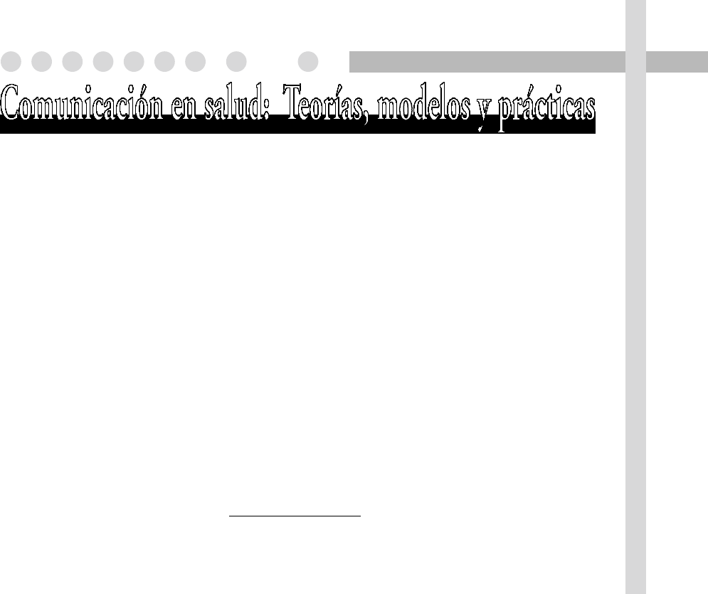 18 Comprender qué es lo que motiva a las personas a adoptar o no conductas saludables ha constituido un tema de investigación en muchas disciplinas desde los años 60 (Bandura, 1986, 1977; Davidson y Davidson, 1980). Entre las teorías usadas frecuentemente para explicar este proceso se encuentran aquellas relacionadas con las teorías de la persuasión y modelos de cambio conductual. Muchas de las teorías sobre comportamiento, comunicación y educación en salud, medios de comunicación y mercadeo social, y de los modelos y prácticas de programas de comunicación en salud, no se originaron en LAC. En consecuencia, deben adaptarse a las realidades de la Región: a los diferentes medios de comunicación masiva disponibles, a los diversos usos de esos medios por parte de la población y al diferente modo de funcionamiento de los servicios de información y comunitarios. Al mismo tiempo, las teorías sobre recopilación de información y cambio de comportamiento son más universales y proporcionan una buena introducción a las comunicaciones en salud. El arte y la ciencia de la persuasión fue estudiada primero por Aristóteles (384-322 AC), quien, en 350 a.C., comenzó a ofrecer clases de retórica en la Academia fundada por Platón. Aristóteles observó el principio de la democracia y el gobierno constitucional durante las deliberaciones públicas y discursos de individuos en las cortes, ya fuera procesando un crimen o hablando en defensa propia en ausencia de un profesional en leyes, y en otras ocasiones tales como una fiesta pública o un funeral (Kennedy, 1991). Basándose en estas observaciones, Aristóteles escribió El arte de la retórica, en la que definió la función de la retórica como “la detección de aspectos persuasivos en un tema concreto.” (Lawson- Tancredi, 1991). Lo que Aristóteles presenta es un manual de persuasión. Sugiere cuatro variables importantes para desarrollar discusiones persuasivas: ethos, que se deriva de la credibilidad del orador; pathos, o apelaciones a la emoción; logos, o apelaciones a la lógica de la audiencia, y enthymemes, en donde Aristóteles sugiere que la primera premisa de un argumento es de alguna manera obvia para la audiencia y, por lo tanto, no se expone explícitamente. Aristóteles también presenta información sobre psicología y sugiere la importancia de adaptar un discurso a la audiencia (Kennedy, 1980). Teorías del comportamientoTeorías del comportamientoTeorías del comportamientoTeorías del comportamiento Para el trabajo de promoción de la salud, es fundamental la comprensión de los comportamientos y de las teorías5 que los explican y que proponen maneras de cambiarlos. Desde una perspectiva ecológica, es decir, integral, los comportamientos tienen dos características fundamentales: son influenciables en múltiples niveles (por factores intrapersonales o individuales, interpersonales, institucionales u organizativos, comunitarios y de políticas públicas), y son de causalidad recíproca con su entorno. 19 • Intrapersonales—Características individuales que influyen en el comportamiento, como los conocimientos, las actitudes, las creencias, los rasgos de personalidad. Por ejemplo, una adolescente podría posponer el examen del papanicolao por vergüenza frente al medico hombre. • Interpersonales—Procesos interpersonales y grupos primarios como son la familia, los amigos, los iguales; proporcionan identidad social, apoyo y definición de roles. Un adolescentes, por ejemplo, podría no iniciar comportamientos de riesgos por presión de su grupo que prefiere deportes. • Institucionales—Normas, reglamentos, políticas en estructuras formales, que pueden limitar o fomentar los comportamientos recomendados. La norma de no fumar en las escuelas puede influenciar en que los adolescentes no empiezan o posponen el inicio del habito de fumar. • Comunitarios—Redes y normas sociales que existen como algo formal o informal entre individuos, grupos y organizaciones. La presión comunitario especialmente de los padres en el uso del conductor designado por los jóvenes durante las fiestas reduce dramáticamente los accidentes de transito relacionado con el alcohol. • Política Publica—Políticas locales, estatales, federales y leyes que reglamentan o respaldan acciones saludables, y practicas para la prevención, detección temprana, control y tratamiento de enfermedades. La ley de no permitir publicidad tabacalera en la televisión y radio o impuestos en las cigarrillos influencian el inicio del habito de fumar en jóvenes y adolescentes. Desde esta perspectiva, son claras las ventajas de intervenciones en múltiples niveles, combinando componentes ambientales y de comportamiento. Por ejemplo, los programas dirigidos a reducir las conductas arriesgadas en adolescentes tienen más probabilidades de éxito si las comunidades organizan eventos deportivos para jóvenes, promueven el liderazgo juvenil en programas comunitarios e implementan leyes que prohiban la venta de tabaco a menores. De ello se desprende, también, la importancia de conocer las teorías que explican las conductas de riesgo y que pueden ayudar a diseñar intervenciones que las modifiquen a favor de conductas saludables. Las teorías de la persuasión y modelos6, también llamadas teorías de la conducta, presentan un marco para la comprensión de la conducta humana y sus determinantes, y han sido la base de estudios por parte de investigadores de la salud lo mismo que de otras disciplinas (Donohew y cols., 1991).7 La utilidad de las teorías es que pueden ayudarnos a comprender la índole de los comportamientos de salud a los que se quiere llegar. Pueden explicar la dinámica del comportamiento, los procesos para cambiarlo y los efectos de las influencias externas en él. Adicionalmente pueden ayudarnos a identificar las metas más adecuadas para los programas, los métodos para lograr el cambio y los resultados para la evaluación. Las te