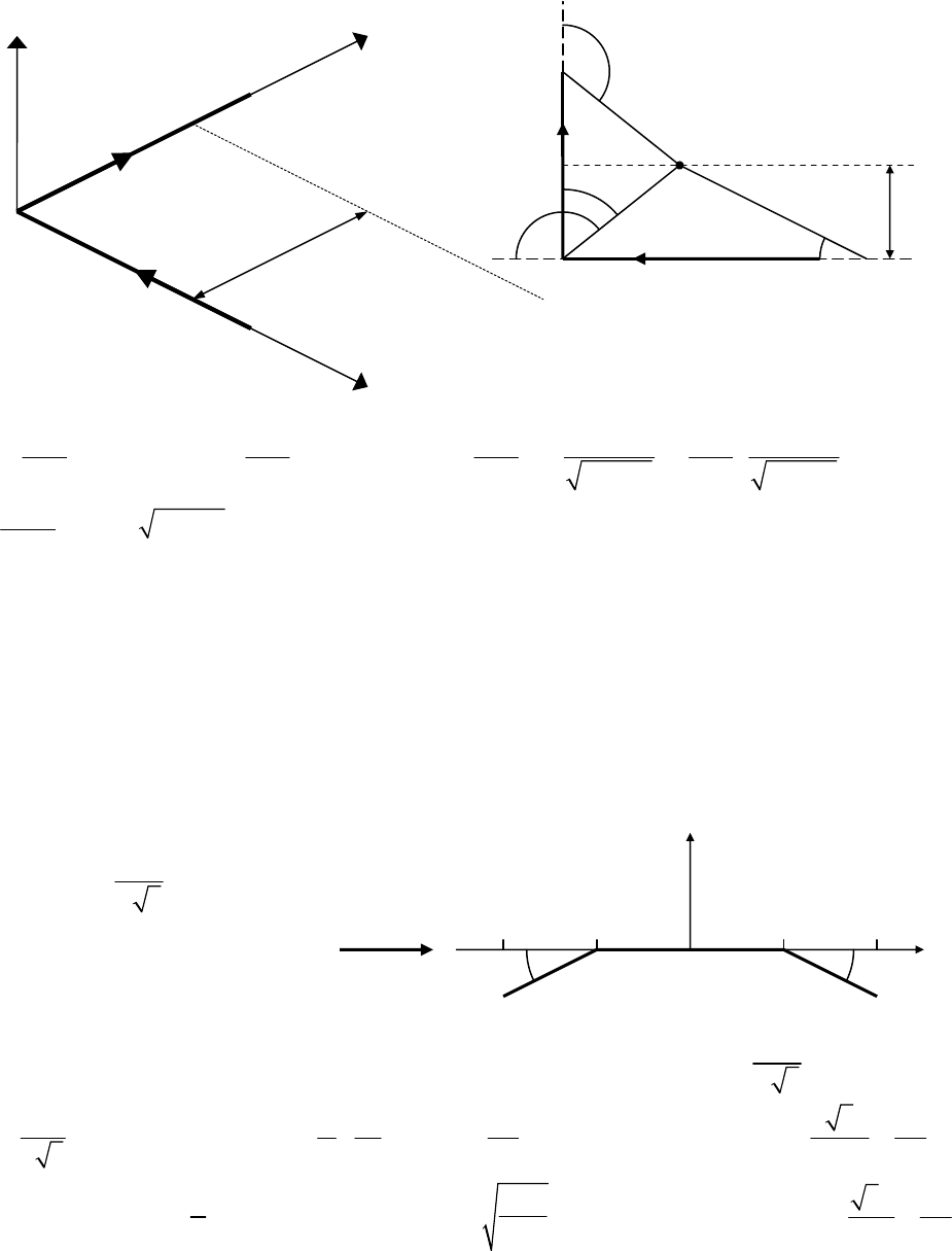 AERODINÁMICA I aa01 1 EJERCICIO En la figura se ha representado un torbellino tridimensional de intensidad Γ que discurre según los ejes x e y del triedro de referencia. Calcule y represente la velocidad vertical inducida por cada uno de los tramos del torbellino, AO y OB, a lo largo de la recta CD situada a una distancia a del eje x, en el plano z = 0. Solución ( ) ( )1 2 3 4cos cos cos cos4 4V a xθ θ θ θπ π Γ Γ = − + − 2 2 2 2 1 1 4 4 x a a xx a x aπ π ⎛ ⎞ ⎛ ⎞Γ Γ = + + +⎜ ⎟ ⎜ ⎟ + +⎝ ⎠ ⎝ ⎠ ( )2 24 x a x aaxπ Γ = + + + EJERCICIO Considere un perfil de ala, de cuerda c = 2 m, formado por tres tramos rectos, como se indica en la figura, volando a través del aire en calma con velocidad UB∞ B y ángulo de ataque nulo. Dentro de la validez de la teoría potencial linealizada de perfiles en régimen incompresible, calcule el valor de la velocidad de vuelo para la que la sustentación generada por el perfil sea l = 540 N·mP−1 P. Determine el ángulo que forma la línea de sustentación nula del perfil con la cuerda del mismo (dibuje, sobre el esquema de la línea de curvatura, la línea de sustentación nula). Suponga 45 3 δ π = grados y ρ = 1,2 kg·mP−3 P. Solución Como z(x) = z(−x) es AB0 B = AB2B = 0. Por tanto, teniendo en cuenta que 45 3 δ π = grados, o bien 1 4 3 δ = radianes, resulta /3 1 0 0 2 /3 2 d 2 2 3 1cos d cos d cos d d 2 zA x π π π π δ δθ θ θ θ θ θ π π π π ⎛ ⎞ = − = − = =⎜ ⎟ ⎝ ⎠ ∫ ∫ ∫ , de modo que 1 1 2l c Aπ= = , de donde se obtiene 2 l lU ccρ∞ = = 30 m·sP−1 P. Obviamente 3 1 4sn δα π π = = . θB1 B θB2 B θB3 B θB4 B a (x,a) y z C B a D O A x δ δ 1/4 1/2 −1/2 −1/4 UB∞ B x/c z/c AERODINÁMICA I aa01 2 EJERCICIO Considere un ala de alargamiento Λ=6 de forma en planta rectangular, y envergadura b = 6 m, cuyos perfiles tienen una línea de curvatura formada por tres tramos rectos, el tramo central paralelo al eje x, y los extremos formando un ángulo δ(y) << 1 con dicho eje, como se indica en la figura. Dentro de la validez de la teoría potencial linealizada de alas en régimen incompresible, calcule el valor de la distribución de δ(y) para que el ala tenga resistencia inducida mínima cuando el coeficiente de sustentación del ala vale cBL B = 1/2. Solución En el problema del perfil se sabe que 3( ) ( )sn y yα δπ = . En el ala, de 12L c AπΛ= se obtiene 1 1 6 A π = , de modo que, de la ecuación de Prandtl, resulta 2 1 1( ) sin 12 α θ θ π π = + , y la torsión vale por tanto ( )2 1( ) sin 1ε θ θ π = − , de manera que ( )1( ) sin 1 3 δ θ θ π = − EJERCICIO Considere la configuración fluida bidimensional esquematizada en la figura formada por dos placas planas, ambas de cuerda c, separadas entre sí una distancia c/2, volando en régimen supersónico (MB∞ B > 1) con ángulo de ataque α << 1. Dentro de la validez de la teoría potencial linealizada de perfiles en régimen supersónico calcule el valor del coeficiente de sustentación y el del coeficiente de resistencia aerodinámica, cBl B(MB∞ B) y cBdB(MB∞ B) respectivamente, correspondientes a la placa plana cuyo esqueleto está en Z = 0. Suponga MB∞ B > 2 . Solución De acuerdo con la geometría del problema, cuando 1 ≤ β ≤ 2, con 2M 1β ∞= − , las características que parten del borde de ataque de cualquiera de las placas se reflejan en la otra, mientras que para β > 2 no hay interferencia entre placas. En este último caso es cBl B = 4α/β, y cBdB = 4αP2 P/β. Cuando hay interferencias, la soluciones en la zonas 1 y 2 son inmediatas: cBp1B = 2α/β, y cBp2B = −2α/β; para resolver la zona 3 basta con saber que a esta zona llegan las características de la zona 4, y como estas características que llegan de 4 ya cumplen la condición de contorno en 3 (la misma que en 4), no hará falta considerar características reflejadas (son nulas) y el coeficiente de presión en 3 es el mismo que en 4, que a su vez es idéntico al de la zona 1, es decir cBp3B = cBp4B = cBp1B = 2α/β. Por tanto, como la característica reflejada incide en xBo B = XBo B/c = ½(−1+β), será cBl B(x) = 4α/β, en −½ ≤ x ≤ xBoB, y cBl B(x) = 0, en xBo B, ≤ x ≤ 1, de modo que, en este rango de valores de β, el coeficiente de sustentación global vale cBl B = 2α y el coeficiente de resistencia cBd B = 2αP2 P. δ δ 1/4 1/2 −1/2 −1/4 UB∞ B x/c z/c 2 3 1 4 M B∞ B c/2 c/2 −c/2 X Z AERODINÁMICA I aa01 3 EJERCICIO Un ala de forma en planta elíptica y alargamiento Λ = 16/π, está provista de una torsión antisimétrica, ε(y) = −ε(−y). Sabiendo que en cierta situación de vuelo tanto el coeficiente de sustentación como los coeficientes de momento de guiñada y de balance son no nulos, y en la hipótesis de que en esta situación el coeficiente de momento de guiñada vale cBMz B = 2P5/2Pδ P2 P, con δ << 1, determine, dentro de la validez de la teoría del ala larga de Prandtl, los valores de los coeficientes de sustentación y de balance, con la condición de que el coeficiente de resistencia inducida sea mínimo. Solución Como la torsión es antisimétrica es IB2n−1B = 0, n = 1,2,3,...., como cBMxB ≠ 0 es AB2B ≠ 0, y como el ala es de forma en planta elíptica en la adicional unitaria sólo hay término en aB1 B. Así pues, en a distribución adimensional de circulación sólo puede haber AB1 B = aB1B y términos pares: AB2 B, AB4B, .... En consecuencia, como cBMz B es conocido: cBMzB = −AB1 BAB2 B = 2P5/2 Pδ P2 P, se tiene una ligadura entre estos dos coeficientes que condiciona el valor del coeficiente de resistencia inducida, será pues: ( ) 5 4 2 2 2 1 2 22 2 22 4 2 4Di c A A A A π δ⎛ ⎞Λ = + = +⎜ ⎟ ⎝ ⎠ , para que cBDi B sea mínimo habrá que determinar el valor de AB2 B para el que dcBDi B/dAB2 B = 0, que resulta ser AB2 B = ±2δ, y por tanto 3/ 21 2A δ= ∓ , 9 / 22Lc δ= ∓ , 4Mxc δ= ± , 5 / 22Mzc δ= y finalmente 6 22Dic 