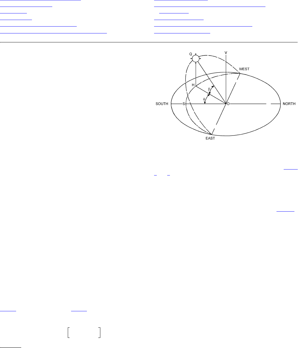 Copyright © 2003, ASHRAE CHAPTER 33 SOLAR ENERGY USE Quality and Quantity of Solar Energy .................................... 33.1 Solar Energy Collection .......................................................... 33.6 Components .......................................................................... 33.11 Water Heating ....................................................................... 33.13 Solar Heating and Cooling Systems ..................................... 33.16 Cooling by Nocturnal Radiation and Evaporation ............... 33.17 33 Cooling by Solar Energy ....................................................... 33.18 Sizing Solar Heating and Cooling Systems—Energy Requirements ..................................................................... 33.19 Installation Guidelines .......................................................... 33.23 Design, Installation, and Operation Checklist ...................... 33.25 Photovoltaic Applications ..................................................... 33.26 HE major obstacle encountered in solar heating and cooling is Teconomic—the equipment needed to collect and store solar energy is expensive. In some cases, the cost of the solar equipment is greater than the resulting savings in fuel costs. Some of the chal- lenges inherent in using solar radiation are that it is • Relatively low in intensity, rarely exceeding 950 W/m2. Consequently, when large amounts of energy are needed, large collectors must be used. • Intermittent because solar radiation intensity varies from zero at sunrise to a maximum at noon and back to zero at sunset. Some means of energy storage must be provided at night and during periods of low solar radiation. • Subject to unpredictable interruptions by clouds, rain, snow, hail, or dust. Systems should make maximum use of the solar energy input by effectively using the energy at the lowest temperatures possible. QUALITY AND QUANTITY OF SOLAR ENERGY Solar Constant Solar energy approaches the earth as electromagnetic radiation, with wavelengths ranging from 0.1 µm (x-rays) to 100 m (radio waves). The earth maintains a thermal equilibrium between the annual input of shortwave radiation (0.3 to 2.0 µm) from the sun and the outward flux of longwave radiation (3.0 to 30 µm). Only a lim- ited band need be considered in terrestrial applications, because 99% of the sun’s radiant energy has wavelengths between 0.28 and 4.96 µm. The current value of the solar constant (which is defined as the intensity of solar radiation on a surface normal to the sun’s rays, just beyond the earth’s atmosphere at the average earth-sun distance) is 1367 W/m2. The section on Determining Incident Solar Flux in Chapter 30 of the 2001 ASHRAE Handbook—Fundamentals has further information on this topic. Solar Angles The axis about which the earth rotates is tilted at an angle of 23.45° to the plane of the earth’s orbital plane and the sun’s equator. The earth’s tilted axis results in a day-by-day variation of the angle between the earth-sun line and the earth’s equatorial plane, called the solar declination δ. This angle varies with the date, as shown in Table 1 for the year 1964 and in Table 2 for 1977. For other dates, the declination may be estimated by the following equation: (1) The preparation of this chapter is assigned to TC 6.7, Solar Energy Utili- zation. δ 23.45 sin 360° 284 NH 365 -------------------Z where N = year day, with January 1 = 1. For values of N, see Tables 1 and 2. The relationship between δ and the date from year to year varies to an insignificant degree. The daily change in the declination is the primary reason for the changing seasons, with their variation in the distribution of solar radiation over the earth’s surface and the vary- ing number of hours of daylight and darkness. The earth’s rotation causes the sun’s apparent motion (Figure 1). The position of the sun can be defined in terms of its altitude β above the horizon (angle HOQ) and its azimuth φ, measured as angle HOS in the horizontal plane. At solar noon, the sun is exactly on the meridian, which contains the south-north line. Consequently, the solar azimuth φ is 0°. The noon altitude βN is given by the following equation as (2) where LAT = latitude. Because the earth’s daily rotation and its annual orbit around the sun are regular and predictable, the solar altitude and azimuth may be readily calculated for any desired time of day when the latitude, longitude, and date (declination) are specified. Apparent solar time (AST) must be used, expressed in terms of the hour angle H, where (3) Solar Time Apparent solar time (AST) generally differs from local standard time (LST) or daylight saving time (DST), and the difference can be significant, particularly when DST is in effect. Because the sun Fig. 1 Apparent Daily Path of the Sun Showing Solar Altitude (β) and Solar Azimuth (φ) Fig. 1 Apparent Daily Path of the Sun Showing Solar Altitude (β) and Solar Azimuth (φ) β N 90° LAT δHÓZ H number of hours from solar noon( ) 15°×Z number of minutes from solar noon 4 -------------------------------------------------------------------------------------Z .1 33.2 2003 ASHRAE Applications Handbook (SI) Table 1 Date, Declination, and Equation of Time for the 21st Day of Each Month of 1964, with Data (A, B, C) Used to Calculate Direct Normal Radiation Intensity at the Earth’s Surface Jan Feb Mar Apr May June July Aug Sept Oct Nov Dec Year Day 21 52 80 111 141 172 202 233 264 294 325 355 Declination δ, degrees −19.9 −10.6 0.0 +11.9 +20.3 +23.45 +20.5 +12.1 0.0 −10.7 −19.9 −23.45 Equation of time, minutes −11.2 −13.9 −7.5 +1.1 +3.3 −1.4 −6.2 −2.4 +7.5 +15.4 +13.8 +1.6 Solar noon late early late early A, W/m2 1230 1215 1186 1136 1104 1088 1085 1107 1152 1193 1221 1234 B, dimensionless 0.142 0.144 0.156 0.180 0.196 0.205 0.207 0.201 0.177 0.160 0.149 0.142 C, dimensionless 0.058 0.060 0.071 0.097 0.121 