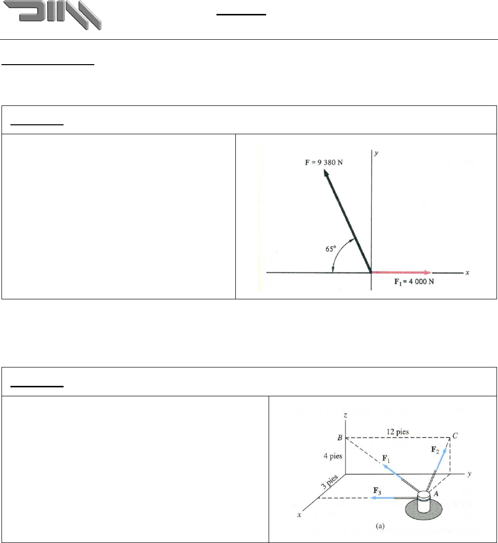ESTÁTICA Trabajo Práctico N°1 Fecha: 15 de marzo de 2018 PROBLEMAS (75%) Problema 1 (2 ptos.) Se sabe que la resultante de dos fuerzas es de 9380𝑁 orientada según se muestra en la figura. Una de las dos fuerzas tiene una magnitud conocida de 4000𝑁 y actúa a lo largo del eje 𝑥 como muestra la figura. Determinar la magnitud (𝐹2) y la orientación (θ2) respecto al eje 𝑥 de la segunda fuerza. Problema 2 (4 ptos.) Tres cuerdas están unidas al poste en 𝐴 como muestra la figura. Las fuerzas en las cuerdas son 𝐹1 = 260𝑙𝑏, 𝐹2 = 75𝑙𝑏 y 𝐹3 = 60𝑙𝑏. Determinar: a) La magnitud de la fuerza resultante 𝑅. b) Las coordenadas del punto donde la línea de acción de 𝑅 interseca el plano 𝑦-𝑧. ESTÁTICA Trabajo Práctico N°2 Fecha: 19 de marzo de 2018 PROBLEMAS (75%) Problema 1 (3 ptos.) Determinar la longitud requerida del cable 𝐴𝐶 de manera que la lámpara de 8𝑘𝑔 esté suspendida en la posición que se muestra. La longitud no deformada del resorte es 0.4𝑚 y su rigidez es de 300𝑁 𝑚⁄ . Problema 2 (3 ptos.) Si la masa del cilindro 𝐶 es de 40𝑘𝑔, determinar la masa del cilindro 𝐴 tal que el ensamble se mantenga en la posición mostrada. ESTÁTICA Trabajo Práctico N°3 Fecha: 22 de marzo de 2018 PROBLEMAS (75%) Problema 1 (3 ptos.) El collar 𝐴 pesa 5.6𝑙𝑏 y el 𝐵 pesa 8.9𝑙𝑏. El collar 𝐴 puede deslizar libremente a lo largo de una varilla vertical sin rozamiento. Éste se conecta al collar 𝐵 mediante el alambre 𝐴𝐵. Si la longitud del alambre 𝐴𝐵 es de 18𝑝𝑢𝑙𝑔, determinar la tensión en el alambre si: a) 𝑐 = 2𝑝𝑢𝑙𝑔 b) 𝑐 = 8𝑝𝑢𝑙𝑔 Problema 2 (3 ptos.) La caja 𝐴 de 68𝑙𝑏 de peso se mantiene sobre el plano inclinado mediante el alambre 𝐴𝐵 y la fuerza horizontal 𝑃 dirigida paralela al eje 𝑧. Como la caja está montada sobre cojinetes, la fuerza ejercida por el plano inclinado sobre la caja es perpendicular a éste. Determinar la magnitud 𝑃 y la tensión en el alambre 𝐴𝐵. ESTÁTICA Trabajo Práctico N°4 Fecha: 26 de marzo de 2018 PROBLEMAS (75%) Problema 1 (3 ptos.) Sobre la ménsula 𝐴𝐵𝐶se aplica una fuerza de 200𝑁 como se indica en la figura. Determinar el momento que genera la fuerza sobre el punto: a) 𝐴 b) 𝐵 c) 𝐶 Problema 2 (3 ptos.) Cuatro pernos del mismo diámetro están fijos al tablero como se muestra en la figura. Dos cuerdas se pasan alrededor de los pernos y se tira de ellas con las fuerzas indicadas. Determinar el diámetro de los pernos, sabiendo que el momento resultante sobre el tablero es de 1132.5𝑙𝑏-𝑝𝑢𝑙𝑔 en sentido contrario a las manecillas del reloj. ESTÁTICA Trabajo Práctico N°5 Fecha: 05 de abril de 2018 PROBLEMAS (100%) Problema 1 (2 ptos.) El cilindro hidráulico BC ejerce una fuerza de 300 kN sobre el brazo de la grúa en C . Determinar el momento de la fuerza respecto al punto A . Problema 2 (2 ptos.) La suma de los momentos respecto a O debida a la fuerza generada por el paquete de madera y los cables es igual a cero. Si F = 800 lb , determinar las tensiones en los cables. Problema 3 (2 ptos.) El peso W causa una tensión de 100 lb en el cable CD . si d = 2 ' , determinar el momento respecto al eje z debido a la fuerza ejercida por el cable CD en el punto C . ESTÁTICA Trabajo Práctico N°6 Fecha: 12 de abril de 2018 Problema 1 (2 ptos.) El soporte y la polea pesan en conjunto 105 kg y su centro de gravedad está en G . El anillo C sólo ofrece apoyo horizontal. Determinar: a) La reacción en C . b) La reacción en B . Problema 2 (2 ptos.) El sistema en “T” está sometido a las cargas mostradas en el esquema y empotrado en el punto C . Determinar las reacciones en el empotramiento. Problema 3 (2 ptos.) a) Deducir la expresión del ángulo θ correspondiente al equilibrio. b) Determinar el valor de θ correspondiente a la posición de equilibrio si W = 1 2 P ESTÁTICA Trabajo Práctico N°7 Fecha: 16 de abril de 2018 Problema 1 (2 ptos.) La barra AB se mantiene en equilibrio mediante una rótula en A y dos cuerdas. Soporta una masa C de 100 kg en B . La barra está en el plano y - z y está inclinada 15° con respecto al eje y . La barra tiene 16 m de longitud y F está en su punto medio. a) Determinar las tensiones en los cables b) Determinar las reacciones en la rótula. Problema 2 (4 ptos.) Una plataforma elevadora hidráulica es empleada para elevar un peso W = 500 kg a través de un pistón hidráulico. Datos. CG = 1.4 m ; L= 3.2 m ; ED = DB = 0.7 m ; d = 1.2 m . Para la posición mostrada, θ = 60 ° , se pide: a) Dibujar el diagrama de cuerpo libre de las barras AD , EB , BC , GC . b) Determinar la fuerza sobre la barra AD . c) Determinar la fuerza que ejerce el cilindro hidráulico.