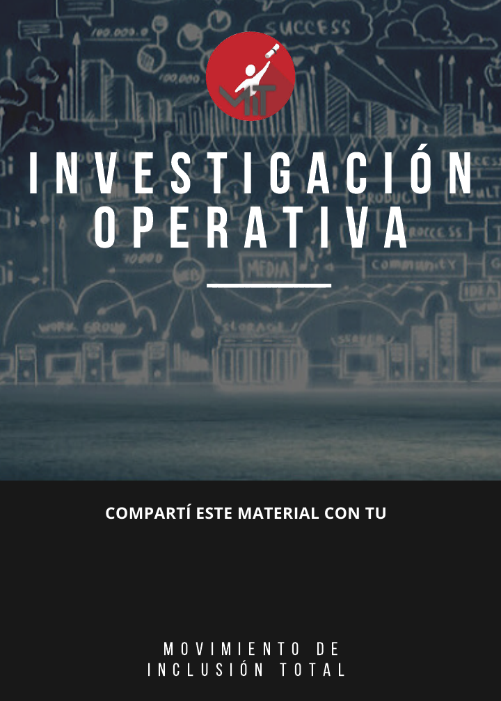 M O V I M I E N T O D E I N C L U S I Ó N T O T A L COMPARTÍ ESTE MATERIAL CON TUS COMPAÑEROS PARA QUE LO USEN COMO GUÍA EN LA RESOLUCIÓN DE LOS TRABAJOS PRÁCTICOS ~ El compañerismo lo sembramos entre todos ~ I N V E S T I G A C I Ó N O P E R A T I V A TEORÍA DE LOS TP _________________________________________ _________________________________________ Agradecemos al estudiante que recopiló esta gran información. PROGRAMACION MATEMATICA 1) ¿Que es la investigación operativa? La Investigación Operativa es una disciplina moderna que utiliza modelos matemáticos, estadísticos y algoritmos para modelar y resolver problemas complejos, determinando la solución óptima y mejorando la toma de decisiones. Esta materia también recibe el nombre de Investigación de Operaciones, Investigación Operacional o Ciencias de la Administración. Actualmente la Investigación Operativa incluye gran cantidad de ramas como la Programación Lineal, Programación No Lineal, Programación Dinámica, Simulación, Teoría de Colas, Teoría de Inventarios, Teoría de Grafos, etc. 2) Realice una síntesis histórica de la IO Aunque su nacimiento como ciencia se establece durante la Segunda Guerra Mundial y debe su nombre a las operaciones militares, los verdaderos orígenes de la Investigación Operativa se remontan mucho más atrás en el tiempo, hasta el siglo XVII (desde el punto de vista matemático). Incluso se puede considerar que el problema de hacer un uso óptimo de los recursos disponibles ha existido siempre y con el que la humanidad ha ido tratando a lo largo de su historia. Sin embargo el auge de esta ciencia se debe, en su mayor parte, al rápido desarrollo de la informática, que ha posibilitado la resolución de problemas en la práctica y la obtención de soluciones que de otra forma conllevarían un enorme tiempo de cálculo haciéndolos inviables. Debido al gran éxito obtenido por la Investigación Operativa en el campo militar, ésta se extendió a otros campos tales como la industria, física, administración, informática, ingeniería, economía, estadística y probabilidad, ecología, educación, servicio social, siendo hoy en día utilizada prácticamente en todas las áreas imaginables donde se pretenda mejorar la eficiencia. 3) Enuncie los pasos que constituyen la Metodología Científica de la Investigación Operativa Paso 1.- Identificar el problema. Paso 2.- Observar el sistema Paso 3.- Formular un modelo matemático del problema Paso 4.- Verificar el modelo y usarlo en predicciones Paso 5.- Seleccionar una alternativa Paso 6.- Presentar resultados a la organización Paso 7.- Implantar y evaluar las recomendaciones 4) Enuncie 5 aplicaciones típicas de la io 1) reducción de gastos de combustible en la industria de la energía eléctrica. 2) diseño de una instalación para desmontar lingoteras en Bethiehem 3) mezcla de gasolina en Texaco 4) programación de los horarios de los camiones para North America Van Lines 5) uso de la programación lineal para plantear la producción de una lechería. 5) ¿Que es la ingeniería de sistemas? Puede definirse como el arte la ciencia de seleccionar entre un gran numero de alternativas posibles con un abundante contenido de metodología de ingeniería, aquel conjunto de acciones que satisfacen mejor los objetivos totales de quienes toman las http://www.phpsimplex.com/historia.htm http://www.phpsimplex.com/historia.htm decisiones dentro de la restricciones morales, económicas, de recursos, de presiones sociales políticas, y de leyes que gobiernan las leyes físicas, biológicas y otras ciencias naturales. 6) ¿Que es un modelo? Clasifíquelos y enuncie los elementos principales que incluye un modelo matemático U n modelo: es una representación de un sistema de la vida real Clasificación: Modelo iónico: es una representación física del sistema real en mayor o menor escala. Modelo análogo: representa las propiedades reales de un sistema por medio de otro conjunto de propiedades mas simples y mas fácil de manipular. Modelo matemático o simbólico: utiliza letras y números y relaciones matemáticas para representar las propiedades de un sistema de la vida real. Un modelo matemático incluye tres elementos principales: Variables: se clasifican en controladas y no controladas. Las variables controladas de un modelo son las variables de decisión. AX≤b Función objetivo: mide la medida de la eficiencia del sistema en estudio. Es una función matemática de las variables de decisión. Se obtiene una solución optima para el modelo cuando los valores para las variables de decisión dan el menor valor de la función objetivo z(máx.)= Cx Restricción: las variables de decisión de un modelo están restringidas generalmente a un rango de valores factibles, debido a las limitaciones tecnológica y económicas de la vida real x≥0 7) Que entiende por: Sistema: puede ser definido como un conjunto de objetos que interaccionan de una manera regular e interdependiente. Variables de decisión: son las variables de estado controladas o las parcialmente controladas. Variables de estado: son las variables que representan la condición del sistema propio de cualquier tiempo y espacio, son las variables que definen en un instante dado la condición en la cual se encuentra el sistema. Parámetros del sistema: son variables que no cambian sensiblemente de valor durante el análisis por la que se considera constante. Política: es el conjunto de valores particulares asignados a las variables de decisión (sobre los recursos etc) Restricciones: las variables de decisión se encuentran generalmente restringidas a un rango de valores factibles. Política factible: es toda política que no viola ninguna restricción. Espacio de políticas: es el subconjunto compuesto por todas las políticas factibles, el espacio de políticas puede ser muy variable en el tiempo y en el espacio. Espacio de políticas convexo: resultaran siempre que todas las decisi