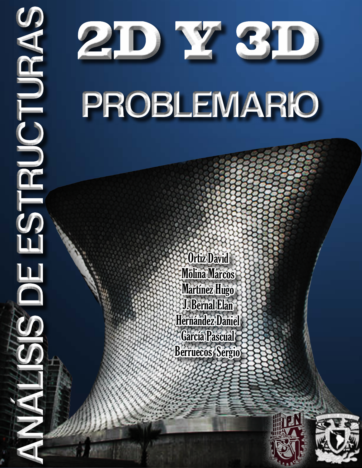 PROBLEMARIO 2D Y 3D Ortiz David Molina Marcos Martínez Hugo J. Bernal Elan Hernández Daniel García Pascual Berruecos Sergio A N Á LI S IS D E ES T R U C T U R A S “PROMOVIENDO LA UNIDAD” Se presenta el adelanto remasterizado del libro digital “Problemario de Análisis de Estructuras en 2D y 3D” y se ha elaborado no sólo con el objetivo de apoyar a profesores y estudiantes en la enseñanza y el aprendizaje del análisis estructural, ya que de igual forma se busca dar un mensaje de tipo social. El libro ha sido escrito por integrantes de dos de las instituciones con mayor historia en México: La UNAM y el IPN, particularmente de las unidades Facultad de Ingeniería, FES ARAGÓN y ESIA ZACATENCO. Durante mucho tiempo, estas instituciones se han considerado equívocamente, desde nuestro punto de vista antagónicas, sobre todo en el ámbito estudiantil a nivel medio superior y nivel superior. Este proyecto es una muestra de que podemos trabajar en conjunto, por lo que hacemos un llamado a la unidad, no sólo entre estas universidades, sino global, ya que respetamos a cada una de las universidades existentes y admiramos su calidad. No estamos de acuerdo con las ofensas que se emiten entre las distintas carreras; dedicamos esta obra a las personas vinculadas con las Licenciaturas de Ingeniería Civil, Ingeniería Mecánica, Ingeniería Aeronáutica, Arquitectura o alguna otra a fin. Se ofrecen 7 ejercicios resueltos minuciosamente sobre estructuras isostáticas e hiperestáticas en el plano, particularmente vigas, marcos y armaduras. Se les recomienda a los lectores tener conocimientos acerca de mecánica de materiales, estática, estructuras isostáticas, algebra, algebra matricial, cálculo diferencial e integral, ecuaciones diferenciales y si es posible, programación con matlab. Los autores consideramos que el dominio de los principios básicos es indispensable para el uso de los programas de cómputo disponibles en la actualidad, debido a que una vez desarrollada en el lector la habilidad de analizar a mano las estructuras, este comprenderá el modo de funcionamiento de los softwares y poseerá un mejor criterio. Queremos dedicar especialmente nuestro trabajo a nuestros familiares, y amigos y compañeros de la Licenciatura en Ingeniaría Civil de la FES ARAGÓN y de la ESIA ZACATENCO, así como de los posgrados en Ingeniería Civil de la ESIA ZACATENCO IPN Y La Facultad de Ingeniería UNAM. Próximamente estará listo el libro digital completo, el cual es totalmente independiente y de descarga gratuita. De antemano agradecemos a todos y cada uno de ustedes que día con día nos respaldan por distintos medios, esperando que este texto sea de su agrado y su utilidad. PROBLEMARIO DE ANÁLISIS DE ESTRUCTURAS EN 2D Y 3D 1 1.- Dibuje los diagramas de momento, de fuerza cortante, de giro y de flecha. SOLUCIÓN. Cálculo de las reacciones en los soportes. Diagrama de cargas. Al analizar la carga trapezoidal, es conveniente dividirla en una carga uniforme y una carga triangular, y se construye la tabla que se presenta a continuación. La carga concentrada equivalente de la carga trapezoidal distribuida es 𝐴1 = ∑ 𝐴 = 9𝑇 y su línea de acción está localizada a una distancia de �̅�1 = ∑ �̅� 𝐴 ∑ 𝐴 = 24𝑇. 𝑚 9𝑇 = 8 3 𝑚 a la derecha de B Para la carga distribuida uniforme, la fuerza resultante y su punto de aplicación son, respectivamente 𝐴2 = (6𝑇/𝑚)(2𝑚) = 12T �̅�2 = (1/2)(2𝑚) = 1𝑚 a la izquierda de B Componente 𝐴, 𝑇 �̅�, 𝑚 �̅�𝐴, 𝑇 ∙ 𝑚 ①=rectángulo 6(1) = 6 1 2 (6) = 3 18 ②= triángulo 6(1) 2 = 3 1 3 (6) = 2 6 ∑ 𝐴 = 9 ∑ �̅� 𝐴 = 24 1 𝑇/𝑚 2 𝑇/𝑚 3 𝑇 ∙ 𝑚 3𝑇 6 𝑇/𝑚 2𝑚 6𝑚 1 𝑚 𝐵 𝐶 𝐴 𝐷 PROBLEMARIO DE ANÁLISIS DE ESTRUCTURAS EN 2D Y 3D 2 El diagrama de cargas mostrado se completa identificando las reacciones en los soportes proponiendo sus sentidos arbitrariamente. Ecuaciones de equilibrio. + ∑ 𝑀𝐵 = 0 ⇒ −(3)(2) − (12)(1) + 9 ( 8 3 ) − 6(𝑅𝐶𝑌) + 3 = 0 ⇒∴ 𝑅𝐶𝑌 = 1.5 𝑇 + ∑ 𝑀𝐶 = 0 ⇒ 3 − 9 ( 10 3 ) + 6(𝑅𝐵𝑌) − (12)(1 + 6) − 3(8) = 0 ⇒∴ 𝑅𝐵𝑌 = 22.5 𝑇 +→ ∑ 𝐹𝑋 = 0 ⇒ 𝑅𝐵𝑋 = 0 Como comprobación, se cumple que +↑ ∑ 𝐹𝑌 = 0 ⇒ −3 − 12 + 1.5 − 9 + 22.5 = 0 ⇒ 0 = 0 𝑜𝑘 ✓ Funciones de fuerza cortante y de momento. En la siguiente figura se especifica la coordenada 𝑥 a utilizar cuyo origen asociado está en 𝐴; note que 𝑥 es válida para 0 ≤ 𝑥 ≤ 9𝑚. Debido a los cambios en el tipo de la carga distribuida y a las fuerzas reactivas en 𝐵 y 𝐶, las funciones de las acciones internas son discontinuas en esos puntos, así que deberán efectuarse tres cortes perpendiculares al eje de la viga para definir el momento y la fuerza cortante a lo largo de la estructura. 1 𝑇/𝑚 2 𝑇/𝑚 3 𝑇 ∙ 𝑚 3𝑇 2𝑚 6𝑚 1𝑚 𝐵 𝐶 𝐴 𝐷 𝑅𝐵𝑋 𝑅𝐵𝑌 𝑅𝐶𝑌 6 𝑇/𝑚 𝐴1 = 9𝑇 𝐴2 = 12𝑇 �̅�1 = 8 3 𝑚 �̅�2 = 1𝑚 10 3 𝑚 PROBLEMARIO DE ANÁLISIS DE ESTRUCTURAS EN 2D Y 3D 3 Corte en el tramo ① (𝐴 − 𝐵). Se secciona la viga a una distancia 𝑥 de 𝐴 antes del punto 𝐵, es decir, antes del punto de intensidad de 2𝑇/𝑚 de la presión trapezoidal. En consecuencia, el diagrama de cuerpo libre de la sección cortada y su equilibrio estático son 0 ≤ 𝑥 ≤ 2𝑚 + ∑ 𝑀𝑐𝑜𝑟𝑡𝑒 = 0 𝑀1 = −6(𝑥) ( 𝑥 2 ) − 3𝑥 = −3𝑥2 − 3𝑥 𝑉1 = 𝑑𝑀1 𝑑𝑥 = −6𝑥 − 3 Corte en el tramo ②(𝐵 − 𝐶). Se secciona la viga en un punto arbitrario que se ubique justo después de que comience la carga trapezoidal distribuida pero antes de que la misma termine; se cumple que la longitud de la viga va desde el punto 𝐴 hasta después del punto 𝐵, pero sin llegar al punto 𝐶. El diagrama de cuerpo libre para é