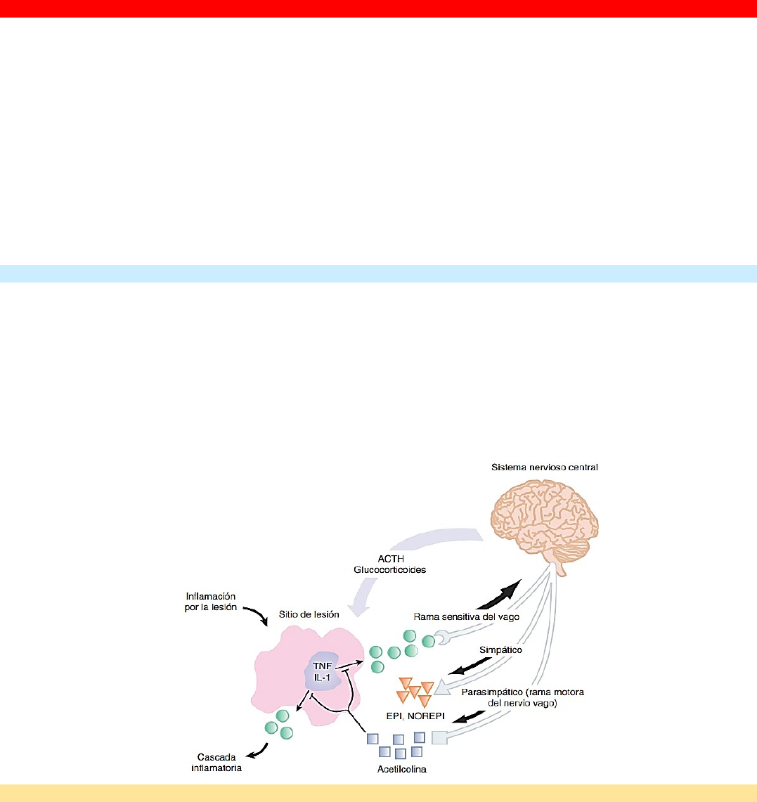 RESPUESTA METABÓLICA A LA LESIÓN · El sistema inmune actúa en el control de los agentes patógenos y ayuda a reparar tejidos lesionados. · Inflamación incluye señalización, migración celular y liberación de mediadores. SÍNDROME DE RESPUESTA INFLAMATORIA SISTÉMICA (SIRS) · SIRS. - respuestas metabólicas del huésped ante la inflamación. · Cambios en la frecuencia cardiaca · Frecuencia respiratoria · Presión sanguínea · Regulación de la temperatura · Activación de células inmunes. · Se puede medir a través de los signos vitales · La respuesta inflamatoria incluye 2 fases: 1. Un estado proinflamatorio. Se activan las células inflamatorias y una vez controlado el proceso infeccioso entra en acción la 2° fase 2. Una fase antiinflamatoria · Las 2 coordinadas dirigen al regreso a la homeostasis. REGULACIÓN DE LA INFLAMACIÓN POR EL SNC · El SNC juega un papel clave en la inflamación. · SNC influye en los órganos a través de señales: neurohormonales y endócrinas La información que llega al SN a través del vago lo hace por medio de la vía aferente y la vía eferente que es la que ejecuta a través de estas vías se responde a la agresión · Reconoce a través de las vías aferentes. · Responde a estímulos: · Mediante vías circulatorias y neuronales. · Los mediadores activan los receptores del SNC y responden con fiebre y anorexia (perdida del apetito) · El nervio vago (decimo par- nervio neumogástrico) envía señales aferentes al SNC. Nervio vago o parasimpático VÍAS ANTIINFLAMATORIAS COLINÉRGICAS · El vago ejerce varias influencias: · Aumento de la motilidad intestinal · Disminución de la FC · Regulación de la inflamación · Controla la compensación de las vías antinflamatorias. · simpático; acción antagonista, disminuye motilidad intestina, > FC · Actúa a través de la acetilcolina. (Mediador químico del parasimpático), para ejercer su acción debe hacerlo sobre sus receptores. Tenemos 2 tipos de receptores; los muscarínicos y los nicotínicos · Regula la liberación del FNT. · La acción esta mediada por receptores nicotínicos en las células inmunitarias, m@s · Vagotomía aumenta en el estrés. Tenemos 2 nervios vagos; uno derecho y otro izquierdo RESPUESTA HORMONAL A LESIONES. · Señales químicas. Hormonas, polipéptidos (citocinas, glucagón, e insulina) · Aminoácidos (adrenalina, serotonina, e histamina) Esenciales: el organismo no puede sintetizarlos, viene de la dieta. No esenciales: organismo los sintetiza · Ácidos grasos (glucocorticoides, prostaglandinas, leucotrienos) Estos actúan gracias a los receptores. Si no hay receptor no puede ejercer la acción · Los receptores se encuentran sobre o dentro de las células blanco y responden a través de la transducción de señales: 1) cinasa de receptor 2) receptores para proteína G o nucleótido de guanina 3) conductos iónicos activados. Las células donde se encuentran los receptores son las células blancas. Hay un sin número de receptores que están presentes en: Membrana celular, Citoplasma, Núcleo · Posteriormente se activan moléculas de señalización secundaria. · Las señales activan la producción de proteínas y liberación de mediadores Estos mediadores van a llegar al núcleo donde se encuentra el ADN · Que actúan en el ADN y activan la transcripción. · Receptor intracelular (receptores que se encuentran en el citosol o en el citoplasma) tenemos para los glucocorticoides, está regulado por la proteína de choque térmico (HSP) inducida por el estrés, que al unirse el glucocoticoide al receptor se libera HSP y el receptor ligando viajan al núcleo. Y en el núcleo ocurre la transcripción. Se libera el ARNm que viajara hacia los ribosomas (síntesis de proteínas) ACTH · Polipéptido liberado en la hipófisis anterior Hipófisis hay una parte anterior (adenohipófisis) y una posterior (neurohipófisis) unida por la parte intermedia · Actúa en la zona fasciculada de las glándulas suprarrenales Capa glomerular Capa fascicular: aquí actúa la ACTH para liberar cortisol. ACTH actúa en la corteza Capa reticular · Induce la señalización intracelular y libera cortisol · Liberación de cortisol tiene ritmo circadiano. (es decir se libera en diferentes cantidades en relación con el día) · El patrón diurno se amortigua por la liberación de ACTH · El cortisol: se eleva en proporción a la gravedad de la lesión. · Estímulos que liberan ACTH: · Hormona liberadora de corticotropina, Dolor, ansiedad, Vasopresina, angiotensina II, colecistocinina, VIP, catecolaminas, citocinas proinflamatorias · La activación excesiva de ACTH induce hipertrofia corticosuprarrenal. En la hipertrofia esta actúa sobre las células lábiles Células lábiles: son células que se dividen y mueren continuamente, se multiplican constantemente Células quiescentes: se encuentran en estado de reposo postmitótico en el periodo G0 y cuando hay un estímulo o agresión se despiertan y se empiezan a multiplicar Células permanentes: no tienen la capacidad de multiplicarse. Como las neuronas o miocitos CORTISOL Y GLUCOCORTICOIDES · Producida, liberada por estimulo de la ACTH · El cortisol aumenta en periodos de estrés · Cortisol potencia la acción del glucagón y la adrenalina, manifestándose como hiperglucemia Glucagón se produce en el páncreas, es el antagónico de la insulina Valor normal de la glucosa de 90 a 100 mg/dl Páncreas: Endocrino · Islotes de largenhans · Células alfa: glucagón · Células beta: insulina · Células delta: Somatostatina · Células PP: polipéptido pancreático Exocrino · Actúa en las enzimas hepáticas · Disminuye la glucogénesis · Incrementa la gluconeogénesis Queda en el hígado guardada la glucosa como glucógeno (mayor cantidad se encuentra en el musculo) Para degradar esa glucosa necesito de la glucosa 6 fosfatasa que no posee el musculo · Musculo esquelético degrada proteína almacenada y AA, libera 