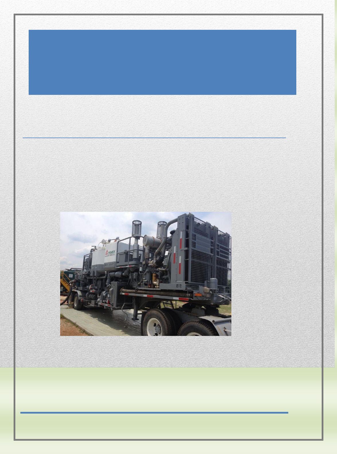 CEMENTACIONES COMALCALCO, TABASCO Motivación: El alumno debe sentirse atraído por adquirir nuevos conocimientos, para ello los docentes debemos despertar su interés con actividades dinámicas donde el alumno pueda aportar con ideas y tenga el deseo de aprender 19-4-2020 1 CEMENTACIONES ÍNDICE Razón, misión , valores y política de Petróleos Mexicanos y propósitos de PPS .......................................... 2 Que es una Cementacion ............................................................................................................................. 5 Objetivos del curso…………………………………..……………………………………………………………………………….………….…6 Introducción a la cementación…………………………………………………………………………………………………………………7 Antecedentes históricos...............................................................................................................................8 Conceptos y Definiciones...........................................................................................................................10 Proceso de fabricación del cemento..........................................................................................................12 Cemento portland......................................................................................................................................12 El proceso de cementación primaria..........................................................................................................15 Tipos de cementaciones.............................................................................................................................16 Accesorios para cementación.....................................................................................................................20 Aditivos para la lechada de cemento..........................................................................................................27 Registro Dirección - Calibracion..................................................................................................................34 Procedimiento para la realización de un servicio de cementaciones........................................................40 Formulario para las operaciones................................................................................................................44 Tabla de capacidades y conversiones.........................................................................................................49 Análisis de los problemas y sus causas.......................................................................................................51 Fichas Tecnicas…………….............................................................................................................................54 Conceptos y definiciones...........................................................................................................................57 Simbología y unidades...............................................................................................................................58 Ejercicios....................................................................................................................................................59 Formatos utilizados en un servicio …………...............................................................................................102 Equipo de protección personal……………………………………………………………………………………………………………110 2 CEMENTACIONES QUE ES UNA CEMENTACION La cementación de pozos petroleros es el proceso mediante el cual se mezcla una lechada de cemento y agua para bombearla al fondo del pozo a través de la tubería de revestimiento. Esta operación, conocida como cementación primaria, requiere una adecuada planeación para seleccionar los sistemas de cemento y fluidos lavadores y espaciadores que deberán emplearse, así como para definir las condiciones de desplazamiento de estos sistemas para obtener una buena adherencia entre las fases formación-cemento-tubería y asegurar un sello efectivo que aisle las diferentes capas geológicas y que soporte la tubería 3 CEMENTACIONES OBJETIVO DEL CURSO EL ENCARGADO DE UNIDAD DE ALTA PRESION CONOCERA EL PROCESO DE UNA OPERACIÓN DE CEMENTACIONES Y BOMBEOS ASI COMO LAS UNIDADES NECESARIAS, CALCULOS BASICOS Y PRINCIPALES PROBLEMATICAS EN DICHAS OPERACIONES • CONOCER EL OBJETIVO Y PROCESO DE UNA CEMENTACIÓN. • CONOCER COMO ESTA COMPUESTO EL CEMENTO • CONOCER LAS UNIDADES PRINCIPALES EN UN SERVICIO DE CEMENTACIONES, BOMBEOS Y PRUEBAS DE HERMETICIDAD (UNIDADES CEMENTADORA, UNIDAD DE BOMBEO Y PATIN ) • ACCESORIOS Y HTA. QUE DEBEN DE LLEVAR LA UAP • RECOMENDACIONES Y NOMENGLATURA • FAMILIARIZARNOS CON CONCEPTOS Y JERGA DE LA INDUSTRIA PETROLERA. • REALIZAR CALCULOS DE CAPACIDADES VOLUMENES CIMAS ALTURAS , PRESIONES, PESO DE LA TR EN EL AIRE Y FLOTADO TAPON POR CIRCULACION, CEMENTACION FORZADA • IDENTIFICAR LAS DISTINTAS PROBLEMÁTICAS QUE SE PRESENTAN DURANTE EL DESEMPEÑO DE ESTAS ACTIVIDADES ANTES Y DESPUÉS DE SU PROCESO. INTRODUCCIÓN A LA CEMENTACIÓN 4 CEMENTACIONES Preparar y bombear cemento en su lugar en un pozo. Las operaciones de cementación pueden llevarse a cabo para sellar el espacio anular después de bajar una sarta de revestimiento, para sellar una zona de pérdida de circulación, para colocar un tapón en un pozo existente desde el cual poder efectuar desviaciones con herramientas direccionales, o taponar un pozo para que pueda ser abandonado. Antes de que comiencen las operaciones de cementación, los ingenieros determinan el volumen de cemento (generalmente con ayuda de un registro calibrador) a emplazar en el pozo y las propiedades físicas tanto de la lechada como de