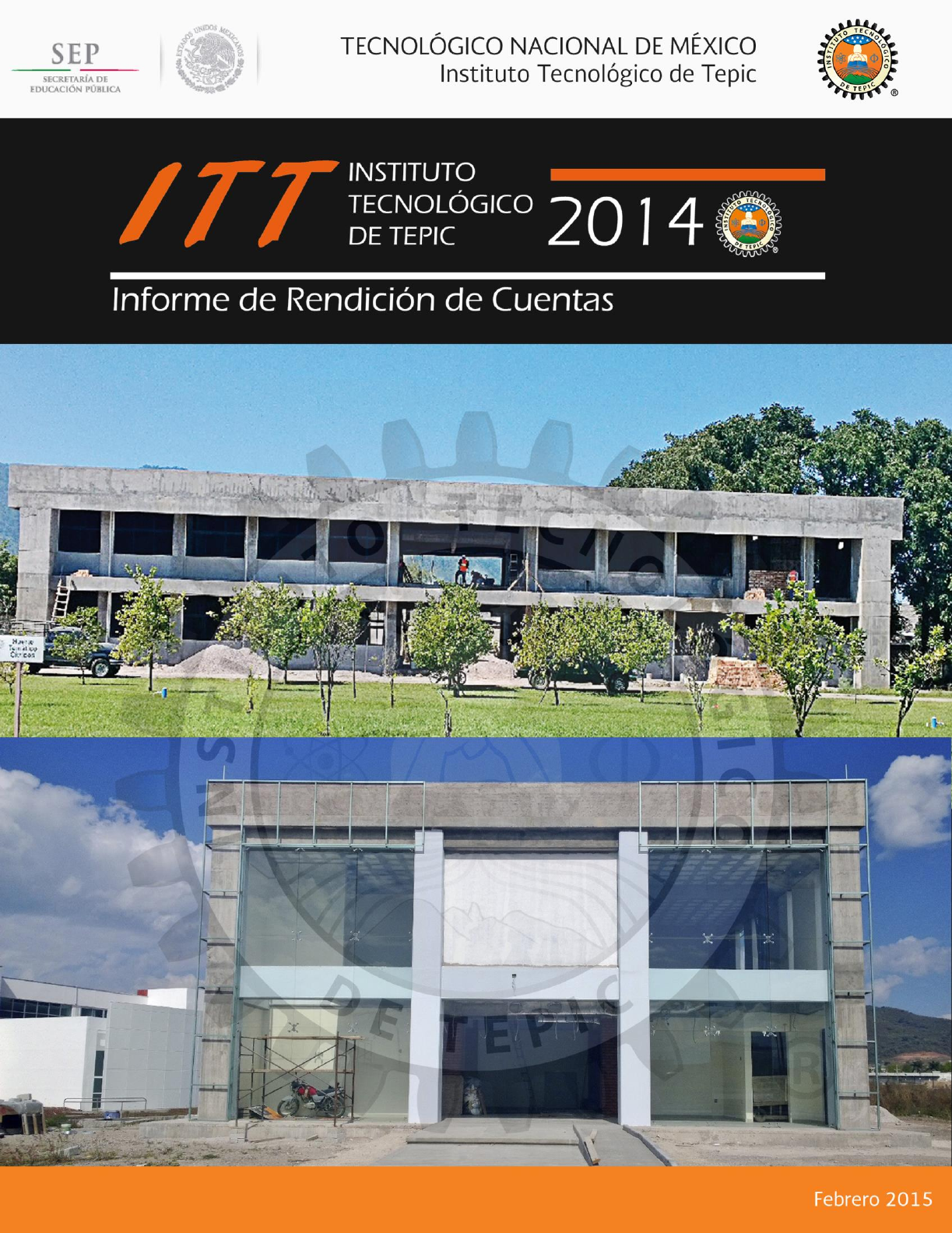 Informe de Rendición de Cuentas 2014 1 Informe de Rendicio n de Cuentas Instituto Tecnológico de Tepic El presente documento contiene las actividades realizadas que han impactado en el alcance de las metas del Programa de Trabajo Anual 2014. 2014 Informe de Rendición de Cuentas 2014 2 Tabla de contenido MENSAJE INSTITUCIONAL. ............................................................................................................................... 4 INTRODUCCIÓN. .................................................................................................................................................... 5 MARCO NORMATIVO. .......................................................................................................................................... 6 AVANCE EN EL LOGRO DE LAS METAS INSTITUCIONALES POR PROCESO ESTRATÉGICO ......................................................................................................................................................... 9 PROCESO ESTRATÉGICO ACADÉMICO. ................................................................................................. 9 Matrícula. ...................................................................................................................................................... 9 Programas Reconocidos por su Calidad. ...................................................................................... 17 Profesorado. ............................................................................................................................................. 21 Investigación. ........................................................................................................................................... 24 Becas. .......................................................................................................................................................... 29 Participación en Eventos Académicos. .......................................................................................... 30 Actividades Complementarias. ......................................................................................................... 37 PROCESO ESTRATÉGICO DE VINCULACIÓN..................................................................................... 49 Consejo de vinculación. ....................................................................................................................... 50 Acuerdos de colaboración. ................................................................................................................. 51 Servicio Social. ......................................................................................................................................... 51 Residencias Profesionales. ................................................................................................................. 53 Visitas a Empresas. ................................................................................................................................ 53 Servicio Externo. .................................................................................................................................... 54 PROCESO ESTRATÉGICO DE PLANEACIÓN. ..................................................................................... 58 Difusión Cultural y Promosión Deportiva. ................................................................................... 58 Participación en programas de Fortalecimiento Institucional. .......................................... 72 Informe de Rendición de Cuentas 2013. ...................................................................................... 74 Plan Maestro de Desarrollo y Consolidación de la Infraestructura Educativa. ............ 74 Ceremonias de Graduación. ............................................................................................................... 76 PROCESO ESTRATÉGICO SISTEMAS DE GESTIÓN. ........................................................................ 77 Sistema de Gestión de Calidad. ......................................................................................................... 78 Sistema de Gestión Ambiental. ......................................................................................................... 80 Sistema de Gestión de Equidad de Género. ................................................................................. 85 PROCESO ESTRATÉGICO ADMINISTRACIÓN DE LOS RECURSOS ........................................... 90 Informe de Rendición de Cuentas 2014 3 Mantenimiento. ....................................................................................................................................... 90 Personal. .................................................................................................................................................... 92 GESTIÓN, CAPTACIÓN Y EJERCICIOS DE LOS RECURSOS FINANCIEROS. ................................. 94 Pagos de nómina. .......................................................................................................................................... 94 Captación de ingresos. ............................................................................................................................... 94 Ejercicio del recurso. .................................................................................................................................. 95 Egresos de los recursos propios. ........................................................................................................... 95 Gastos del LVIII Evento Nacional Deportivo de los Institutos Tecnológicos. ...................... 96 ESTRUCTURA ACADÉMICO-ADMINISTRATIVA DEL PLANTEL. ..................................................... 98 INFRAESTRUCTURA DEL PLANTEL. ........................................................................................................ 101 PRINCIP