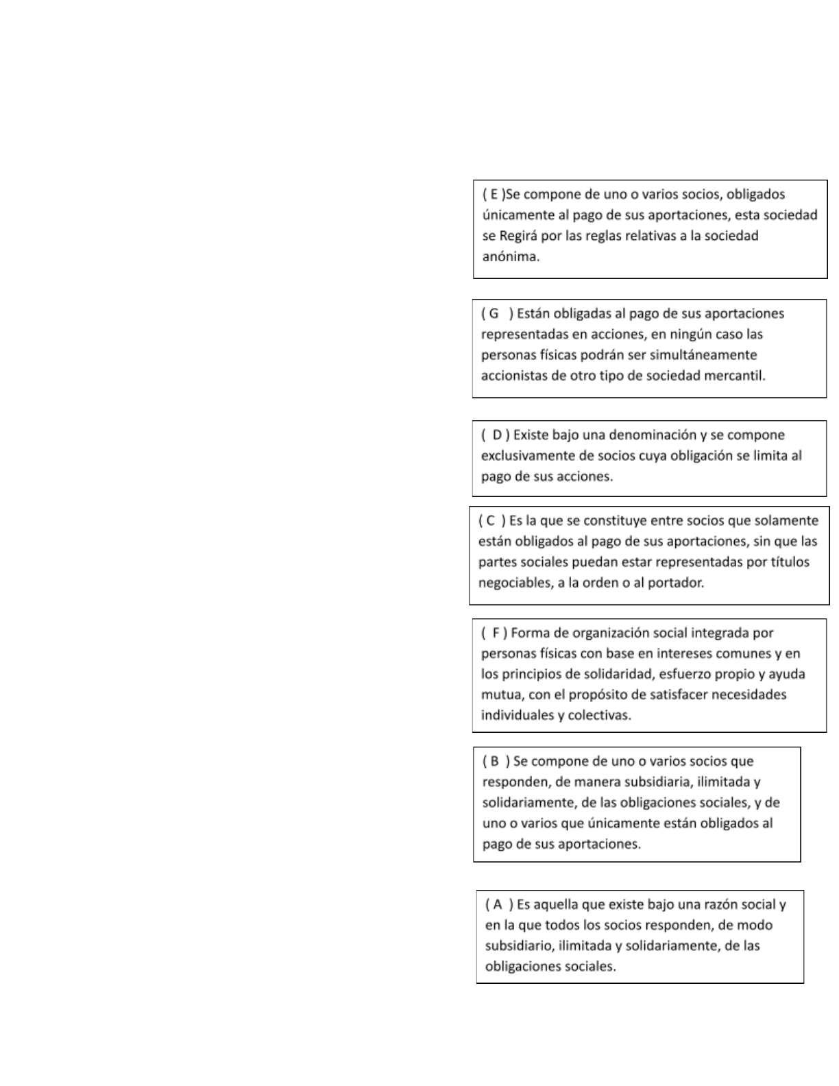 Ley de Sociedades Mercantiles Actividad 2. A) Sociedad en Nombre Colectivo Razón Social B) Sociedad en Comandita Simple Razón Social C) Sociedad de Responsabilidad Limitada Ambas D) Sociedad Anónima Denominación E) Sociedad en comandita por acciones Razón Social F) Sociedad cooperativa Denominación G) Sociedad por acciones simplificada. Denominación