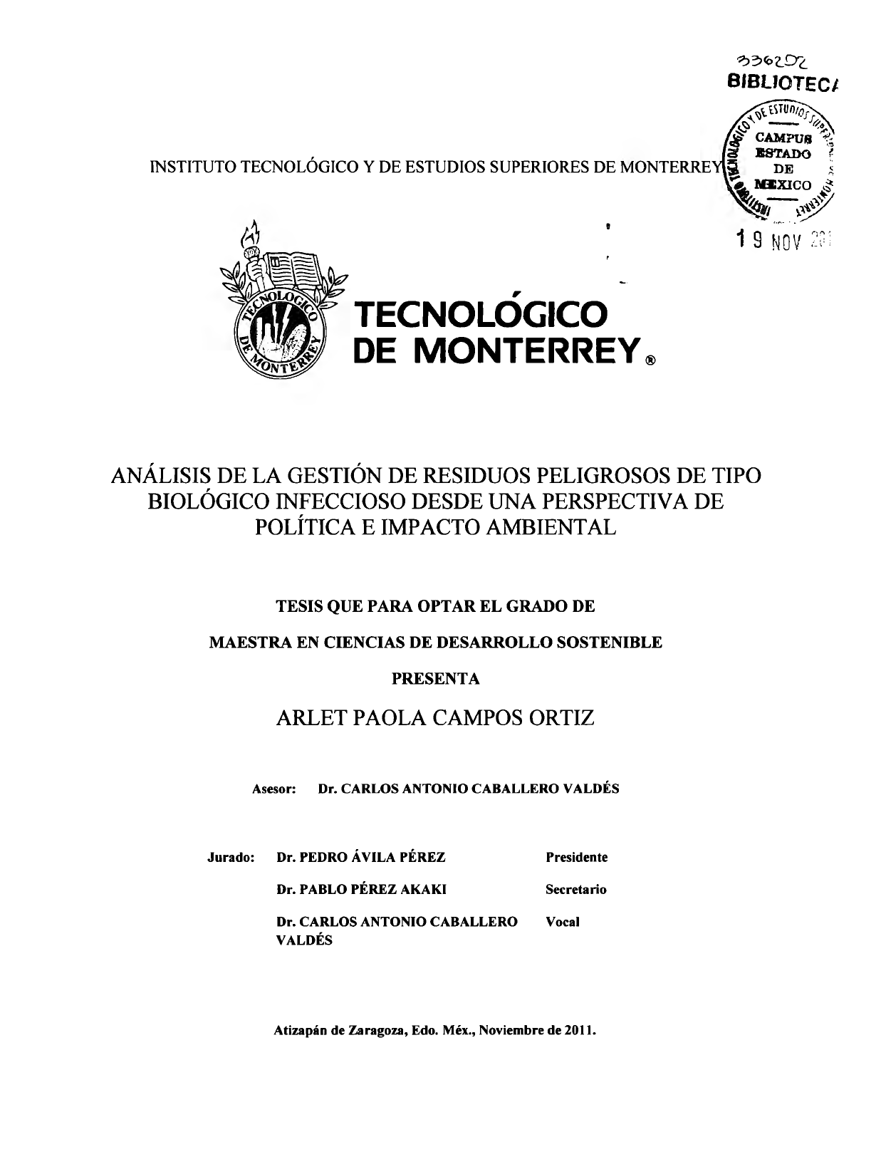Atizapán de Zaragoza, Edo. Méx., Noviembre de 2011.