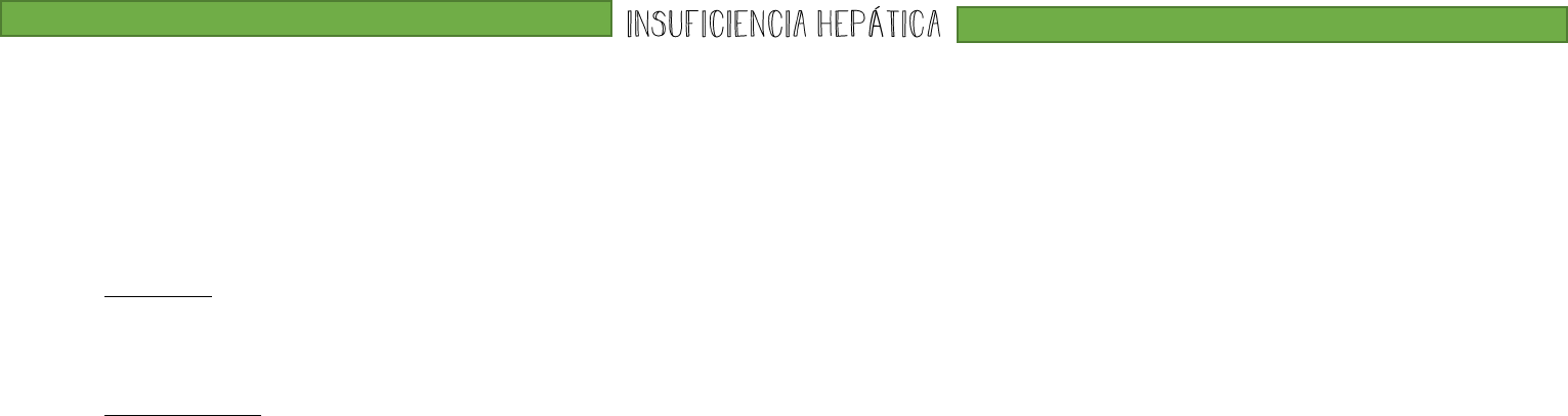 Puede ser consecuencia de una destrucción hepática súbita y masiva → IH aguda, o con más frecuencia, una IH crónica, producto de años o décadas de daño hepático insidioso y progresivo. Se debe perder el 80-90% de la capacidad funcional hepática antes de que aparezca una IH. IH aguda. Se define como una hepatopatía aguda asociada a encefalopatía y coagulopatía que se produce en las 26 semanas siguientes a una lesión hepática inicial, en ausencia de una hepatopatía previa. Se debe a una necrosis hepática masiva, relacionada por lo general con fármacos o toxinas, mientras que otras causas podrían ser: hepatitis autoinmunitaria, infecciones por VHA/VHB. El mecanismo de necrosis hepatocelular puede ser una lesión tóxica directa (ej paracetamol), pero con mayor frecuencia se debe a una combinación variable de toxicidad y destrucción por mecanismos autoinmunes. - Morfología. Se suele presentar con necrosis hepática masiva → extensas regiones de pérdida de parénquima alrededor de islotes de regeneración. MACRO: son hígados pequeños y retraídos. MICRO: la prominencia de las reacciones cicatriciales depende de la naturaleza de la injuria y duración de la agresión; por lo tanto, las lesiones tóxicas actúan por un período demasiado breve como para dejar cicatriz o aparezca regeneración, mientras que las infecciones víricas agudas que se desarrollen durante semanas o unos pocos meses podrán dar lugar a la formación de nódulos de regeneración. - Evolución clínica. Se manifiesta inicialmente con náuseas, vómitos e ictericia, seguidos de una encefalopatía con riesgo vital y defectos de la coagulación. Es típica el aumento de transaminasas hepáticas en sangre. Inicialmente, el hígado se encuentra aumentado de tamaño debido a la profusa reacción inflamatoria, pero tras la eliminación de buena parte del parénquima hepático, se produce la retracción del órgano. Es por esto último que la disminución de los niveles séricos de las transaminasas con un hígado retraído no puede ser interpretado como signo de mejora, sino que existe pocos hepatocitos residuales viables. Si la enfermedad progresa sin control, se producirá una insuficiencia multiorgánica. Otras manifestaciones: • Encefalopatía hepática, es un espectro de trastornos de la consciencia. Entre los signos neurológicos asociados están la rigidez e hiperreflexia. Se considera un trastorno de la neurotransmisión en SNC y SNM, debido al aumento de las concentraciones de amoníaco en sangre y el SNC que produce alteraciones en la función neuronal y edema cerebral. • Alteraciones en el metabolismo del hemo, que produce una decoloración amarillenta de la piel y escleróticas (ictericia), o colestasis, ocasionada por la retención de bilirrubina. • Las coagulopatías son producto de una deficiencia en la producción de los factores de la coagulación dependientes e independientes de la vitamina K. Un signo precoz es la aparición con facilidad de hematomas y episodios de hemorragia severos. También puede causar una CID debido al clearance disminuido de los factores de coagulación activados. • Hipertensión portal, que aparece cuando disminuye el flujo a través del sistema venoso portal (de causa pre hepática, hepática o posthepática). Si bien es más propia de la IH crónica, puede aparecer en la forma aguda con una obstrucción predominantemente intrahepática, con ascitis y encefalopatía hepática como principales consecuencias clínicas. • Síndrome hepatorrenal, es una forma de IR que afecta a los pacientes con IH en los que no existen causas morfológicas o funcionantes intrínsecas para la disfunción renal. Las principales alteraciones renales son: retención de Na, alteración de la excreción de agua libre y reducción de la perfusión renal/FG. El síndrome debuta con una disminución de la diuresis y una elevación de la urea y creatinina en sangre. IH crónica. Sus principales causas son las infecciones por VHB y VHC, la esteatosis hepática no alcohólica y la hepatopatía alcohólica. La IH en este caso suele asociarse a cirrosis → situación caracterizada por la transformación difusa de todo el hígado en nódulos parenquimatosos regenerativos rodeados por bandas fibrosas y grados variables de comunicaciones vasculares. Sin embargo, no todas las cirrosis producen de forma inexorable una IH crónica, y no todas las hepatopatías crónicas en fase terminal son de tipo cirrótico. Por último, si bien la cirrosis es sinónimo de una enfermedad crónica grave, no se trata de un diagnóstico específico y no tiene claras implicancias pronósticas; el término cirrosis criptogénica describe cirrosis sin una causa evidente. - Morfología. MACRO: se trata de un hígado retraído. MICRO: la cirrosis afecta de forma difusa todo el hígado, que aparece constituido por nódulos parenquimatosos regenerativos rodeados por bandas claras densas de cicatriz y grados variables de comunicación vascular. - Características clínicas. Aproximadamente el 40% de los pacientes cirróticos están asintomáticos hasta las fases más avanzadas de la enfermedad; una vez sintomáticos, presentan manifestaciones inespecíficas: anorexia, pérdida de peso, debilidad, y en estadios avanzados, signos y síntomas de IH. La ictericia, la encefalopatía y la coagulopatía son muy similares a la IH aguda, pero pueden añadirse algunas características: • Prurito, debido a la ictericia crónica. Resuelve con el trasplante. • Hiperestrogenemia en hombres por alteración del metabolismo de estrógenos → hipogonadismo y ginecomastia. • Angiomas en araña cutáneos, que se corresponden con una arteriola dilatada central pulsátil a partir de la cual irradian pequeños vasos. • Hipertensión portal. • Síndrome hepatopulmonar, aparece en el 30% de los pacientes con cirrosis hepática y HTP. En estos casos, se desarrollan dilataciones vasculares intrapulmonares que afectan a los pr