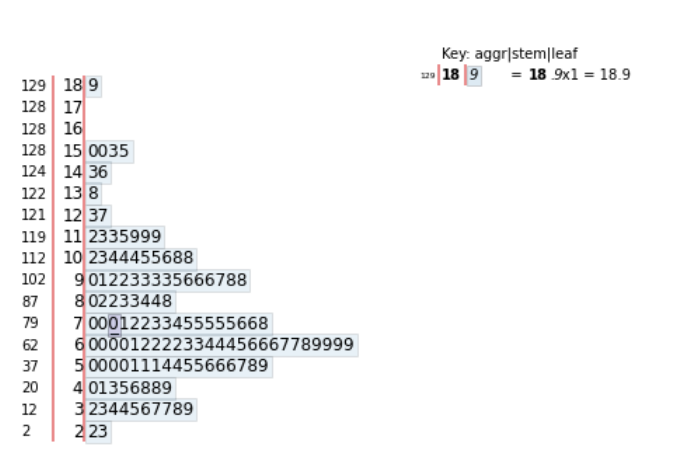 14. El conjunto de datos adjunto se compone de observaciones del flujo de una regadera (l/min) para una muestra de n = 129 casas en Perth, Australia (“An Application of Bayes Methodology to the Analysis of Diary Records in a Water Use Study”, J. Amer. Stat. Assoc., 1987: 705-711): 4.6 12.3 7.1 7.0 4.0 9.2 6.7 6.9 11.5 5.1 11.2 10.5 14.3 8.0 8.8 6.4 5.1 5.6 9.6 7.5 7.5 6.2 5.8 2.3 3.4 10.4 9.8 6.6 3.7 6.4 8.3 6.5 7.6 9.3 9.2 7.3 5.0 6.3 13.8 6.2 5.4 4.8 7.5 6.0 6.9 10.8 7.5 6.6 5.0 3.3 7.6 3.9 11.9 2.2 15.0 7.2 6.1 15.3 18.9 7.2 5.4 5.5 4.3 9.0 12.7 11.3 7.4 5.0 3.5 8.2 8.4 7.3 10.3 11.9 6.0 5.6 9.5 9.3 10.4 9.7 5.1 6.7 10.2 6.2 8.4 7.0 4.8 5.6 10.5 14.6 10.8 15.5 7.5 6.4 3.4 5.5 6.6 5.9 15.0 9.6 7.8 7.0 6.9 4.1 3.6 11.9 3.7 5.7 6.8 11.3 9.3 9.6 10.4 9.3 6.9 9.8 9.1 10.6 4.5 6.2 8.3 3.2 4.9 5.0 6.0 8.2 6.3 3.8 6.0 a. Construya una gráfica de tallos y hojas de los datos. Figure 1: Gráfica de tallos y hojas. b. ¿Cuál es una velocidad de flujo o gasto típico o representativo? El gasto mas representativo está alrededor de los 6 a 7 litros c. ¿Parece estar la gráfica altamente concentrada o dispersa? Parece estar concentrada alrededor de los 5 a 7 litros por minuto. d. ¿Es la distribución de valores razonablemente simétrica? Si no, ¿cómo describiría el alejamiento de la simetría? La forma de la gráfica no es perfectamente simétrica, pues parece alargarse un poco más en la dirección de las hojas bajas que en la dirección de las hojas altas. e. ¿Describiría cualquier observación como alejada del resto de los datos (un valor extremo)? Si. 1