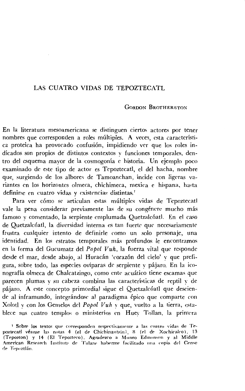 Para ver cómo se articulan estas múltiples vidas de Tcpoztecatl