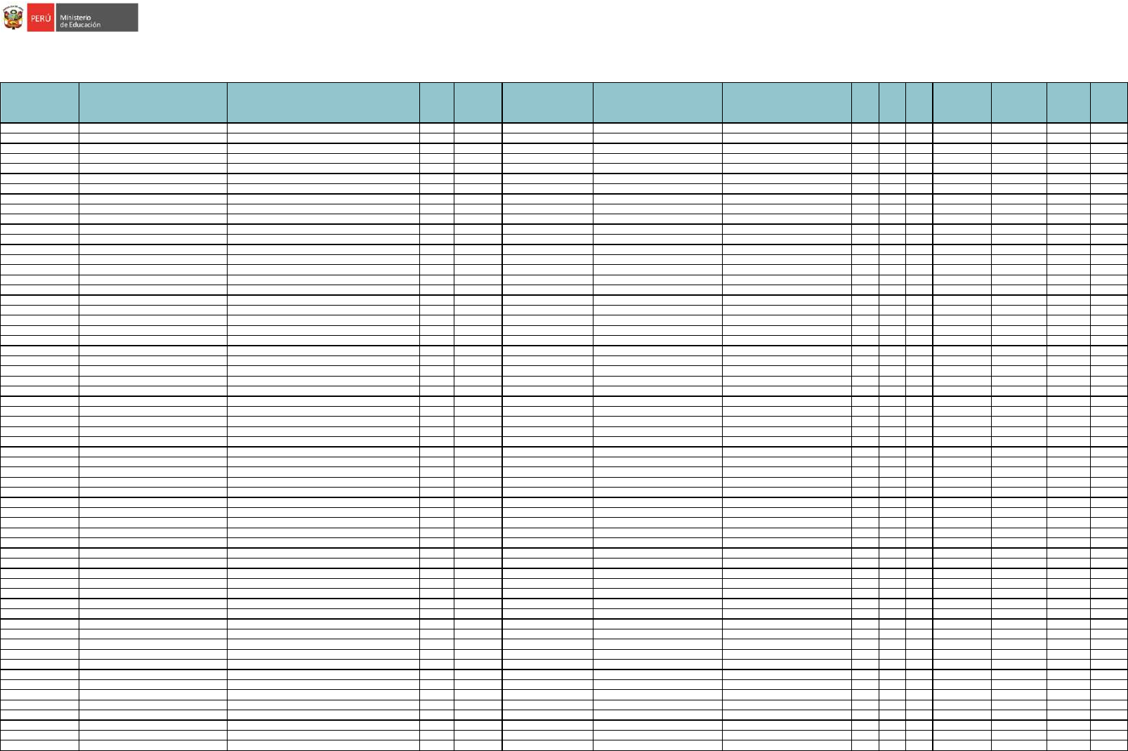 Publicado: 15/01/2022 REGIÓN DRE / UGEL GRUPO DE INSCRIPCIÓN ORDEN DE MÉRITO DOCUMENTO DE IDENTIDAD APELLIDO PATERNO APELLIDO MATERNO NOMBRES S1 (*) (**) S2 (*) S3 (*) (**) Observación de Aula en la Etapa Descentralizada (**) BONIF. DISCAPACIDAD BONIF. LIC. FF.AA. PUNTAJE FINAL HUANCAVELICA UGEL ACOBAMBA EBR Inicial 1 10169957 HUAMANI HUAYASCACHI LIDA ESPERANZA 36 24 87.5 - 0.000 0.000 147.500 HUANCAVELICA UGEL ACOBAMBA EBR Inicial 2 23561352 ARANA ESCOBAR NELSY 30 24 90.0 - 0.000 0.000 144.000 HUANCAVELICA UGEL ACOBAMBA EBR Inicial 3 70297585 ORE HUAMANCAYO KATIUSCA 44 18 80.0 - 0.000 0.000 142.000 HUANCAVELICA UGEL ACOBAMBA EBR Inicial 4 42182784 DAVILA TITO ROXANA 38 24 80.0 - 0.000 0.000 142.000 HUANCAVELICA UGEL ACOBAMBA EBR Inicial 5 43300899 VARGAS ESCOBAR PRISILA 28 20 92.5 - 0.000 0.000 140.500 HUANCAVELICA UGEL ACOBAMBA EBR Inicial 6 23272250 HUAYRA CANALES NERY 42 14 77.5 - 0.000 0.000 133.500 HUANCAVELICA UGEL ACOBAMBA EBR Inicial 7 45121602 VERGARA GUIZA LADY VANESSA 36 22 72.5 - 0.000 0.000 130.500 HUANCAVELICA UGEL ACOBAMBA EBR Inicial 8 23272208 PAYTAN HUAMAN ROSA 36 26 67.5 - 0.000 0.000 129.500 HUANCAVELICA UGEL ACOBAMBA EBR Inicial 9 23392316 ALTEZ LLAVE FATME KARINA 38 22 67.5 - 0.000 0.000 127.500 HUANCAVELICA UGEL ACOBAMBA EBR Inicial 10 42185775 GARCIA CANALES BLANCA 30 16 80.0 - 0.000 0.000 126.000 HUANCAVELICA UGEL ACOBAMBA EBR Inicial 11 20018763 MODESTO AGUILAR SARA 38 22 65.0 - 0.000 0.000 125.000 HUANCAVELICA UGEL ACOBAMBA EBR Inicial 12 70300134 TITO DAVILA LUZ MERY 36 28 60.0 - 0.000 0.000 124.000 HUANCAVELICA UGEL ACOBAMBA EBR Inicial 13 20057990 CRISPIN ALARCO GLADYS 42 20 60.0 - 0.000 0.000 122.000 HUANCAVELICA UGEL ACOBAMBA EBR Inicial 14 42243375 CAMPOS MONTEJO LISBETH KARINA 26 20 75.0 - 0.000 0.000 121.000 HUANCAVELICA UGEL ACOBAMBA EBR Inicial 15 42007421 MEZA VILLANUEVA NEISSER 34 22 65.0 - 0.000 0.000 121.000 HUANCAVELICA UGEL ACOBAMBA EBR Inicial 16 43635534 ARONI ALVARADO MADELIN ROCIO 32 16 72.5 - 0.000 0.000 120.500 HUANCAVELICA UGEL ACOBAMBA EBR Inicial 17 47694234 MERINO COCA LISBETH KAREN 32 26 62.5 - 0.000 0.000 120.500 HUANCAVELICA UGEL ACOBAMBA EBR Inicial 18 44448241 SOTO SAENZ FLOR BEATRIZ 30 20 70.0 - 0.000 0.000 120.000 HUANCAVELICA UGEL ACOBAMBA EBR Inicial 19 40498023 HUIZA MATAMOROS MIRIAM 34 10 75.0 - 0.000 0.000 119.000 HUANCAVELICA UGEL ACOBAMBA EBR Inicial 20 20042279 NIETO JIMENEZ TANIA ROSARIO 28 18 72.5 - 0.000 0.000 118.500 HUANCAVELICA UGEL ACOBAMBA EBR Inicial 21 28243546 QUISPE BREÑA GRACIELA 34 22 62.5 - 0.000 0.000 118.500 HUANCAVELICA UGEL ACOBAMBA EBR Inicial 22 43859477 CAMARENA HUAMAN RAQUEL SABRINA 34 26 57.5 - 0.000 0.000 117.500 HUANCAVELICA UGEL ACOBAMBA EBR Inicial 23 43371904 SOTO GARCIA YENY ANTONIA 32 22 62.5 - 0.000 0.000 116.500 HUANCAVELICA UGEL ACOBAMBA EBR Inicial 24 23266978 ARIAS ÑAHUI JUANA 32 14 70.0 - 0.000 0.000 116.000 HUANCAVELICA UGEL ACOBAMBA EBR Inicial 25 44499926 TORRES ESCOBAR ROSARIO 32 24 60.0 - 0.000 0.000 116.000 HUANCAVELICA UGEL ACOBAMBA EBR Inicial 26 23270235 LEDESMA AYUQUE SONIA 24 14 77.5 - 0.000 0.000 115.500 HUANCAVELICA UGEL ACOBAMBA EBR Inicial 27 23378734 QUISPE SOTO ROSA 34 14 67.5 - 0.000 0.000 115.500 HUANCAVELICA UGEL ACOBAMBA EBR Inicial 28 20063239 DIAZ VILLANTOY MIRIAM FABIA 28 12 75.0 - 0.000 0.000 115.000 HUANCAVELICA UGEL ACOBAMBA EBR Inicial 29 43040515 HUAMANI VILLALVA EVELINA 30 12 72.5 - 0.000 0.000 114.500 HUANCAVELICA UGEL ACOBAMBA EBR Inicial 30 70125020 CCENTE GOMEZ FLOR ZAIDA 22 20 72.5 - 0.000 0.000 114.500 HUANCAVELICA UGEL ACOBAMBA EBR Inicial 31 23270052 LAURENTE TORRES VILMA 30 14 70.0 - 0.000 0.000 114.000 HUANCAVELICA UGEL ACOBAMBA EBR Inicial 32 40221671 AROTOMA ÑAHUI DELIA ISAURA 36 10 67.5 - 0.000 0.000 113.500 HUANCAVELICA UGEL ACOBAMBA EBR Inicial 33 23276750 CARDENAS QUINTO HELI MARNA 34 16 62.5 - 0.000 0.000 112.500 HUANCAVELICA UGEL ACOBAMBA EBR Inicial 34 43687776 NAVARRO QUISPE KARINA 38 14 60.0 - 0.000 0.000 112.000 HUANCAVELICA UGEL ACOBAMBA EBR Inicial 35 46394777 SEDANO CRISPIN NOEMI 28 6 77.5 - 0.000 0.000 111.500 HUANCAVELICA UGEL ACOBAMBA EBR Inicial 36 40344445 RIVEROS ESCOBAR NORMA 34 10 67.5 - 0.000 0.000 111.500 HUANCAVELICA UGEL ACOBAMBA EBR Inicial 37 40662694 PAYTAN DE LA CRUZ SANTOSA 30 6 75.0 - 0.000 0.000 111.000 HUANCAVELICA UGEL ACOBAMBA EBR Inicial 38 23393004 AGUIRRE NOA MARY LUZ 20 16 75.0 - 0.000 0.000 111.000 HUANCAVELICA UGEL ACOBAMBA EBR Inicial 39 40920301 CASTRO CURASMA REYMUNDA 34 22 55.0 - 0.000 0.000 111.000 HUANCAVELICA UGEL ACOBAMBA EBR Inicial 40 41658547 UTOS MUÑOZ AYMEE SOLEDAD 24 14 72.5 - 0.000 0.000 110.500 HUANCAVELICA UGEL ACOBAMBA EBR Inicial 41 45476674 ESPEZA VARGAS MARLENI 32 16 62.5 - 0.000 0.000 110.500 HUANCAVELICA UGEL ACOBAMBA EBR Inicial 42 41267713 QUINTO QUISPE ISABEL 28 20 62.5 - 0.000 0.000 110.500 HUANCAVELICA UGEL ACOBAMBA EBR Inicial 43 23561047 MOORE AUCCAPIÑA MARISA 36 16 57.5 - 0.000 0.000 109.500 HUANCAVELICA UGEL ACOBAMBA EBR Inicial 44 40683522 BACILIO CASTRO DORIS MARIBEL 32 20 57.5 - 0.000 0.000 109.500 HUANCAVELICA UGEL ACOBAMBA EBR Inicial 45 71207384 AYUQUE LOPEZ MARTHA ROCIO 34 20 55.0 - 0.000 0.000 109.000 HUANCAVELICA UGEL ACOBAMBA EBR Inicial 46 23262307 JAVIER RAMOS IRMA 26 22 60.0 - 0.000 0.000 108.000 HUANCAVELICA UGEL ACOBAMBA EBR Inicial 47 80078217 LOPEZ GARCIA DURGET 34 10 62.5 - 0.000 0.000 106.500 HUANCAVELICA UGEL ACOBAMBA EBR Inicial 48 45902232 TORRES HUAMAN AYDEE MARITZA 30 14 62.5 - 0.000 0.000 106.500 HUANCAVELICA UGEL ACOBAMBA EBR Inicial 49 40615933 LLANCARI ALTEZ GLADYS ROSSIO 28 18 60.0 - 0.000 0.000 106.000 HUANCAVELICA UGEL ACOBAMBA EBR Inicial 49 71931855 CCENCHO CONTRERAS EDITH 28 18 60.0 - 0.000 0.000 106.000 HUANCAVELICA UGEL ACOBAMBA EBR Inicial 51 23248627 ESPINOZA HUAMAN HILDA 26 20 60.0 - 0.000 0.000 106.000 HUANCAVELICA UGEL ACOBAMBA EBR Inicial 52 42122086 GAMERO PILLPA KAROLINA 28 10 67.5 - 0.000 0.000 105.500 HUANCAVELICA UGEL ACOBAMBA EBR Inicial 53 23561058 QUISPE ACHARTE HERLINDA 26 22 57.5 - 0.000 0.000 105.500 HUANCAVEL