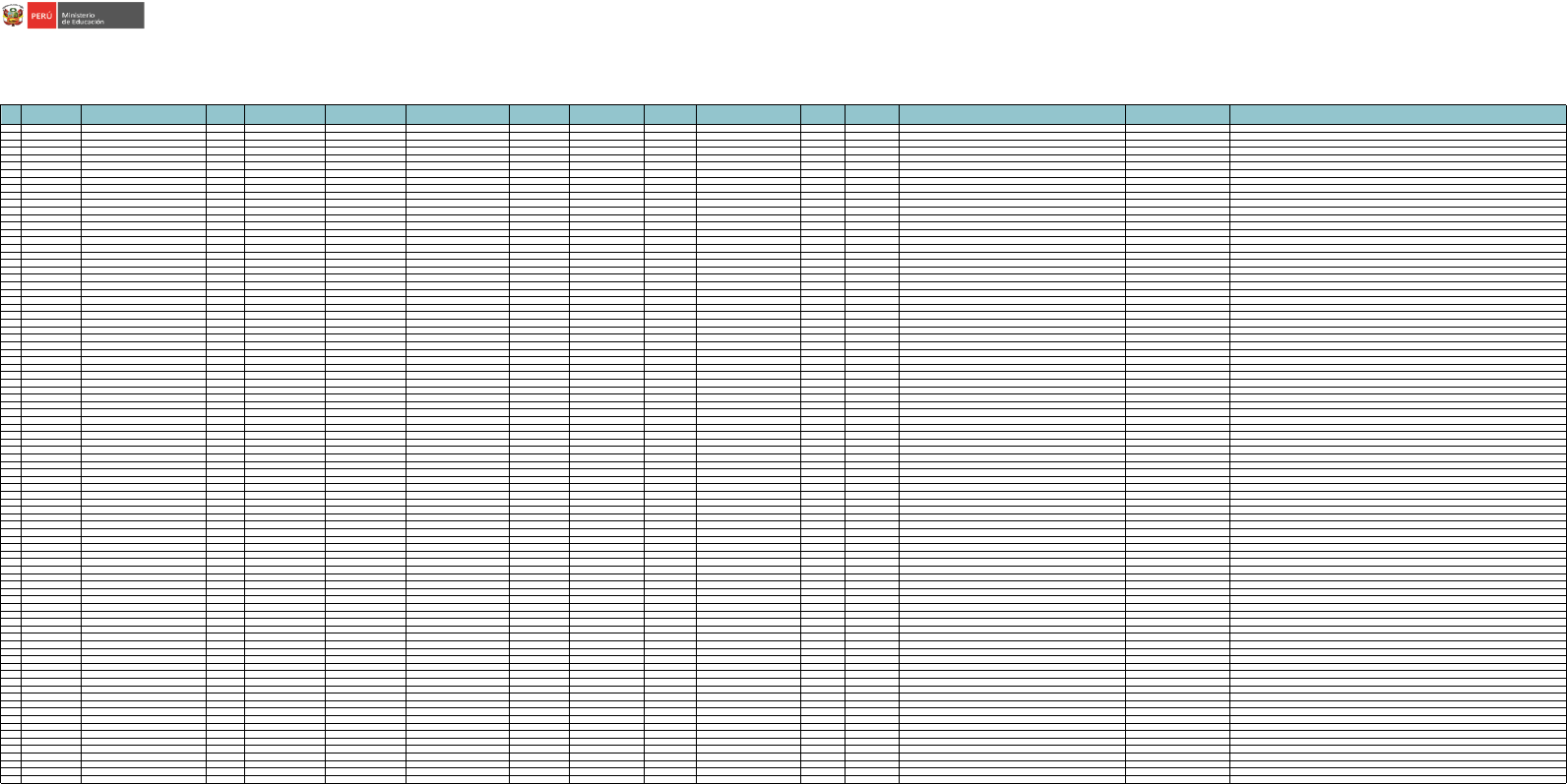 N° REGIÓN DRE/UGEL DNI APELLIDO PATERNO APELLIDO MATERNO NOMBRES CARGO CÓDIGO DE PLAZA MODALIDAD NIVEL EDUCATIVO/CICLO CÓDIGO LOCAL CÓDIGO MODULAR NOMBRE DE LA I.E. CARACTERÍSTICA DE LA I.E. OBSERVACIÓN 1 UCAYALI UGEL ATALAYA 00158908 VALDEZ HERRERA ISAURO DIOMEDES SUB-DIRECTOR I.E. 1135113111N6 EBR Primaria 500984 0629717 64721 POLIDOCENTE COMPLETA 2 UCAYALI UGEL ATALAYA 01320867 ROQUE GUISADO RUBER DIRECTOR I.E. 721421214612 EBR Secundaria 500192 0614404 SAN JUAN BAUTISTA DE MALDONADILLO POLIDOCENTE COMPLETA 3 UCAYALI UGEL ATALAYA 04327468 MERCEDES CHAVEZ URCINDO AVELINO DIRECTOR I.E. 1193213111N5 EBR Primaria 501436 1122415 65117 POLIDOCENTE COMPLETA 4 UCAYALI UGEL ATALAYA 41148740 DIAZ BARRETO CARLOS AUGUSTO DIRECTOR I.E. 1112114111N4 EBR Secundaria 501002 0666701 AGROP. CHICOSA-B POLIDOCENTE COMPLETA 5 UCAYALI UGEL CORONEL PORTILLO 00004298 RIVERA CACHIQUE LILA VIOLETA DIRECTOR I.E. 1120413111I4 EBR Primaria 495949 1121730 65102 IVONIS MAZZAROLO POLIDOCENTE COMPLETA 6 UCAYALI UGEL CORONEL PORTILLO 00022844 BLAS FREYRE PEDRO CAYETANO DIRECTOR I.E. 1117114111I5 EBR Secundaria 495652 0595173 AGROP. VICTOR A. BELAUNDE POLIDOCENTE COMPLETA 7 UCAYALI UGEL CORONEL PORTILLO 00026293 AREVALO ACOSTA ANTONIETA SUB-DIRECTOR I.E. 25EV01634516 EBR Secundaria 493931 0923516 MANANTAY POLIDOCENTE COMPLETA 8 UCAYALI UGEL CORONEL PORTILLO 00026894 AREVALO PEREZ IVONNE SUB-DIRECTOR I.E. 1180114121I0 EBR Secundaria 494493 1600303 LA PAZ -MONS. JUAN LUIS MARTIN BISSON POLIDOCENTE COMPLETA 9 UCAYALI UGEL CORONEL PORTILLO 00028901 USHIÑAHUA URQUIA BLADIMIR DIRECTOR I.E. 1182213111I2 EBR Primaria 553717 1397165 65175 POLIDOCENTE MULTIGRADO 10 UCAYALI UGEL CORONEL PORTILLO 00031993 NAVARRO SOUZA ROGER LUCAS DIRECTOR I.E. 1131113111I3 EBR Primaria 496374 0271395 64029 POLIDOCENTE MULTIGRADO 11 UCAYALI UGEL CORONEL PORTILLO 00052634 MACA VALLES JULIA CELIA SUB-DIRECTOR I.E. 1179413121I5 EBR Primaria 499829 0923292 65092 POLIDOCENTE COMPLETA 12 UCAYALI UGEL CORONEL PORTILLO 00063029 ATENCIA SANCHEZ MIRTHA ADELINA SUB-DIRECTOR I.E. 1147413141I1 EBR Primaria 495223 0830919 64975 - HUSARES DEL PERU POLIDOCENTE COMPLETA 13 UCAYALI UGEL CORONEL PORTILLO 00073111 PEREIRA LAO MARIO RICARDO DIRECTOR I.E. 1193214111I8 EBR Secundaria 498839 0238691 JOAQUIN CAPELLO POLIDOCENTE COMPLETA 14 UCAYALI UGEL CORONEL PORTILLO 00079362 DAVILA VALDIVIESO CARLOS ANTONIO DIRECTOR I.E. 1182413111I3 EBR Primaria 494775 0583609 64714 POLIDOCENTE MULTIGRADO 15 UCAYALI UGEL CORONEL PORTILLO 00080795 ARBILDO CELIS GUILLERMO DIRECTOR I.E. 1136214612I2 EBR Secundaria 814475 1600600 CHARASMANA POLIDOCENTE COMPLETA 16 UCAYALI UGEL CORONEL PORTILLO 00081054 RIOS GONZALES OLGA MARINA DIRECTOR I.E. 1116112111I5 EBR Inicial 493238 0500421 268 POLIDOCENTE COMPLETA 17 UCAYALI UGEL CORONEL PORTILLO 00083515 RAMIREZ CHUMBE MIRIANA SUB-DIRECTOR I.E. 1153313121I2 EBR Primaria 494011 0271486 64040 JOSE A.QUIÑONEZ GONZALES POLIDOCENTE COMPLETA 18 UCAYALI UGEL CORONEL PORTILLO 00088970 CORDOVA LINARES GLORIA ZULEMA SUB-DIRECTOR I.E. 1107413131I4 EBR Primaria 495303 0272948 65003 POLIDOCENTE COMPLETA 19 UCAYALI UGEL CORONEL PORTILLO 00089191 GONZALES MENDOZA NANCY SUB-DIRECTOR I.E. 1141313111I3 EBR Primaria 493785 0271155 64001 POLIDOCENTE COMPLETA 20 UCAYALI UGEL CORONEL PORTILLO 00089864 LARA CASTRO ELOBIA LAURA SUB-DIRECTOR I.E. 1183313111I6 EBR Primaria 494054 0271619 64053 POLIDOCENTE COMPLETA 21 UCAYALI UGEL CORONEL PORTILLO 00090689 RIVERA CACHIQUE TANIA MARUJA SUB-DIRECTOR I.E. 1142114131I2 EBR Secundaria 495464 0238840 COMERCIO 64 POLIDOCENTE COMPLETA 22 UCAYALI UGEL CORONEL PORTILLO 00092387 RIVERO PAREDES PEDRO SUB-DIRECTOR I.E. 1120413131I0 EBR Primaria 495949 1121730 65102 IVONIS MAZZAROLO POLIDOCENTE COMPLETA 23 UCAYALI UGEL CORONEL PORTILLO 00100998 MACA SANGAMA CARLA ISOLINA DIRECTOR I.E. 1162212111I3 EBR Inicial 493592 0805952 389 SARITA COLONIA POLIDOCENTE COMPLETA 24 UCAYALI UGEL CORONEL PORTILLO 00102703 ARNEDO RAMIREZ LUZMILA YUNETH DIRECTOR I.E. 1158112121I9 EBR Inicial 493139 0270843 232 NIÑO JESUS POLIDOCENTE COMPLETA 25 UCAYALI UGEL CORONEL PORTILLO 00102973 CHUCUYA GALICIO DORCAS CONCEPCION SUB-DIRECTOR I.E. 1196413111I8 EBR Primaria 495181 0806521 64935 POLIDOCENTE COMPLETA 26 UCAYALI UGEL CORONEL PORTILLO 00104427 TARICUARIMA TUTUSIMA HUMBERTO DIRECTOR I.E. 1171113111I2 EBR Primaria 496411 0271569 64049 POLIDOCENTE MULTIGRADO 27 UCAYALI UGEL CORONEL PORTILLO 00105609 GARCIA GUERRA LUIS ALBERTO DIRECTOR I.E. 1102413111I2 EBR Primaria 656188 1585736 65270 POLIDOCENTE COMPLETA 28 UCAYALI UGEL CORONEL PORTILLO 00107186 JAUREGUI MALDONADO YANET CECILIA SUB-DIRECTOR I.E. 1166413141I4 EBR Primaria 495157 0805937 64912 MARKO E. JARA SCHENONE POLIDOCENTE COMPLETA 29 UCAYALI UGEL CORONEL PORTILLO 00109122 GOMEZ FLORES JOSEFINA DIRECTOR I.E. 1152113111I5 EBR Primaria 251442 0304550 64140 POLIDOCENTE COMPLETA 30 UCAYALI UGEL CORONEL PORTILLO 00122683 YANAMANGO LIMA ROCIO SUB-DIRECTOR I.E. 1123313151I7 EBR Primaria 493974 0271437 64035 AGROPECUARIO POLIDOCENTE COMPLETA 31 UCAYALI UGEL CORONEL PORTILLO 00124514 MANZUETO PEREYRA SILVIA MABEL DIRECTOR I.E. 1133112111I9 EBR Inicial 493177 0270942 242 DIVINO MAESTRO POLIDOCENTE COMPLETA 32 UCAYALI UGEL CORONEL PORTILLO 00125330 VALERA VASQUEZ MILDRED DIRECTOR I.E. 1143212111I4 EBR Inicial 499184 0816488 419 MILENA DE MAZZAROLO POLIDOCENTE COMPLETA 33 UCAYALI UGEL CORONEL PORTILLO 00126347 DIAZ DEL AGUILA ROCIO DEL PILAR SUB-DIRECTOR I.E. 1151113111I9 EBR Primaria 496393 0271429 64034 POLIDOCENTE COMPLETA 34 UCAYALI UGEL CORONEL PORTILLO 00126837 DEL AGUILA AREVALO PILAR DIRECTOR I.E. 1100313111I3 EBR Primaria 853240 0507228 64615 POLIDOCENTE COMPLETA 35 UCAYALI UGEL CORONEL PORTILLO 00185613 CRISOLO ESPINOZA ALVINO AURELIO DIRECTOR I.E. 1166114111I2 EBR Secundaria 496901 0817981 SEÑOR DE LOS MILAGROS POLIDOCENTE COMPLETA 36 UCAYALI UGEL CORONEL PORTILLO 01550348 CHOQUEHUANCA MAYTA ROGER COSME DIRECTOR I.E. 1161114111I4 EBR Secundaria 498924 0733642 ALFONSO UGARTE-B POLIDOCENTE COMPLETA 